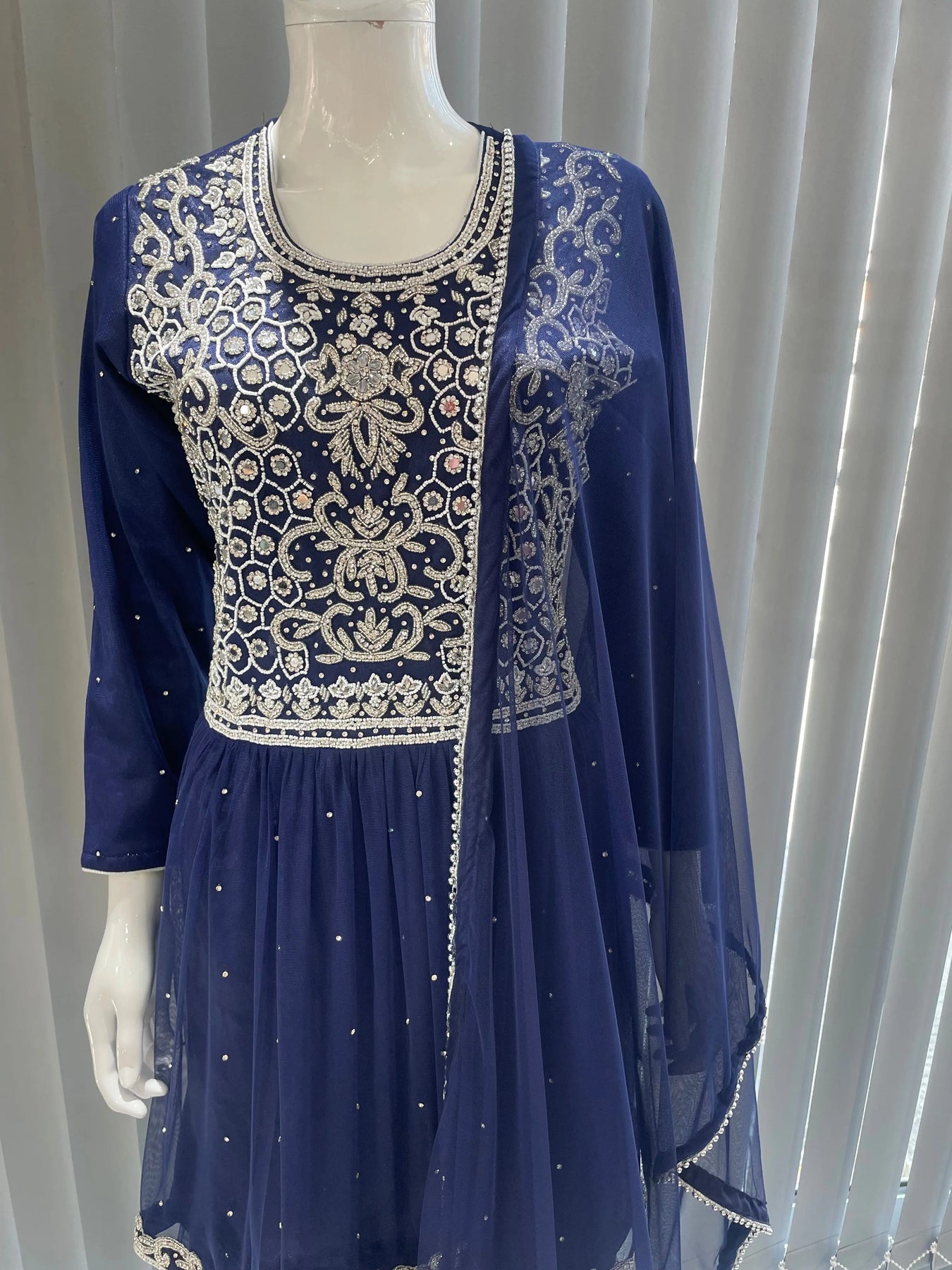 Embroidered Net Kameez with an embroidered Net Dupatta. The kameez includes heavy embroidery with intricate details.
