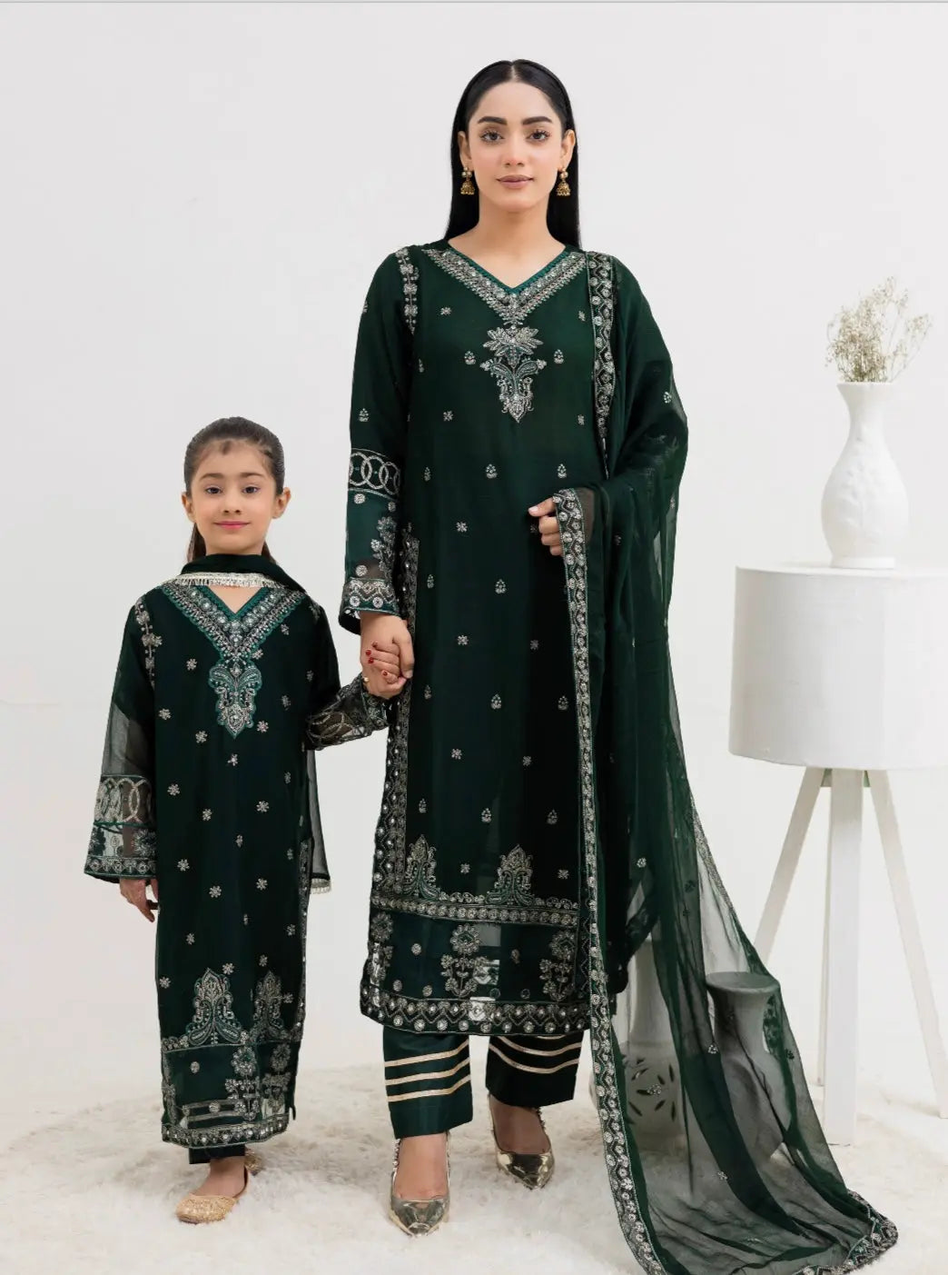 RANGZ ‘Majestic Lux’ | Embroidered Chiffon Mother & Daughter Readymade | RGZ056 (Green)