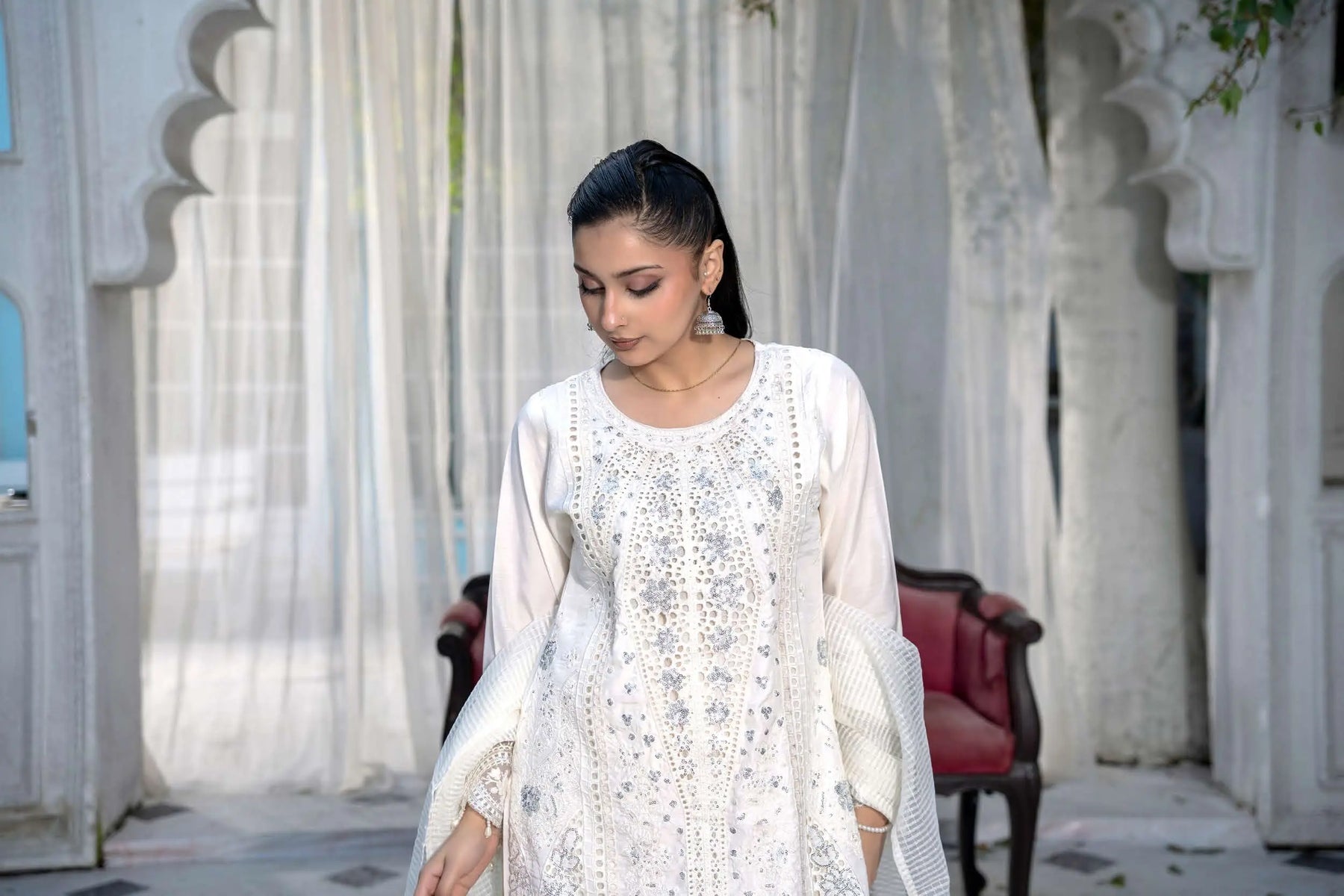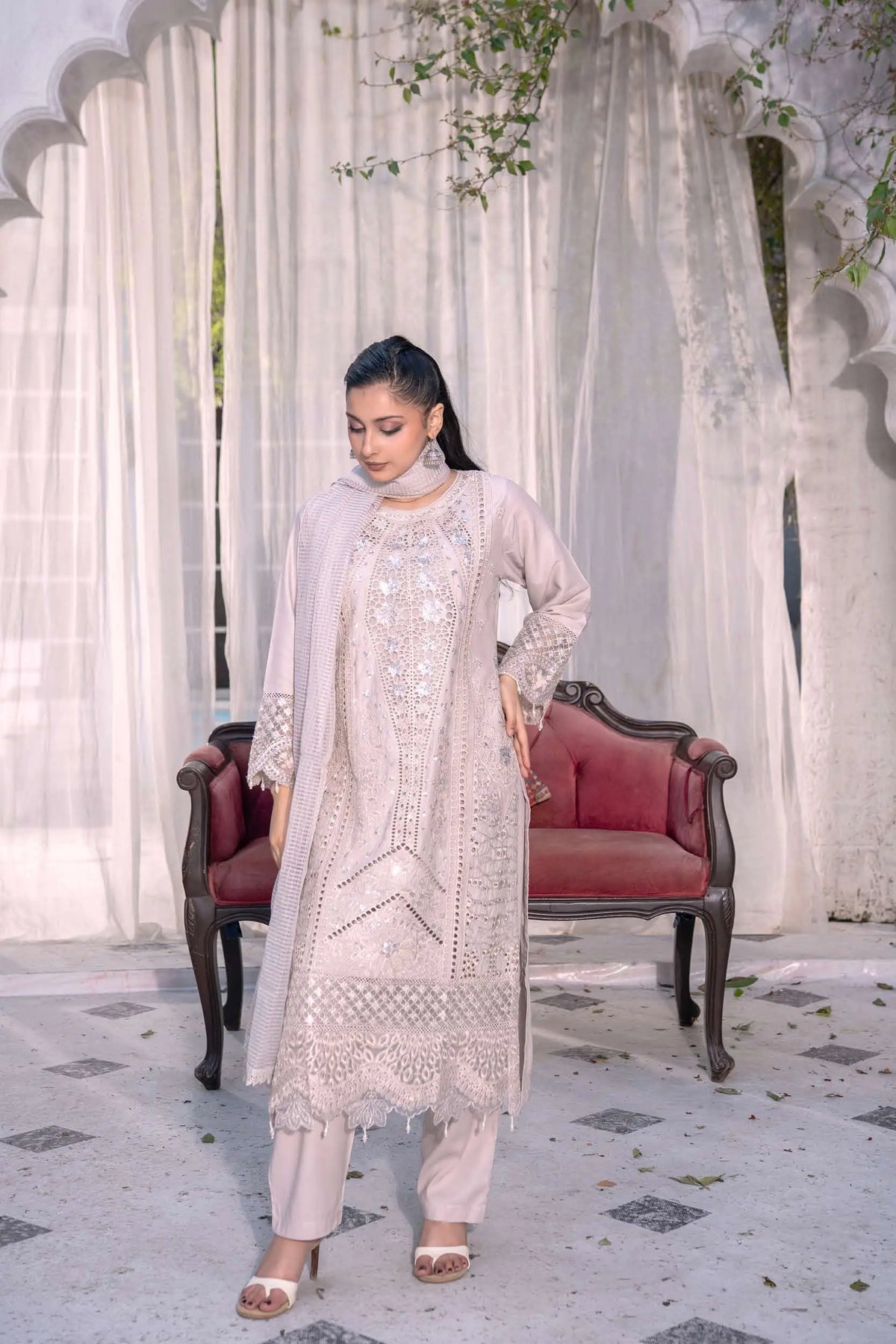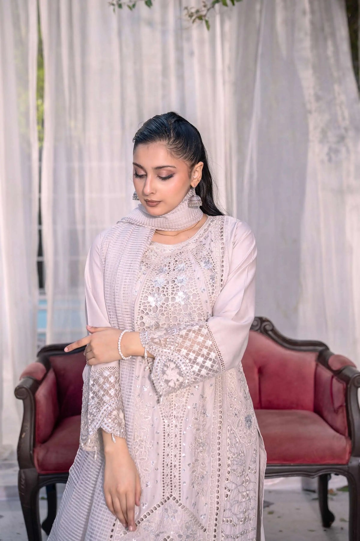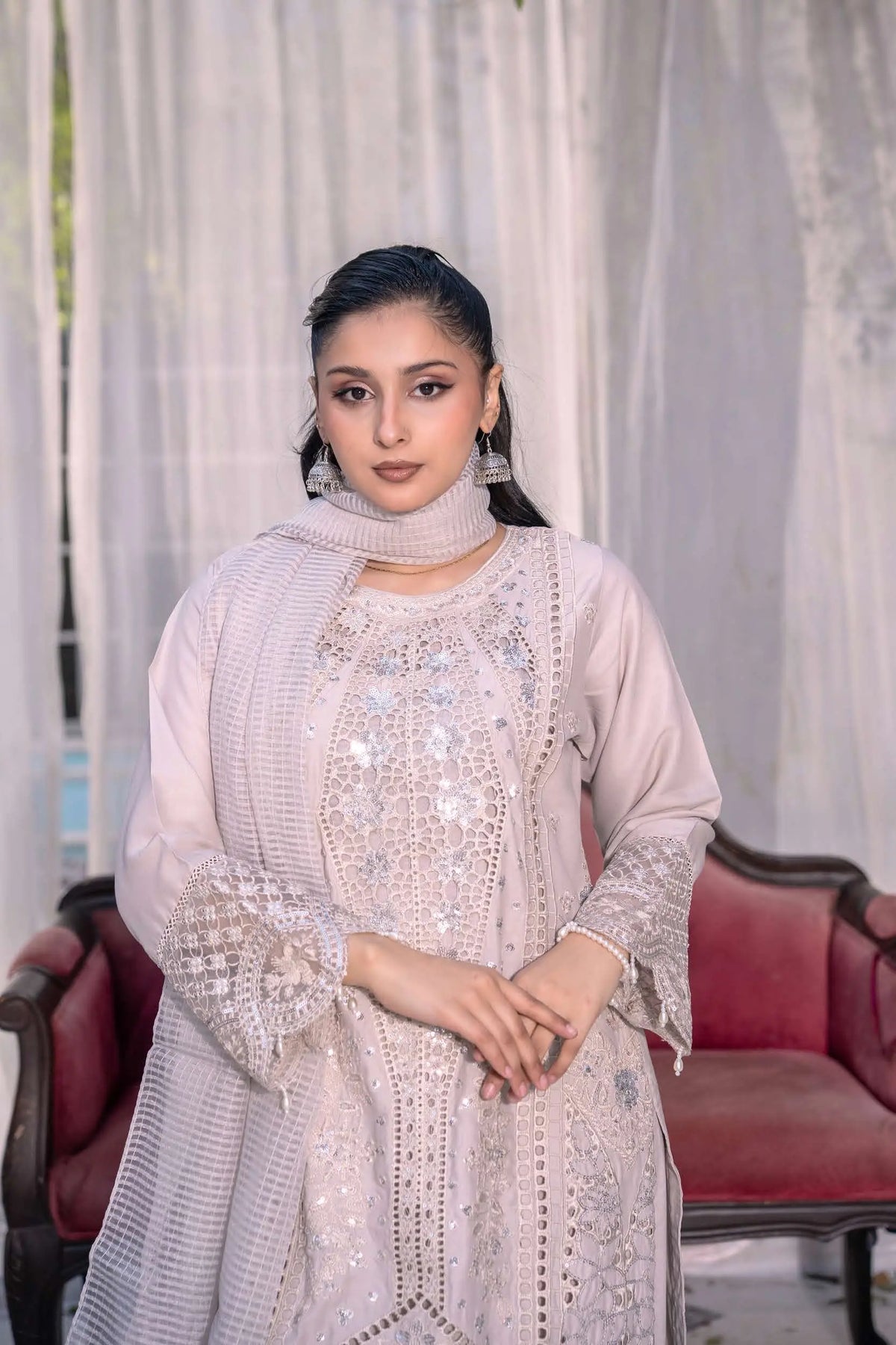 From time to time beading/ sequences may get displaced and this is not thought of as a fault but is due to the nature of the work. These articles of clothing should be worn with care.
