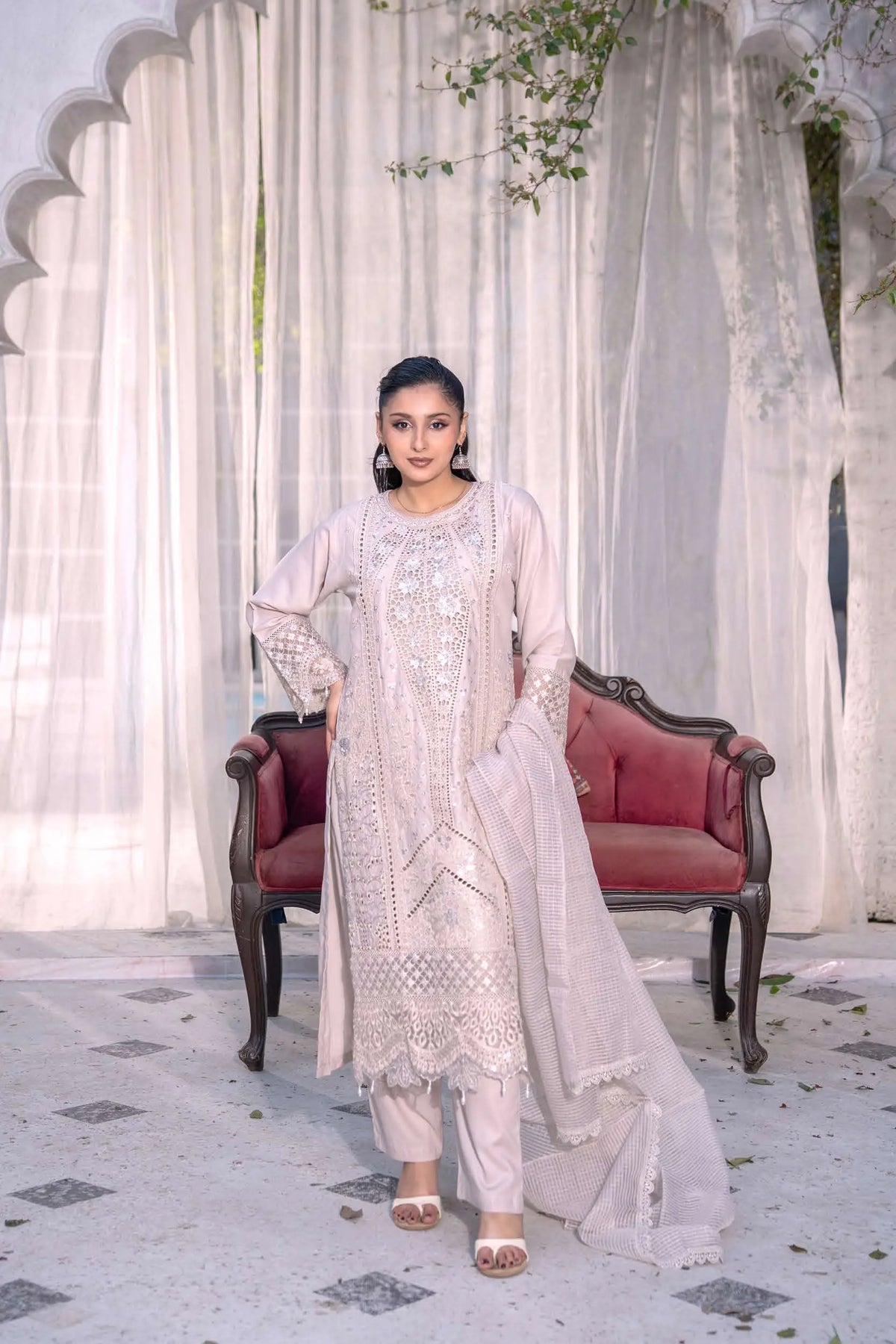 Hand Embroidered items are delicate in nature and can break of beading can become displaced. There is also a possibility in embroidery designs and prints which is unavoidable. By placing an order on our website you agree and accept the possibility of variation in comparison to the advertised images displayed on the website. We make every effort to minimise variations.