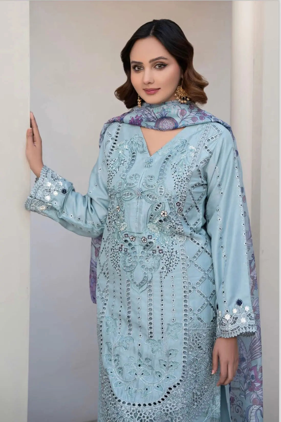 Embroidered Cotton with a Soft Net Dupatta