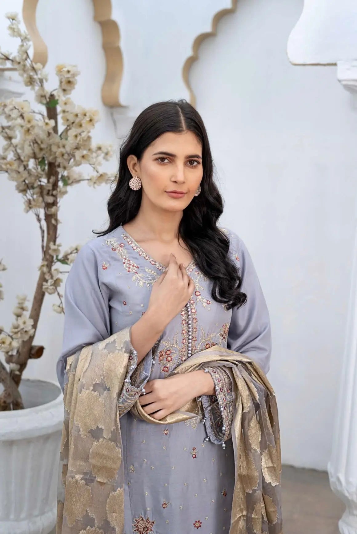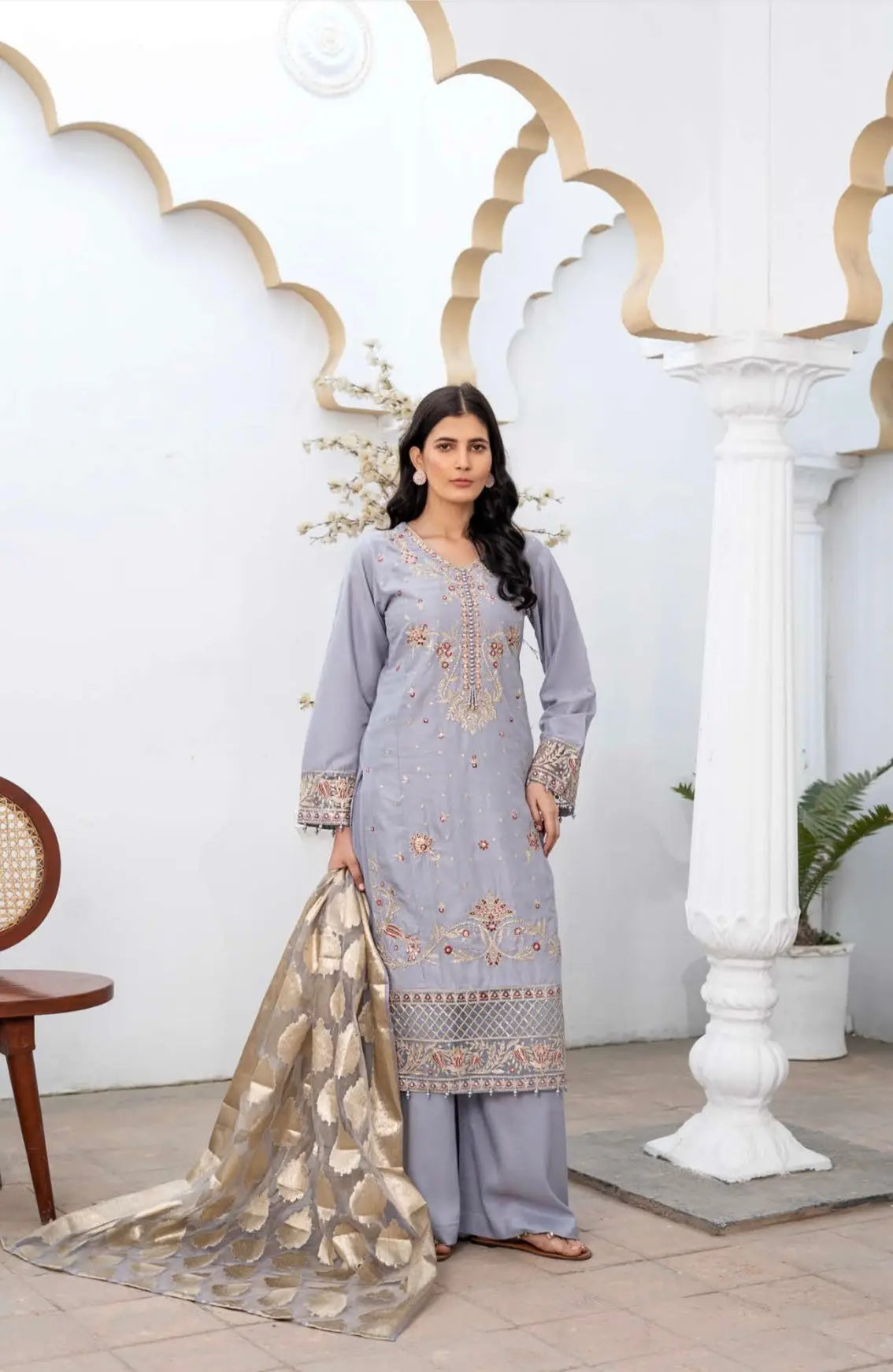 RANGZ ‘Shehnai’ | Embroidered Linen Readymade | RGZ072 (Light Grey)