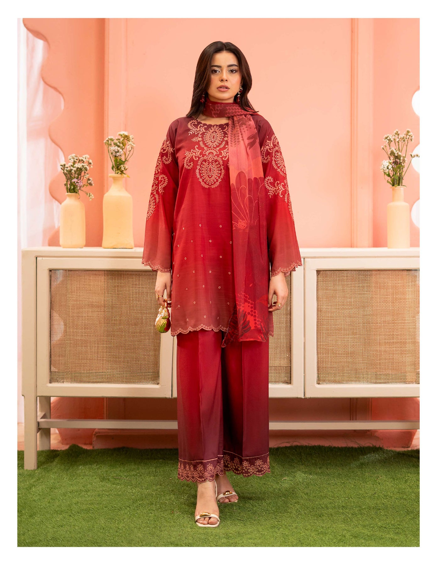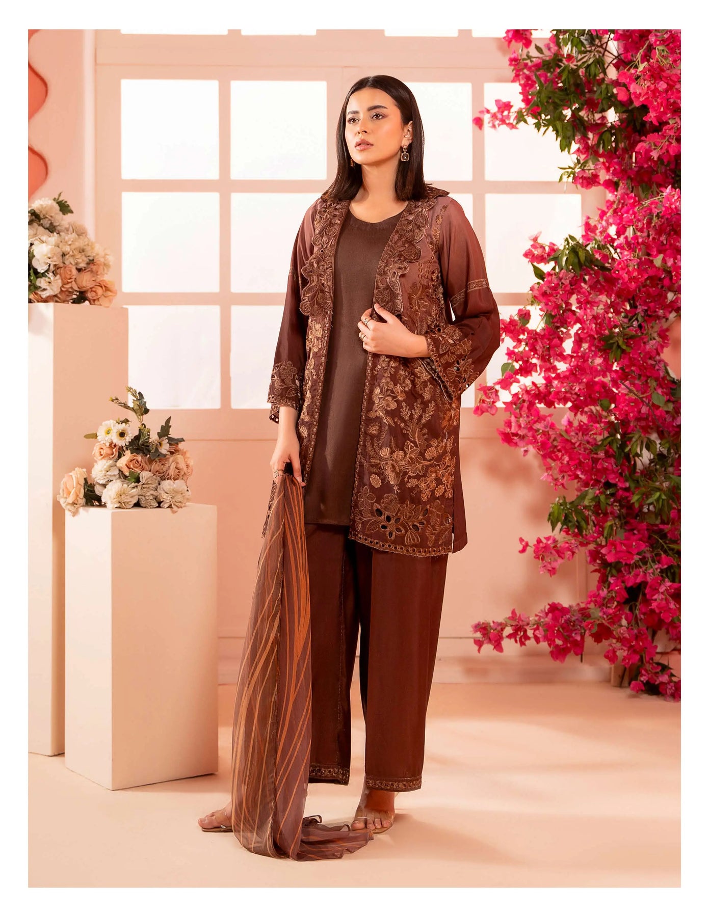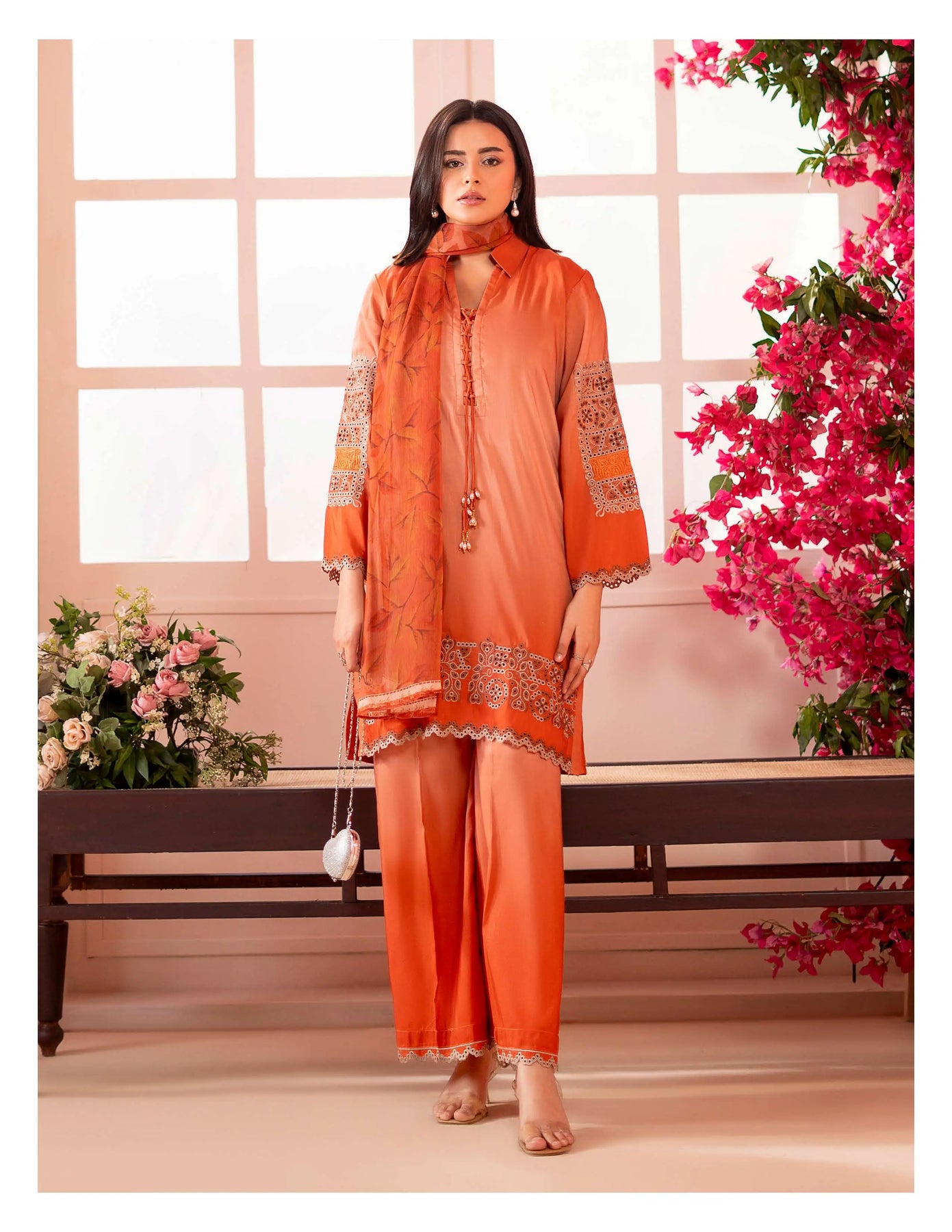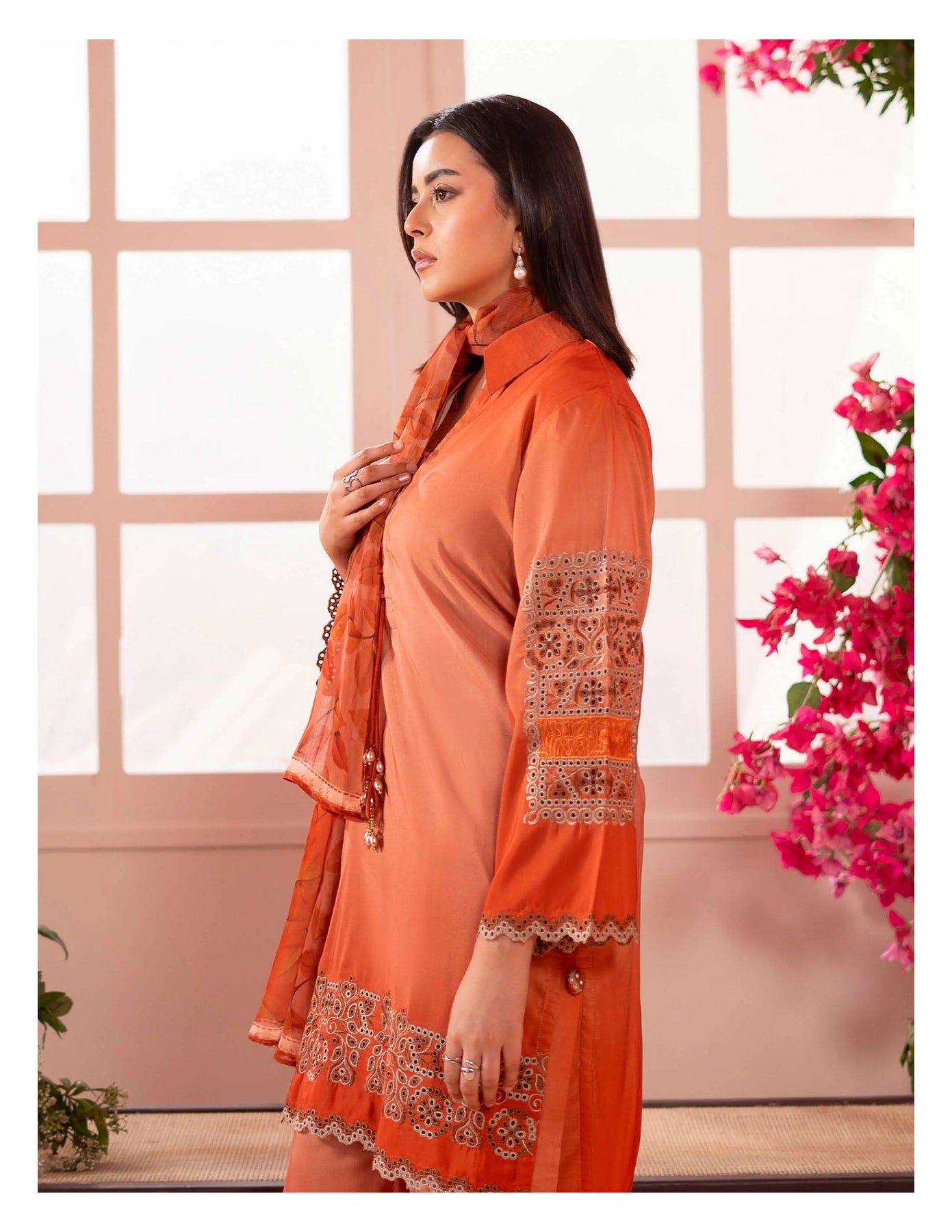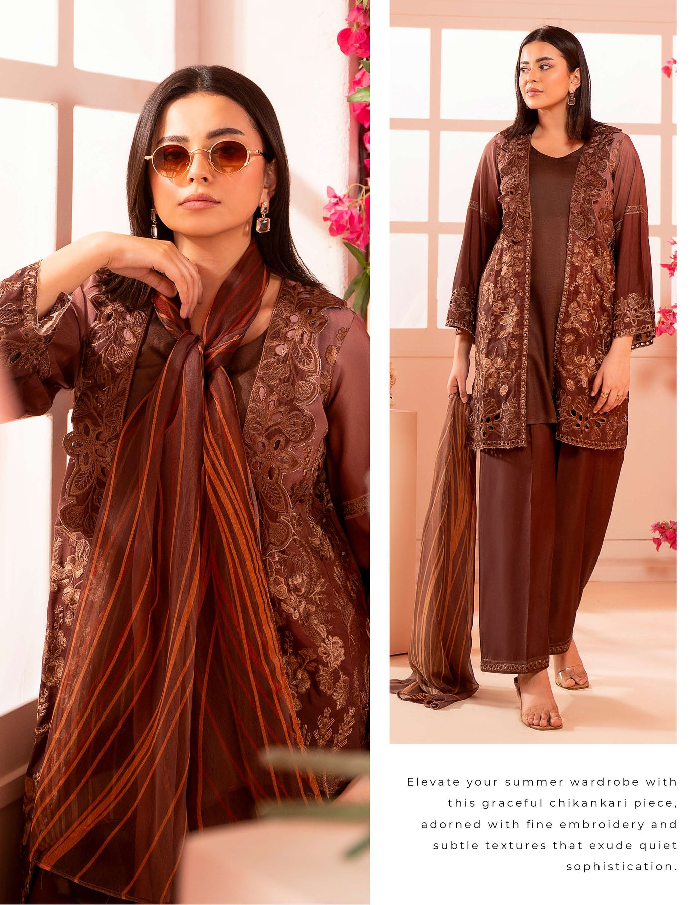 3-piece embroidered cotton chikankari “Mummy & Me” matching set, designed for both mother and daughter. Each set includes a delicately embroidered shirt, comfortable trousers, and a coordinated dupatta. Crafted from soft, breathable cotton with traditional chikankari detailing, it offers a graceful and timeless look. Perfect for festive occasions, family gatherings, and creating stylish matching moments.