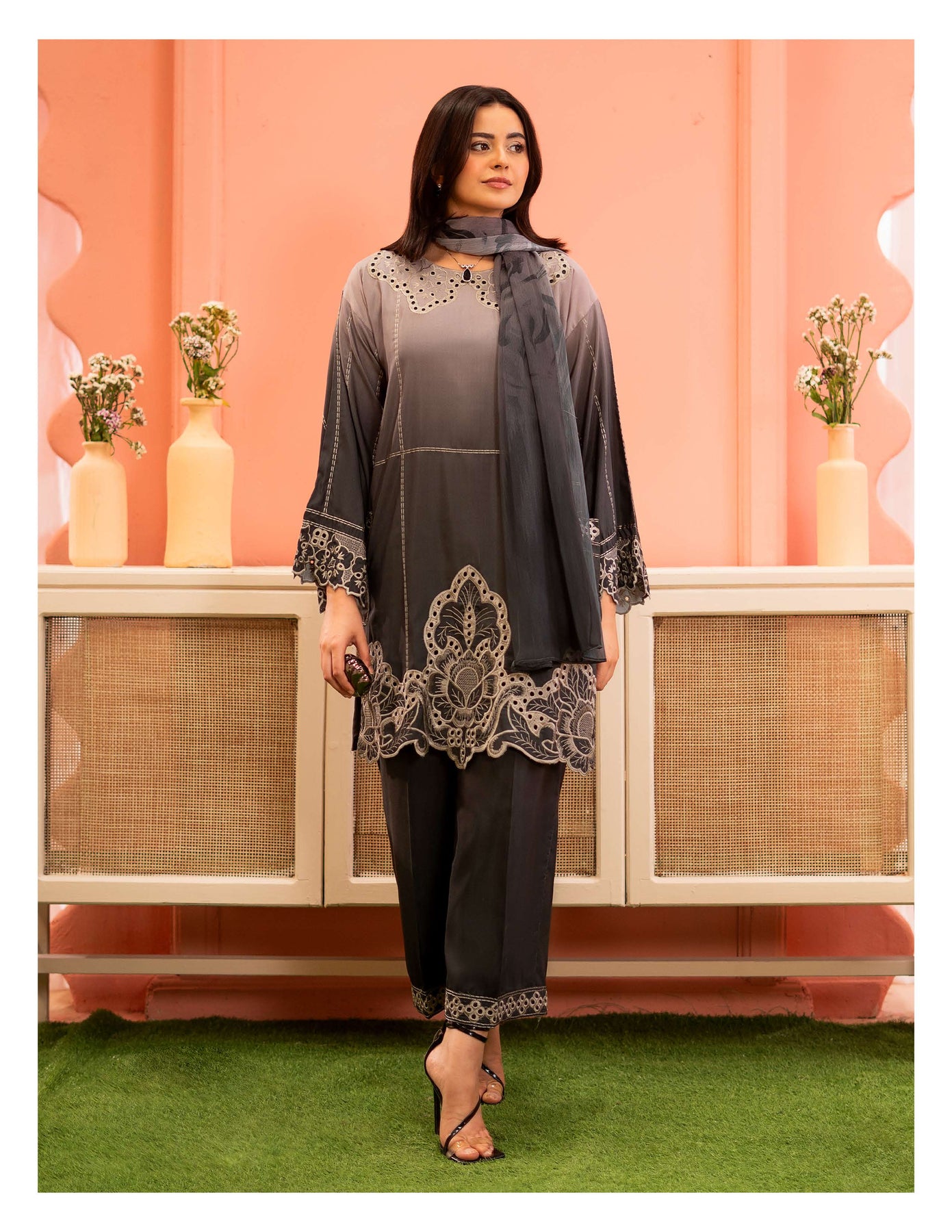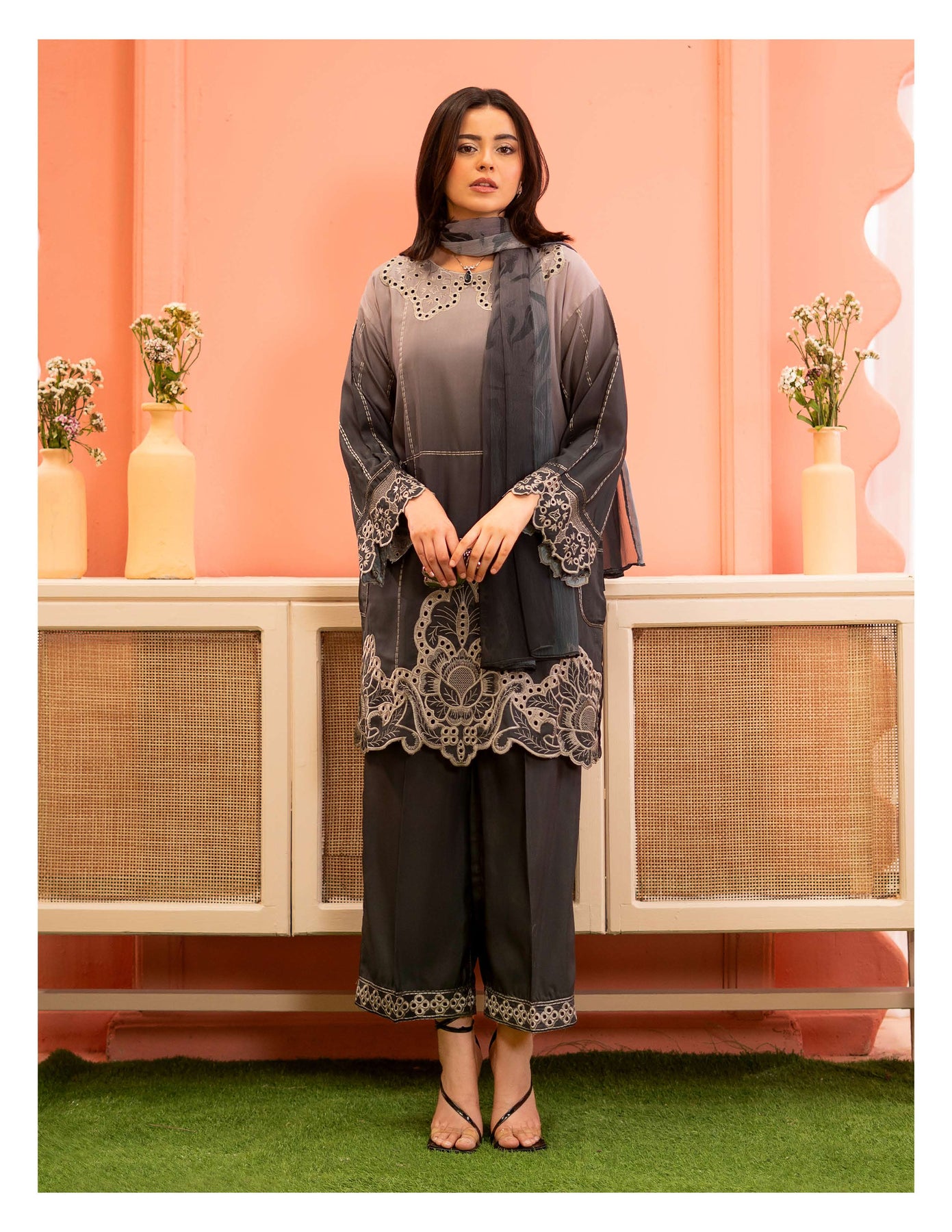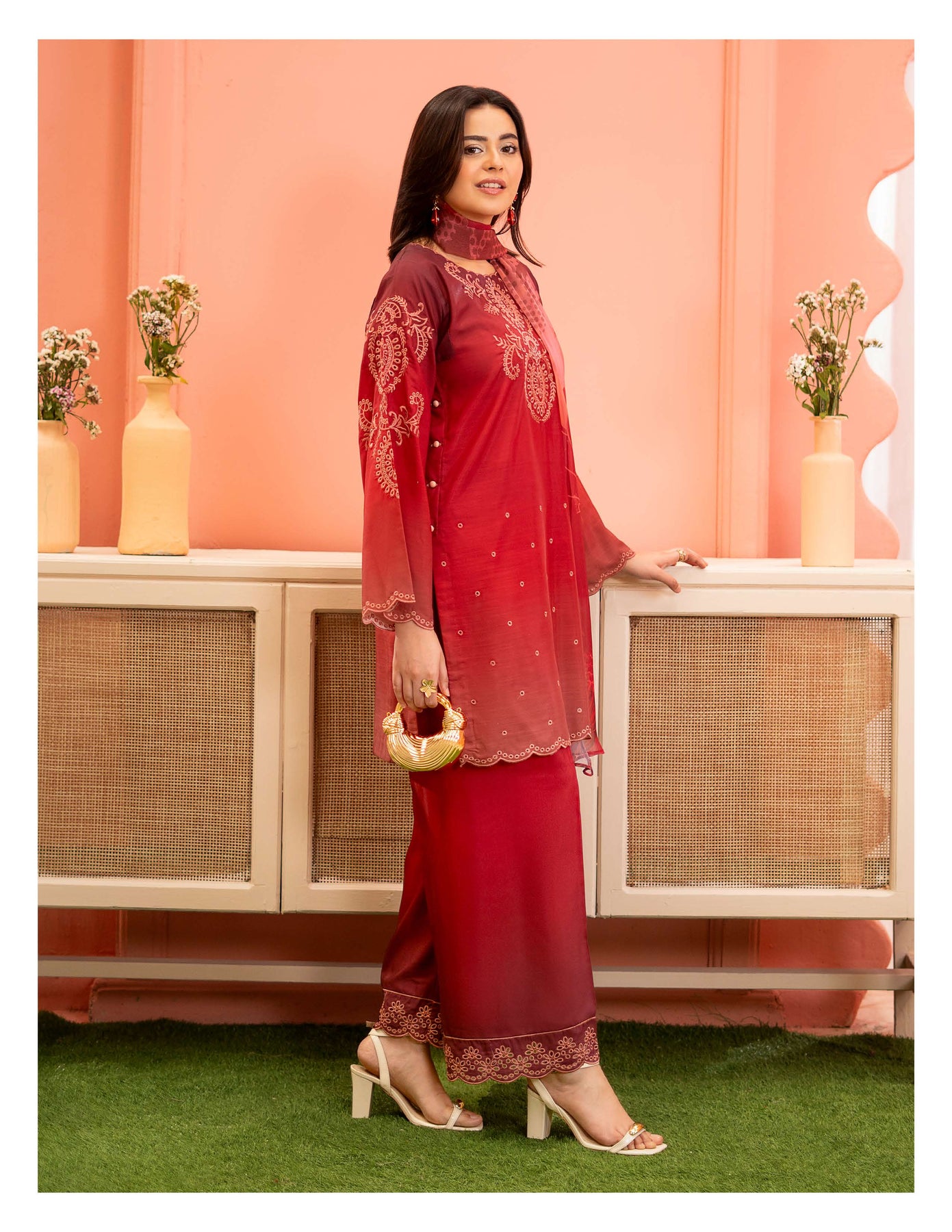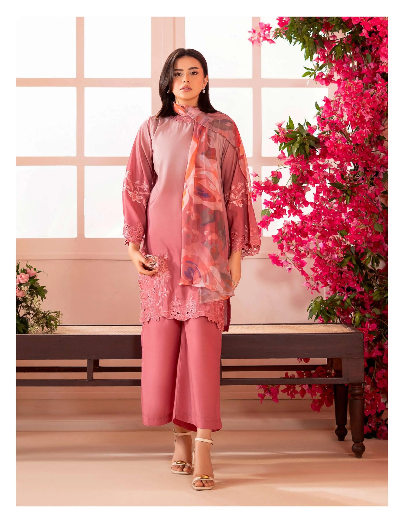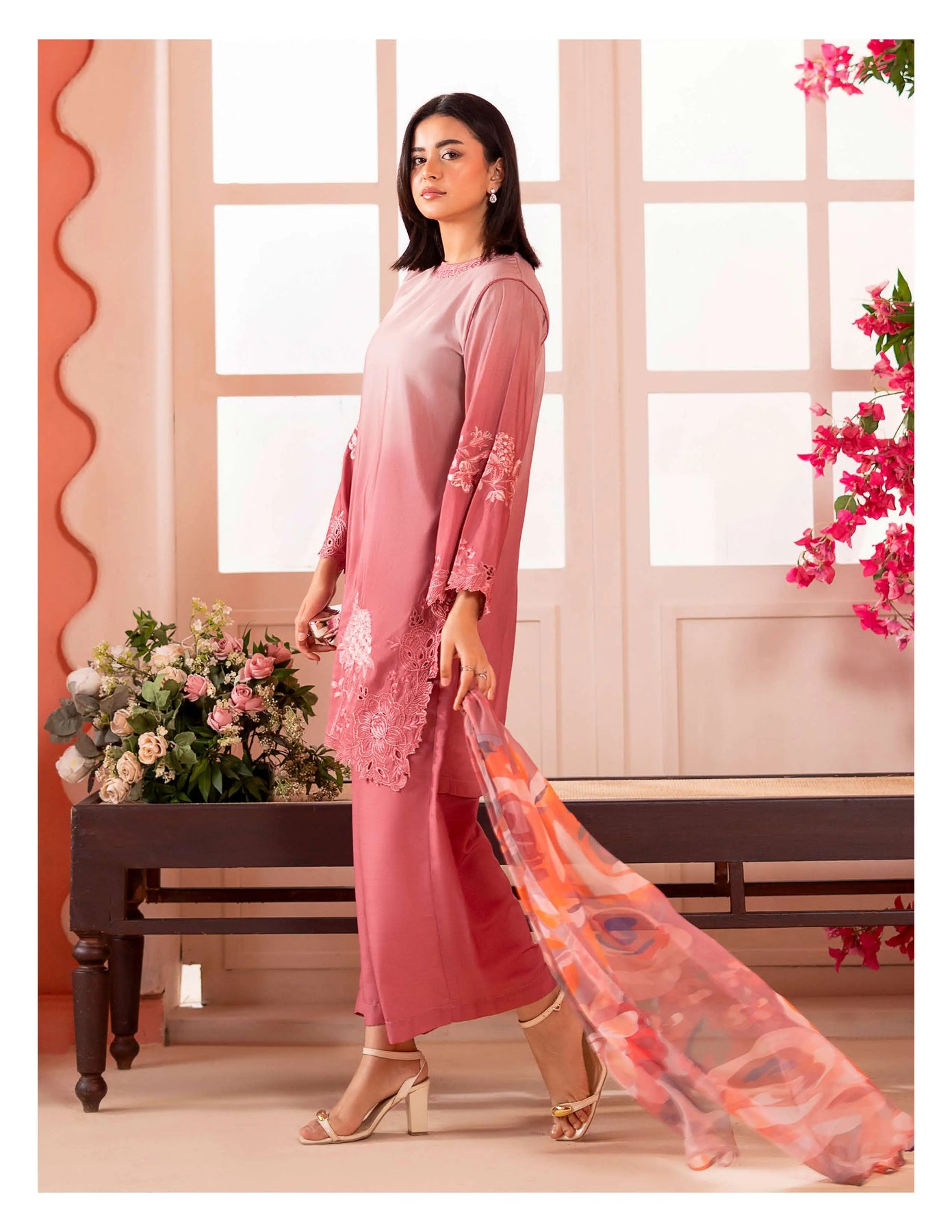 3-piece embroidered cotton chikankari “Mummy & Me” matching set, designed for both mother and daughter. Each set includes a delicately embroidered shirt, comfortable trousers, and a coordinated dupatta. Crafted from soft, breathable cotton with traditional chikankari detailing, it offers a graceful and timeless look. Perfect for festive occasions, family gatherings, and creating stylish matching moments.