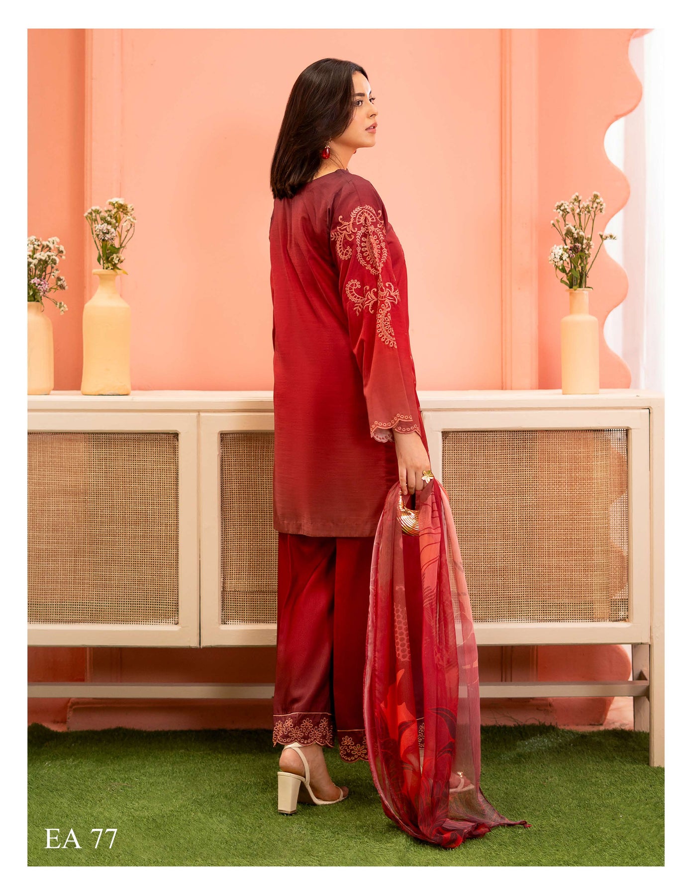 Hand Embroidered items are delicate in nature and can break of beading can become displaced. There is also a possibility in embroidery designs and prints which is unavoidable. By placing an order on our website you agree and accept the possibility of variation in comparison to the advertised images displayed on the website. We make every effort to minimise variations.