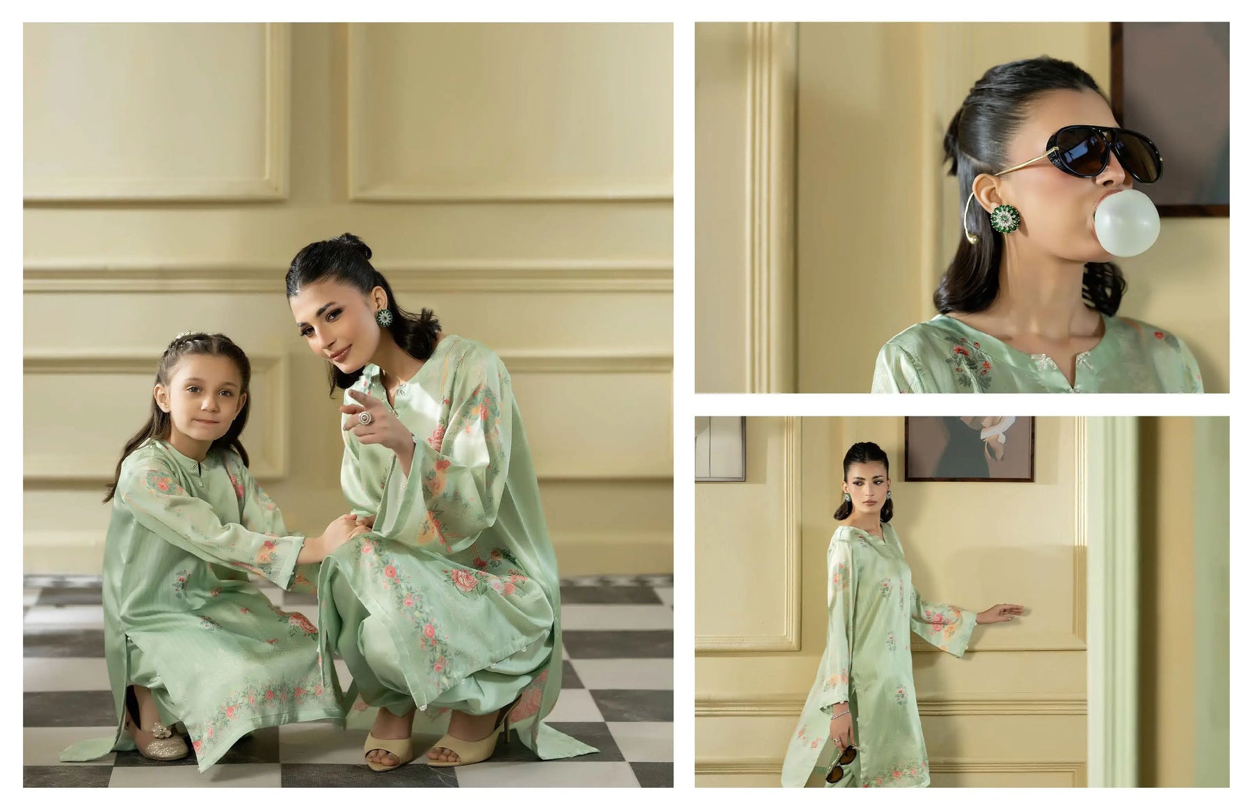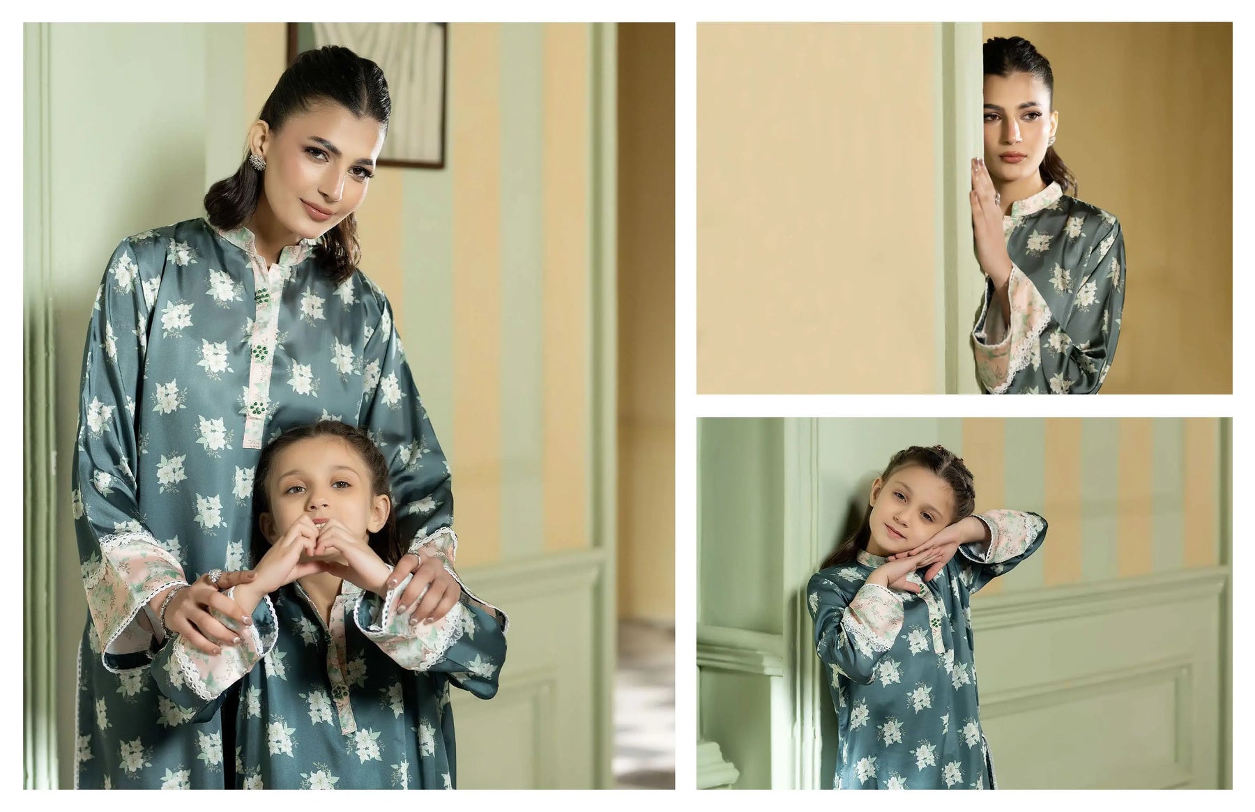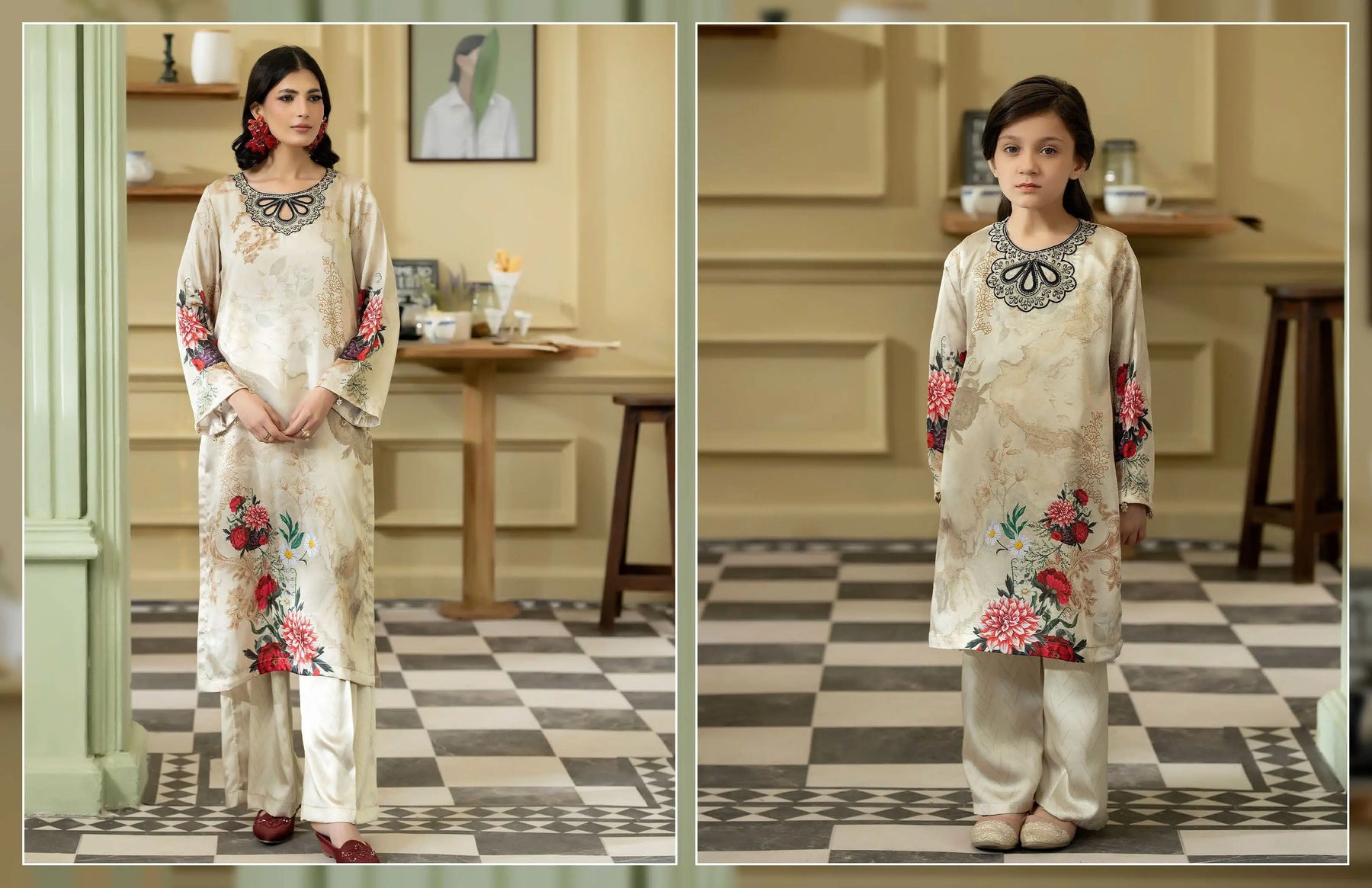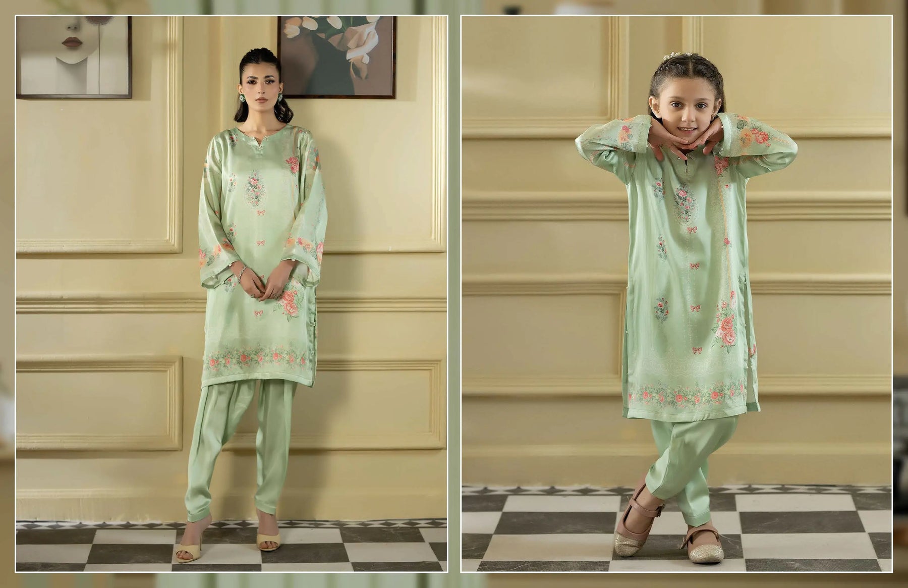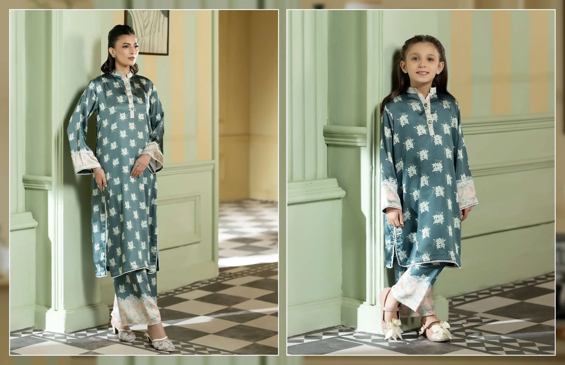 Celebrate Eid in beautiful twinning style with our Mother & Daughter Silk Long Kameez set, designed to reflect love, tradition, and festive elegance. 🌙💖 This stunning printed silk ensemble is perfect for creating unforgettable Eid memories together.