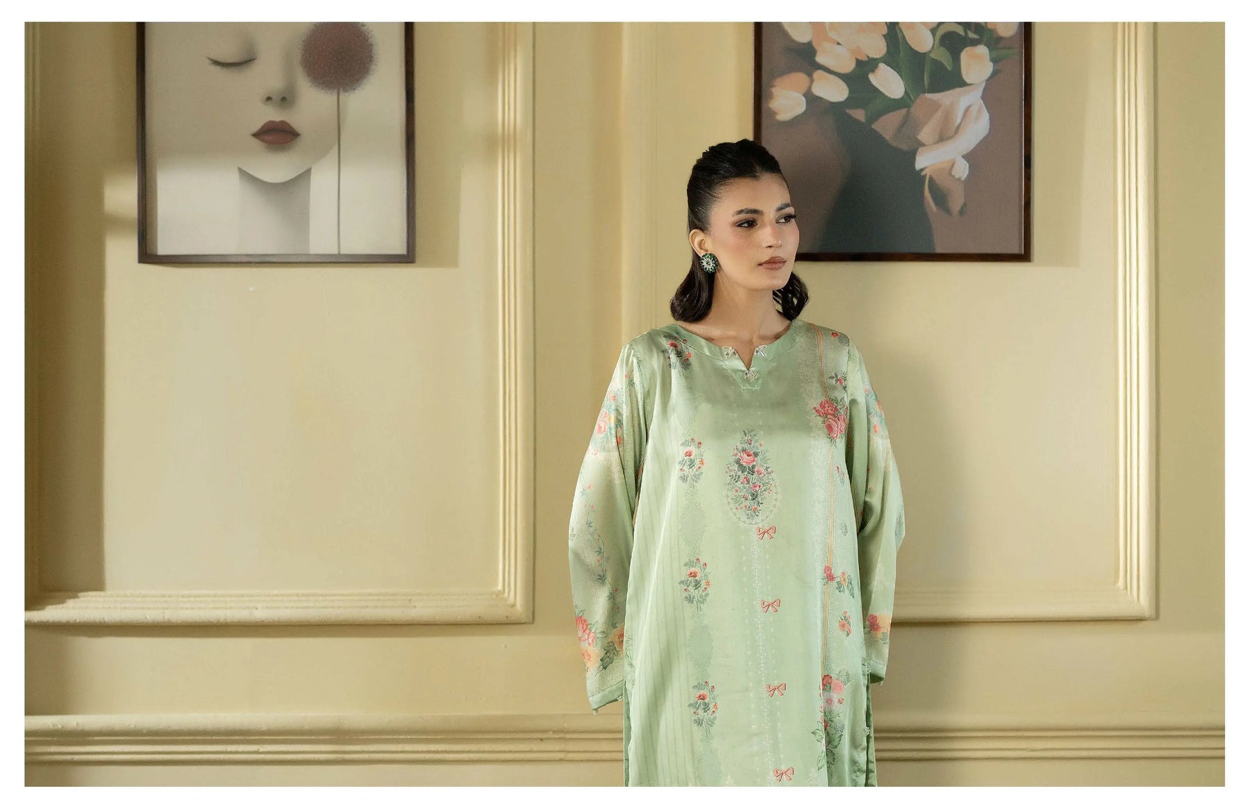 Crafted from premium silk fabric, the long kameez features elegant festive prints that add vibrancy and charm. The graceful length and flowy silhouette create a regal look while keeping you comfortable throughout the celebrations. ✨🌸