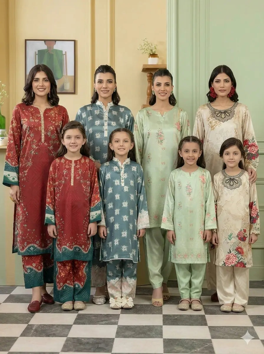 This Mother & Daughter Printed Silk Eid Collection blends modern festive fashion with timeless eastern elegance — stylish, graceful, and heartwarming. 🇵🇰🌙