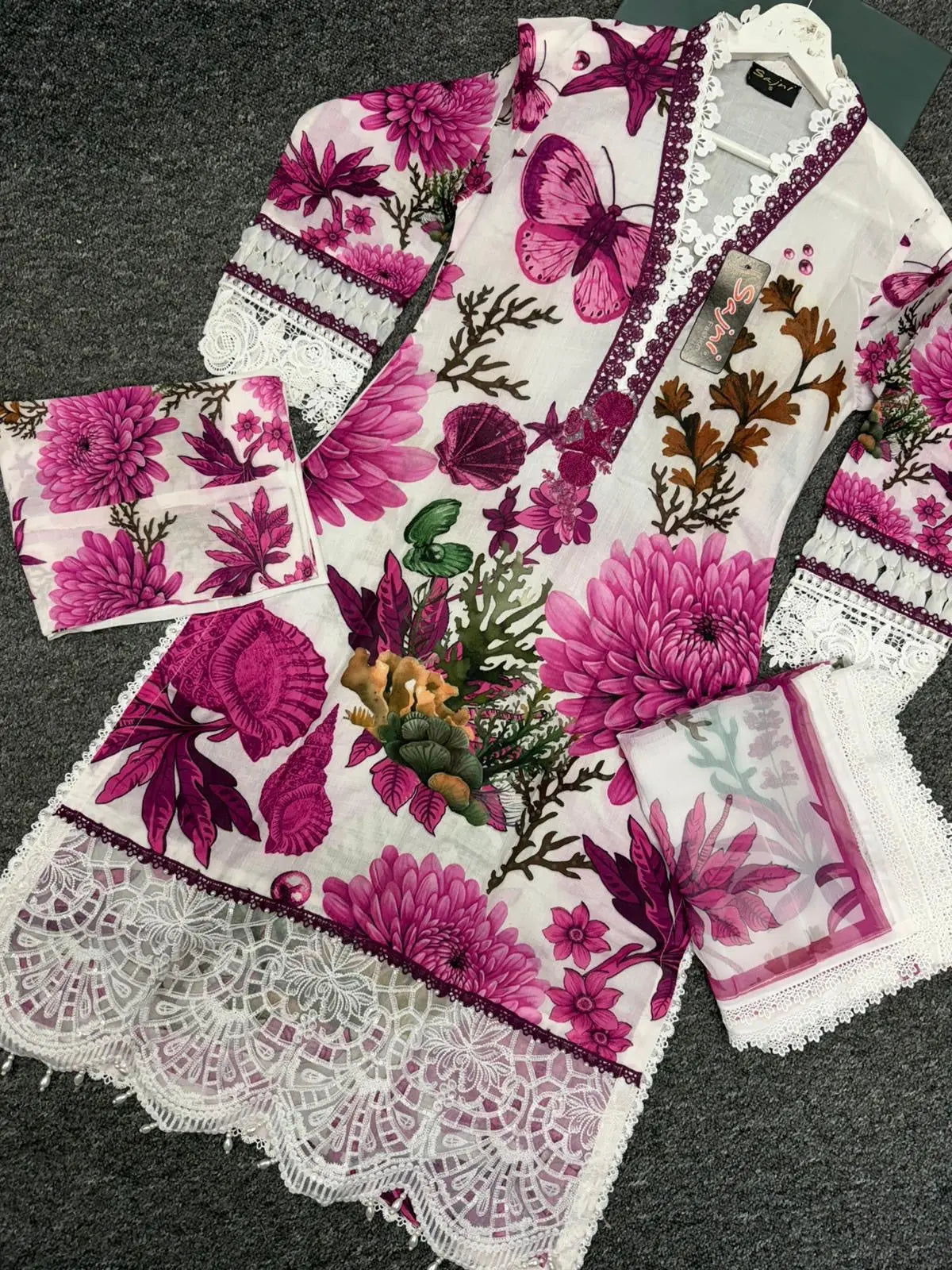 Step into timeless tradition with a modern twist! This Pakistani embroidered cotton design blends the rich heritage of our culture with contemporary flair. Crafted with soft, breathable cotton, the outfit features intricate hand embroideryinspired by Mughal motifs – a true celebration of artistry and craftsmanship.