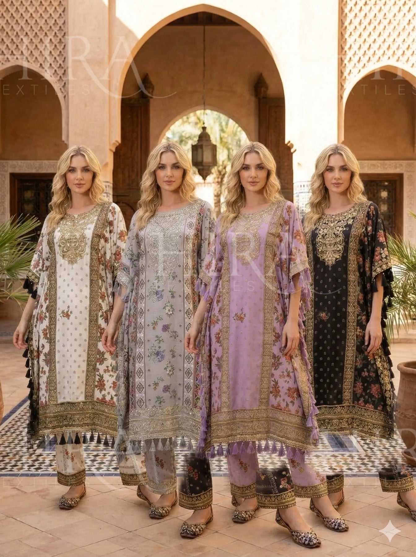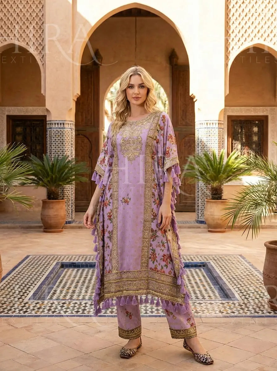 JS176 - Sofia Khas - Embroidered Silk Kaftan Readymade - 4 Colours