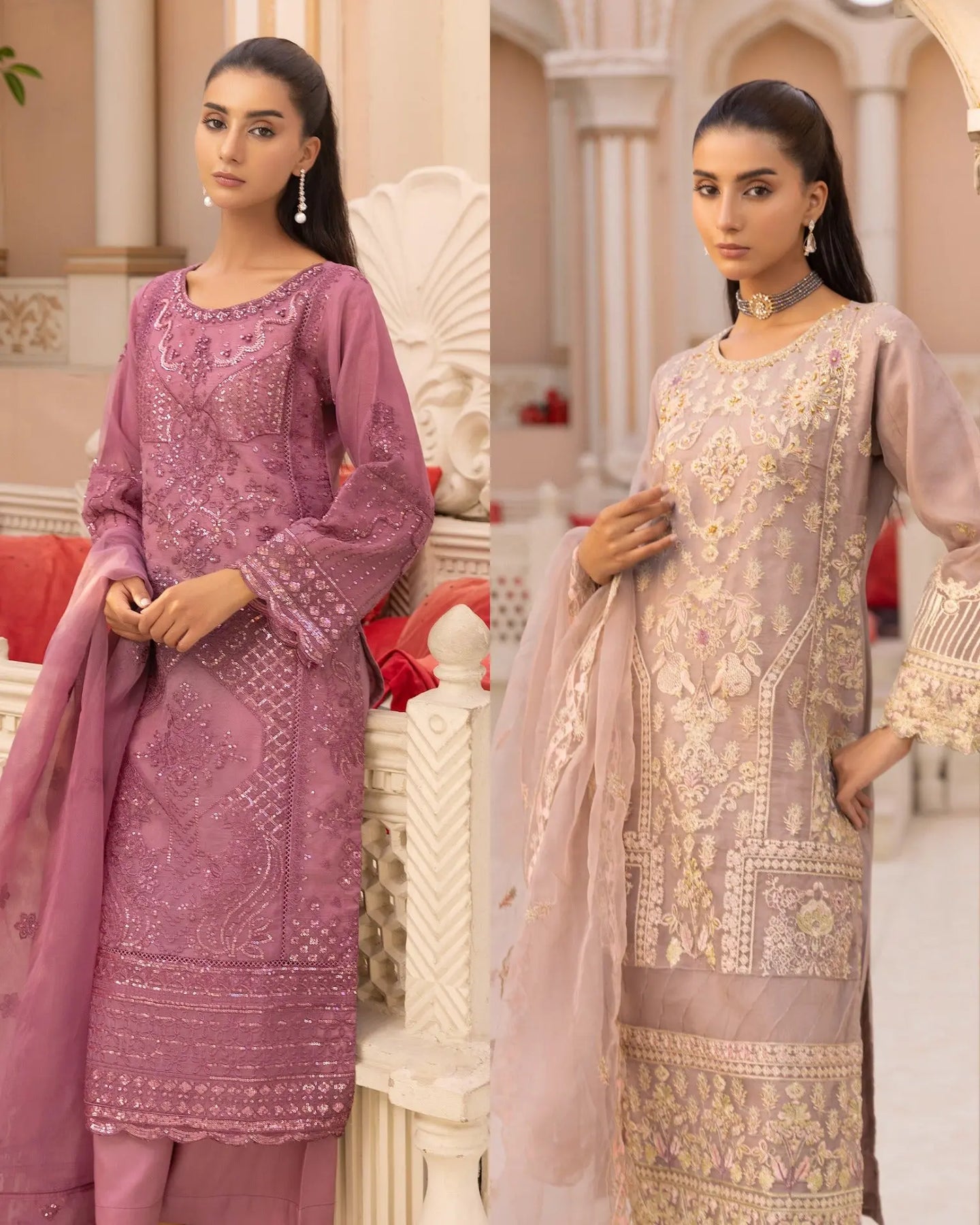 Turn heads and shine bright in our stunning Embroidered Organza Partywear! 💃💫 Crafted from delicate organza fabric, each piece features intricate embroidery that adds a touch of elegance and glamour to any occasion. 🌸💖 Whether it's a cocktail party, a wedding, or a night out, this collection is your perfect choice to stand out and sparkle. 🌟
