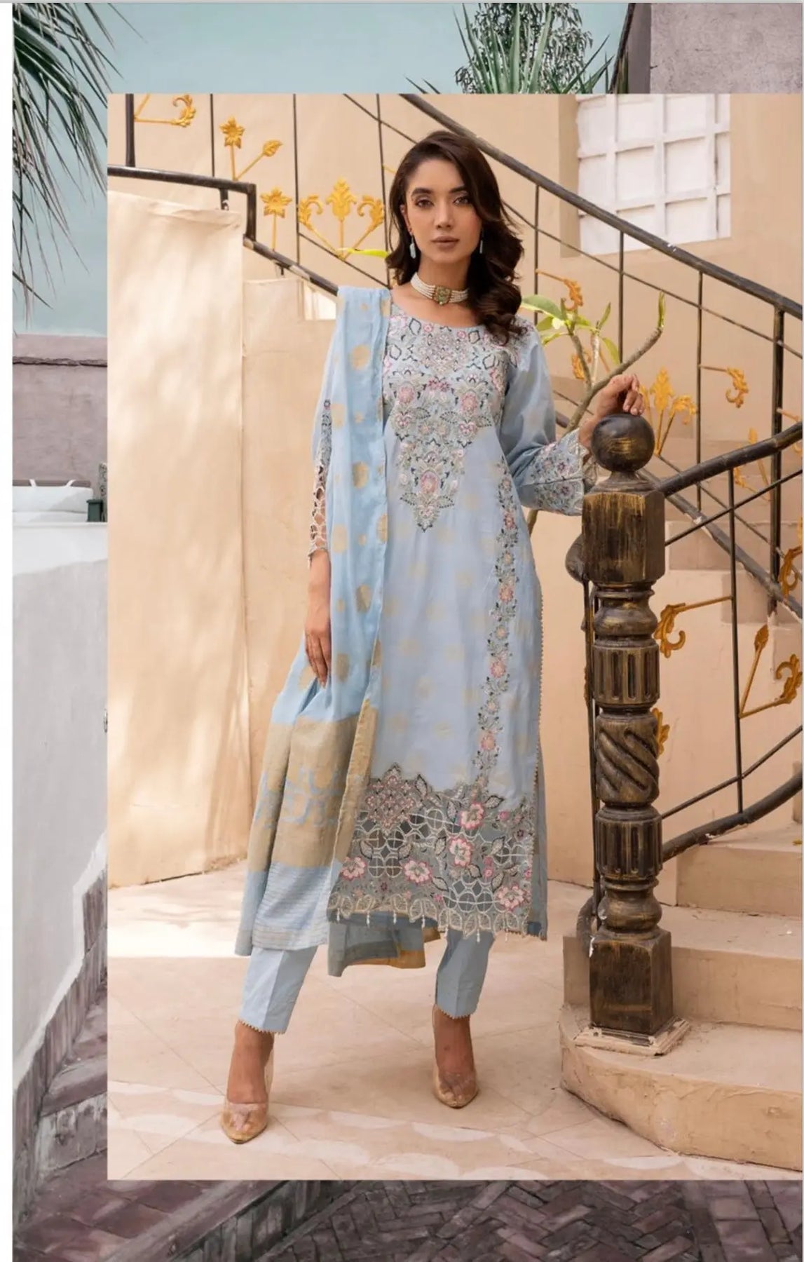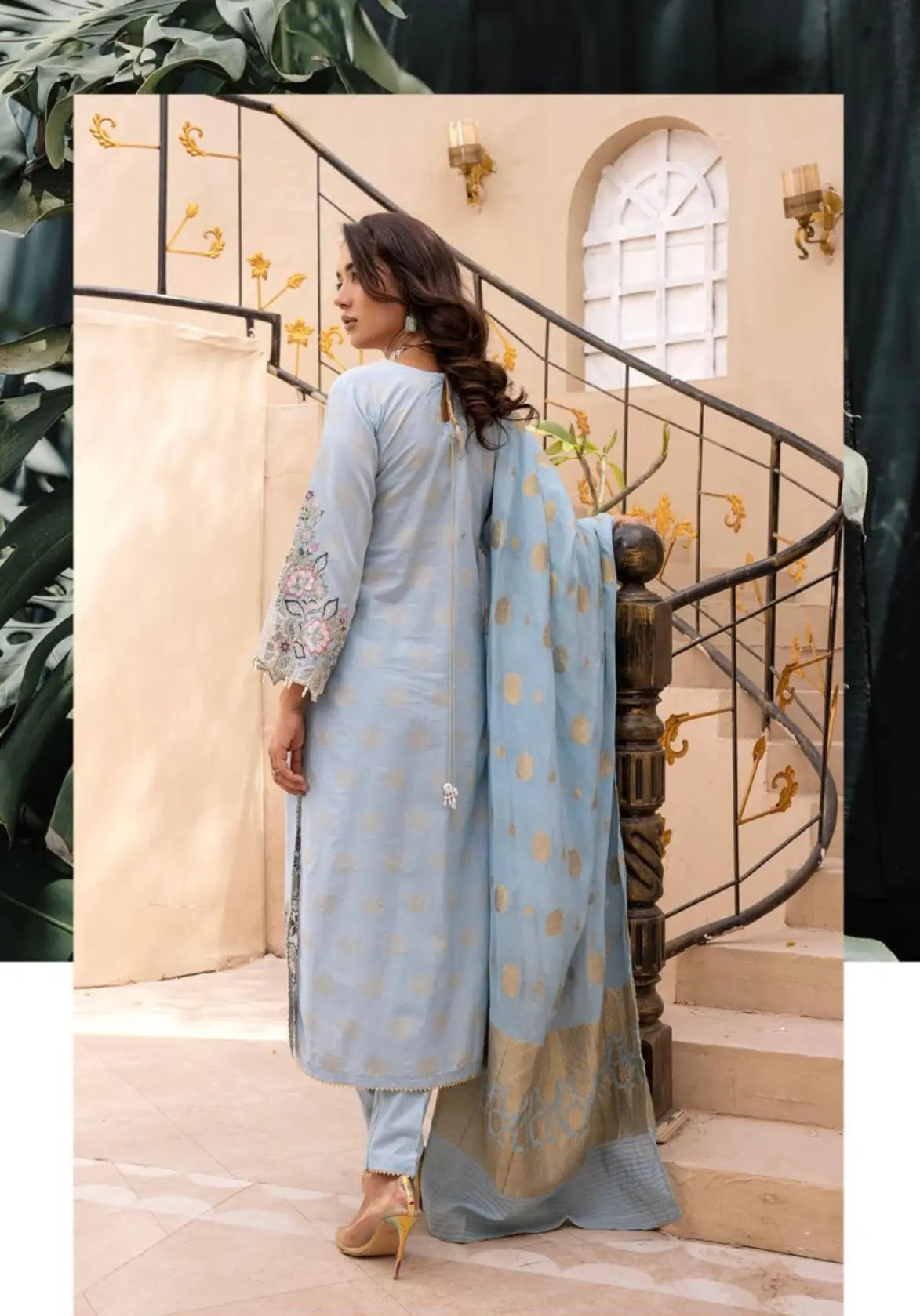 This elegant Eid collection features a beautifully crafted jacquard dress, designed with intricate patterns that exude sophistication and timeless appeal. The luxurious fabric is paired with a stunning Khaddi net dupatta, offering a perfect blend of traditional craftsmanship and contemporary style. The soft, lightweight net dupatta complements the jacquard dress, making it a perfect ensemble for celebrating special occasions. Whether you're attending a family gathering or a festive celebration, this outfit promises to make you stand out in style.