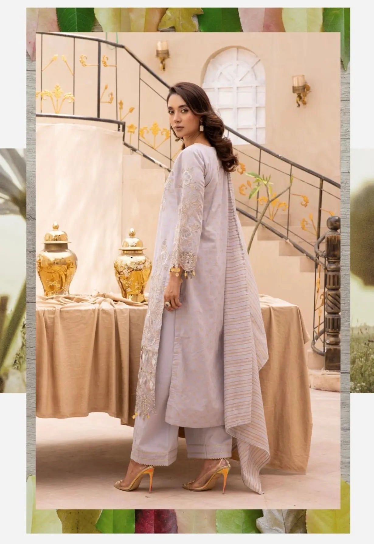 This elegant Eid collection features a beautifully crafted jacquard dress, designed with intricate patterns that exude sophistication and timeless appeal. The luxurious fabric is paired with a stunning Khaddi net dupatta, offering a perfect blend of traditional craftsmanship and contemporary style. The soft, lightweight net dupatta complements the jacquard dress, making it a perfect ensemble for celebrating special occasions. Whether you're attending a family gathering or a festive celebration, this outfit promises to make you stand out in style.