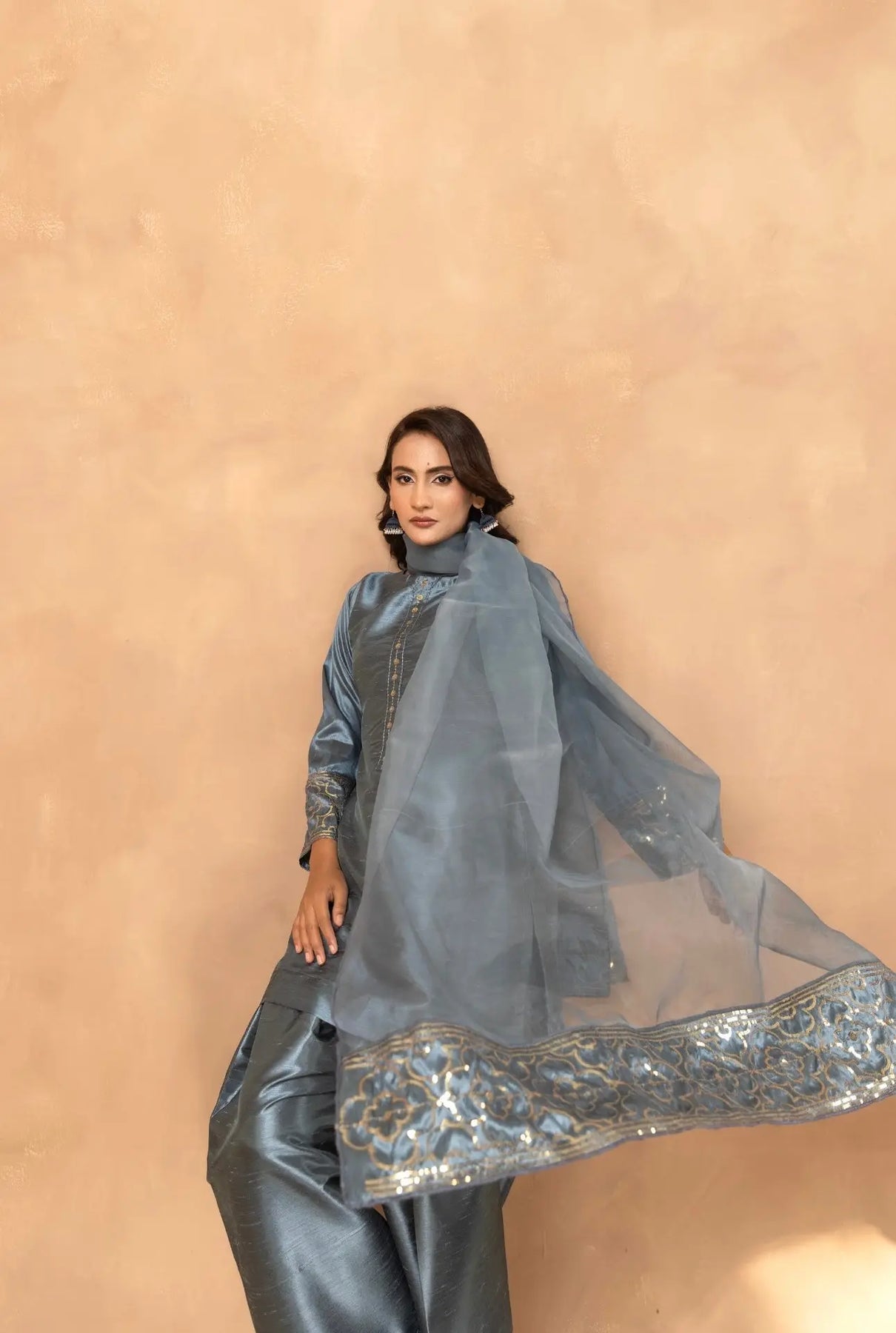 The rich texture of raw silk blends beautifully with intricate embroidery, adding a regal charm to your look. The flowy farshi shalwar brings vintage vibes with a modern twist — perfect for weddings, festive occasions, or when you just want to make a statement!