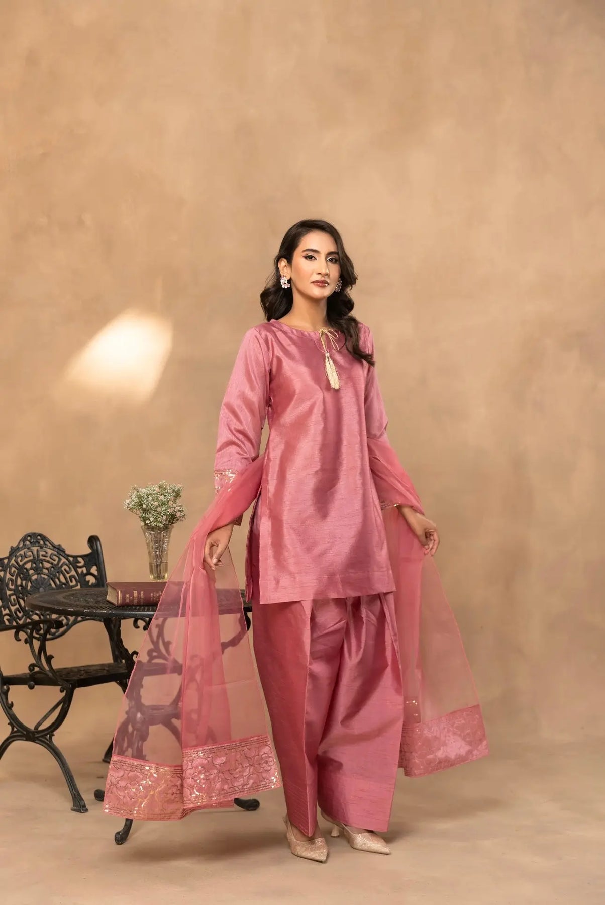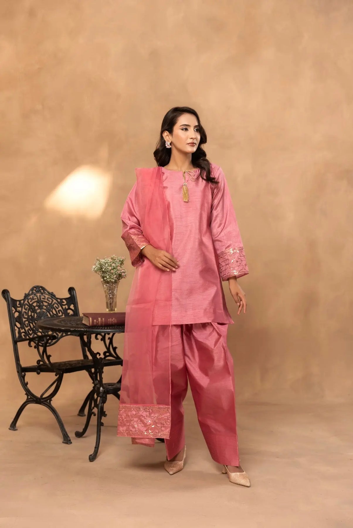 The rich texture of raw silk blends beautifully with intricate embroidery, adding a regal charm to your look. The flowy farshi shalwar brings vintage vibes with a modern twist — perfect for weddings, festive occasions, or when you just want to make a statement!