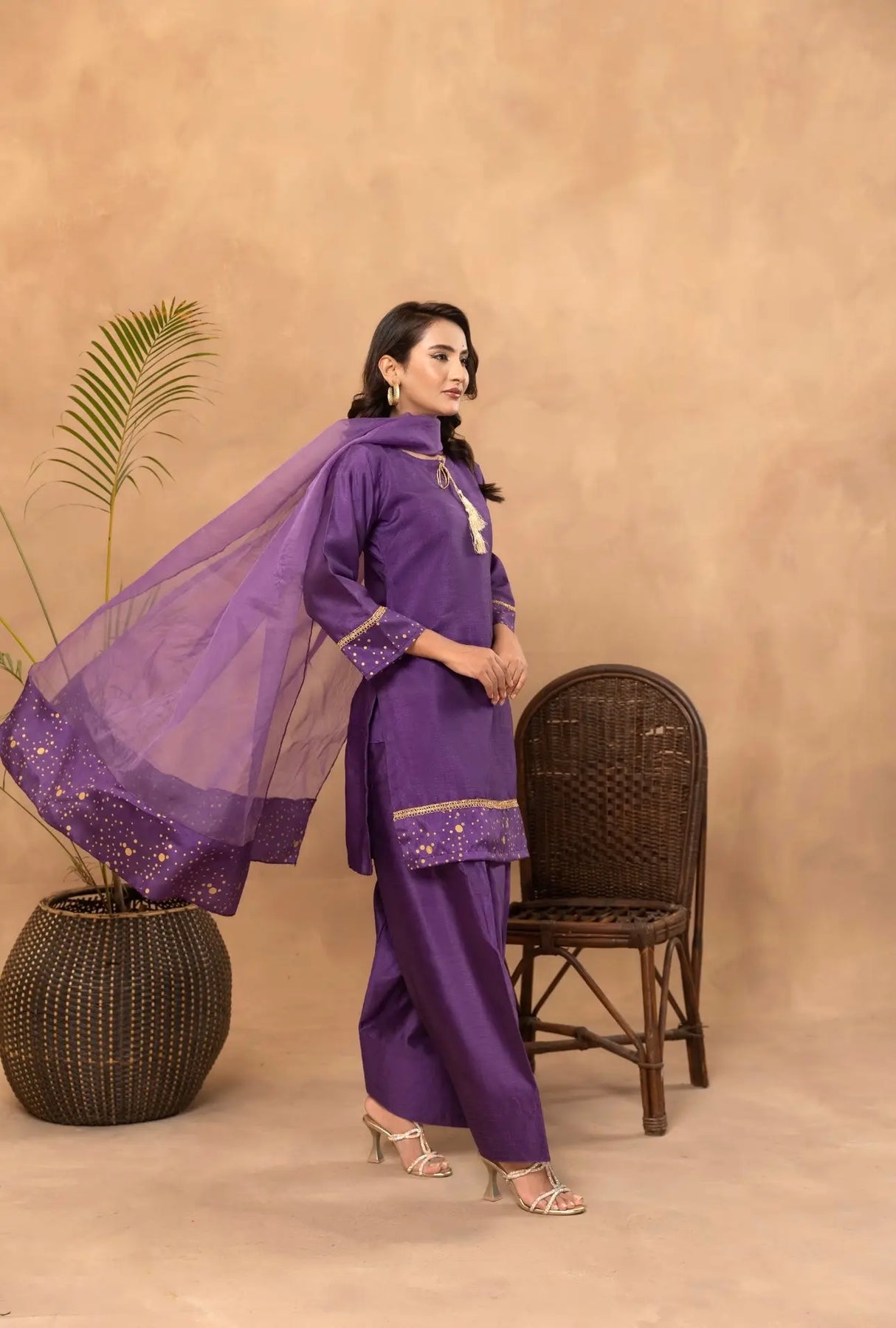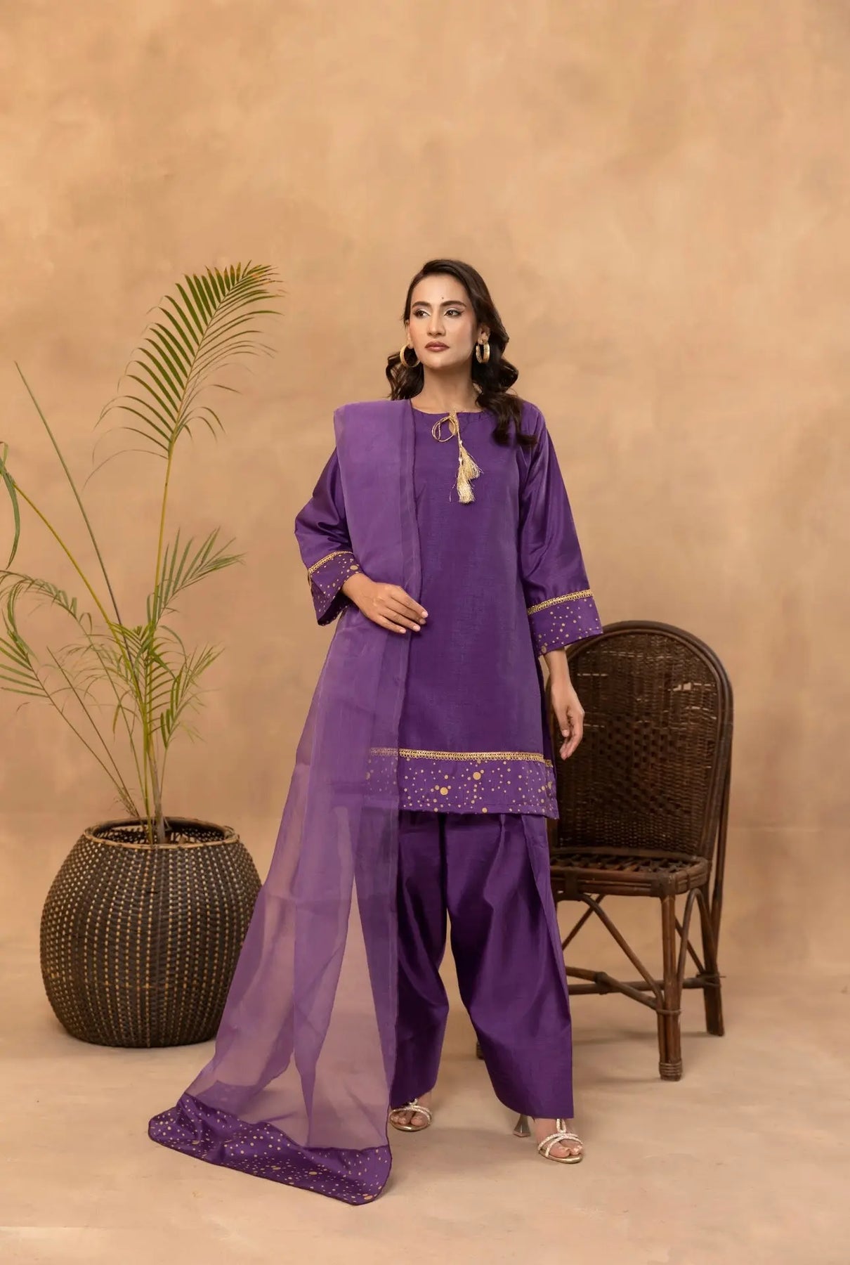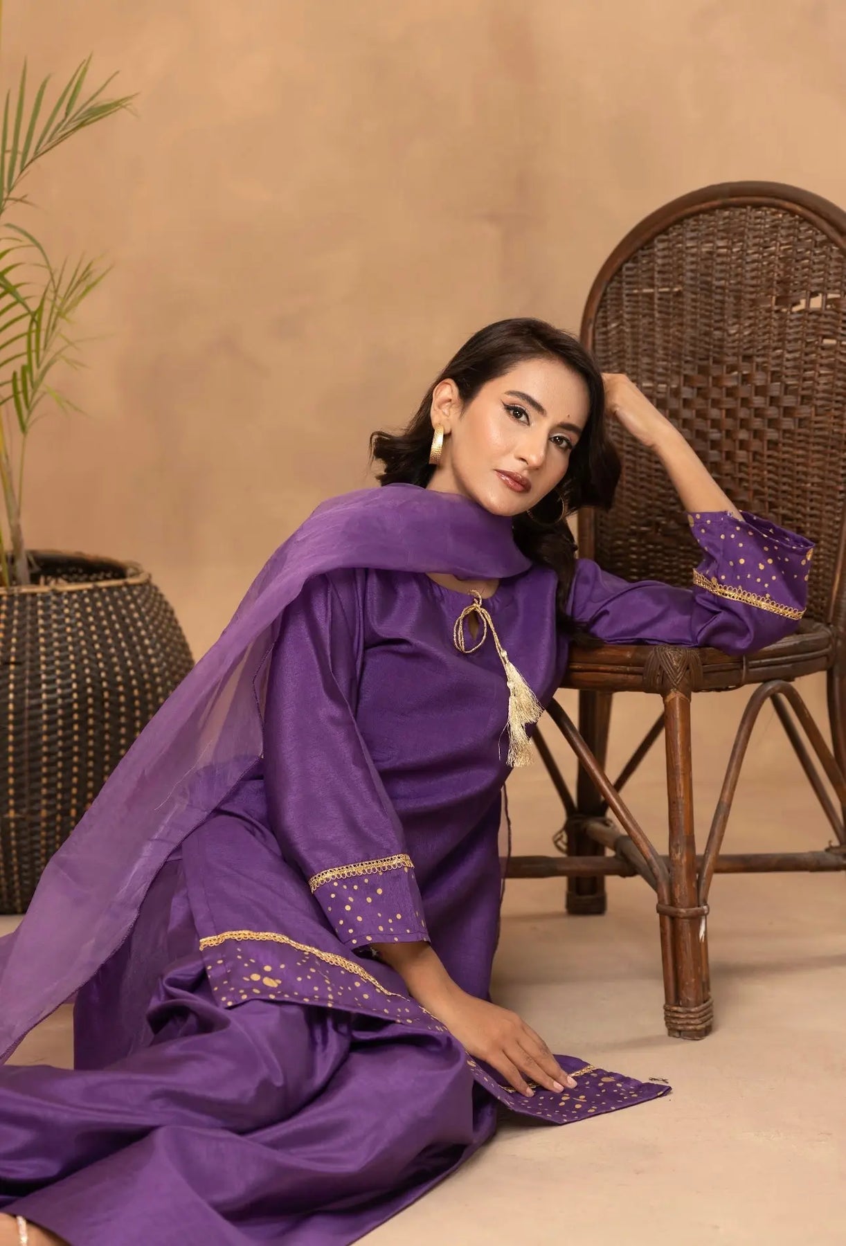 SIMRANS | Embroidered Raw Silk Readymade Viral Trending Farshi Shalwar | SM840 (Purple)