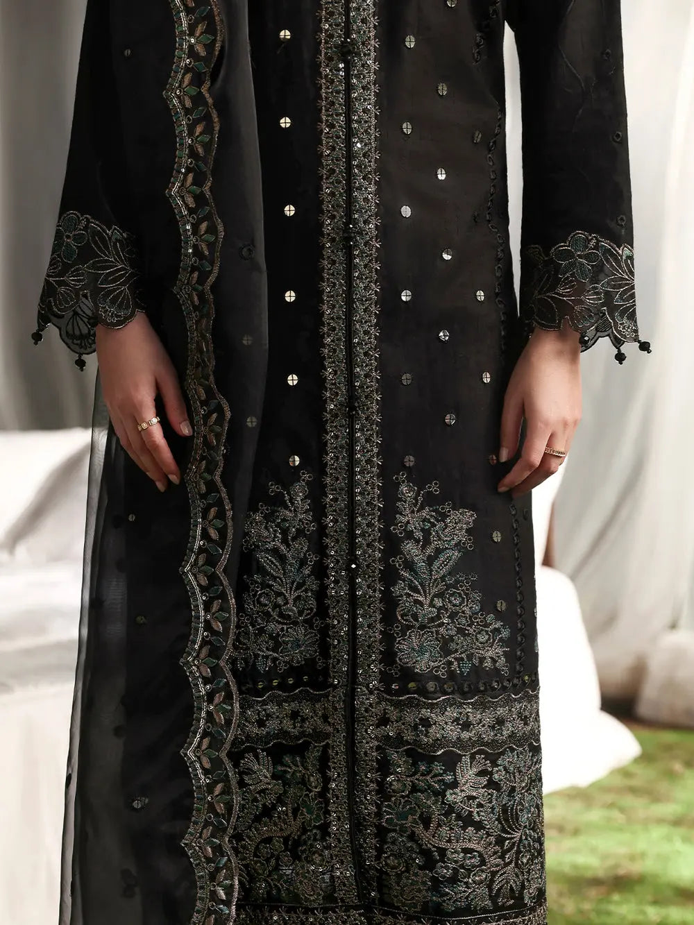 Hand Embroidered items are delicate in nature and can break of beading can become displaced. There is also a possibility in embroidery designs and prints which is unavoidable. By placing an order on our website you agree and accept the possibility of variation in comparison to the advertised images displayed on the website. We make every effort to minimise variations.