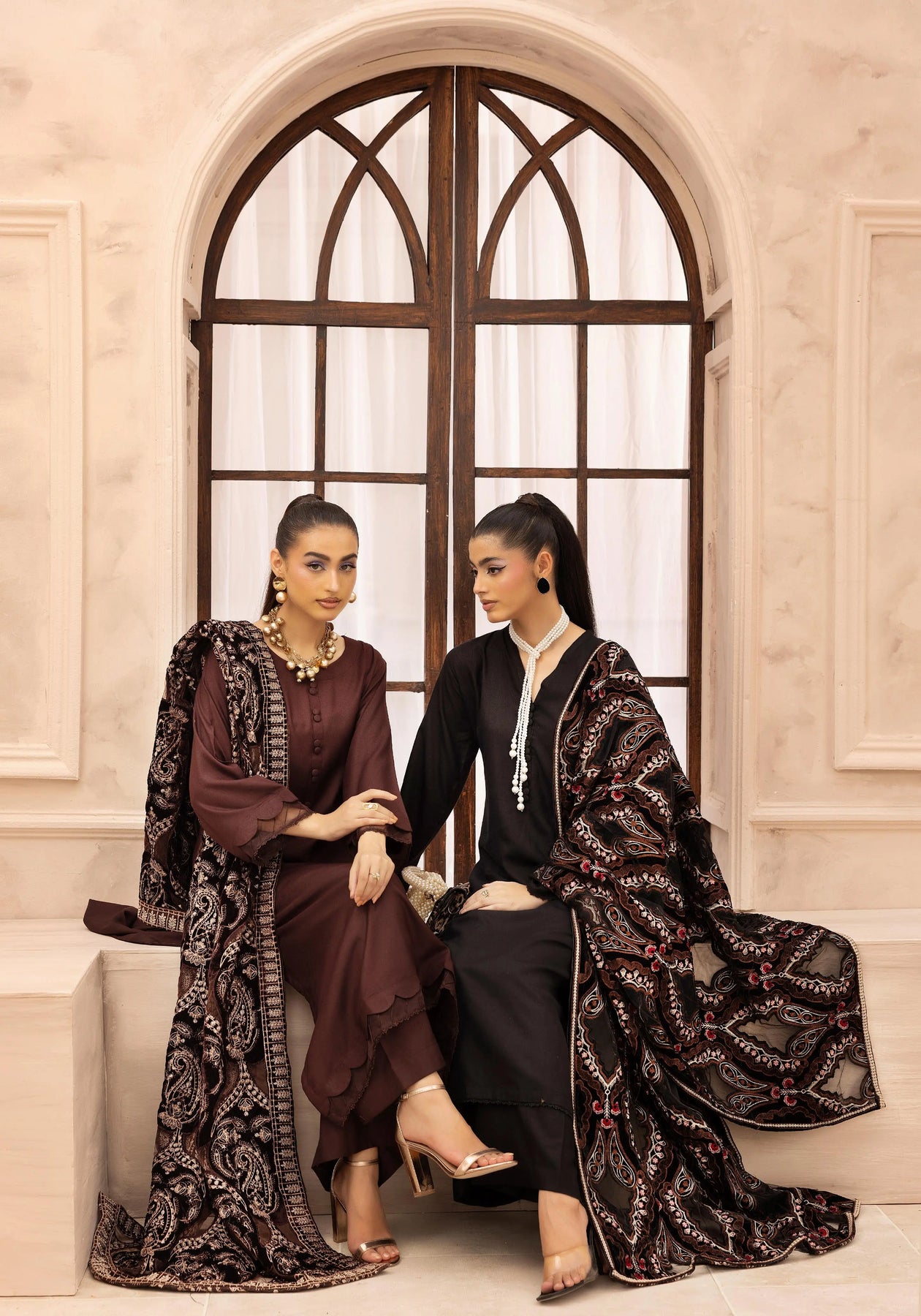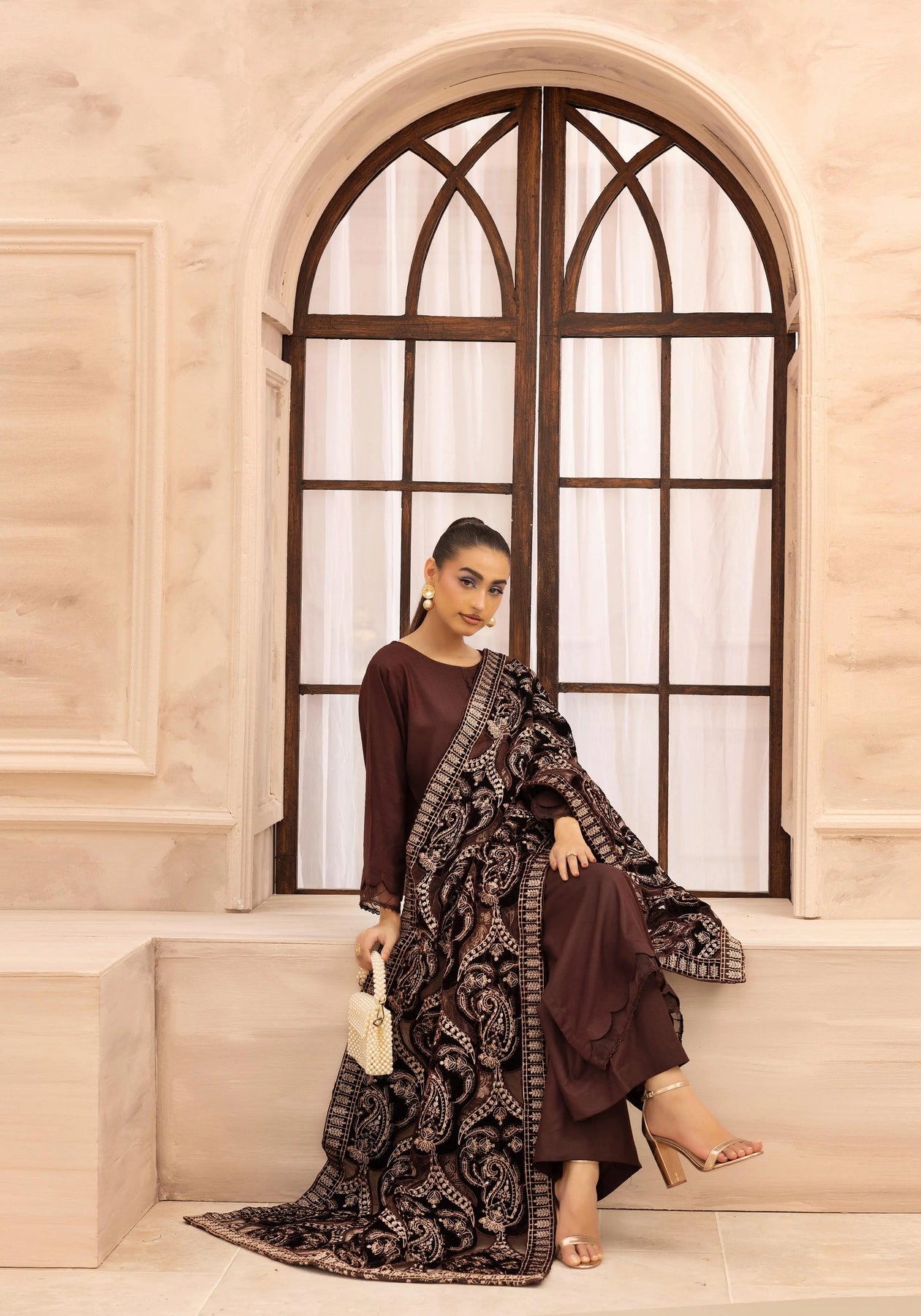 Stay cozy yet effortlessly stylish this season with our embroidered Dhanak 3-piece suit, beautifully paired with a laser cut velvet shawl. ❄️ This outfit is the perfect blend of warmth, tradition, and timeless Pakistani sophistication. 💫
