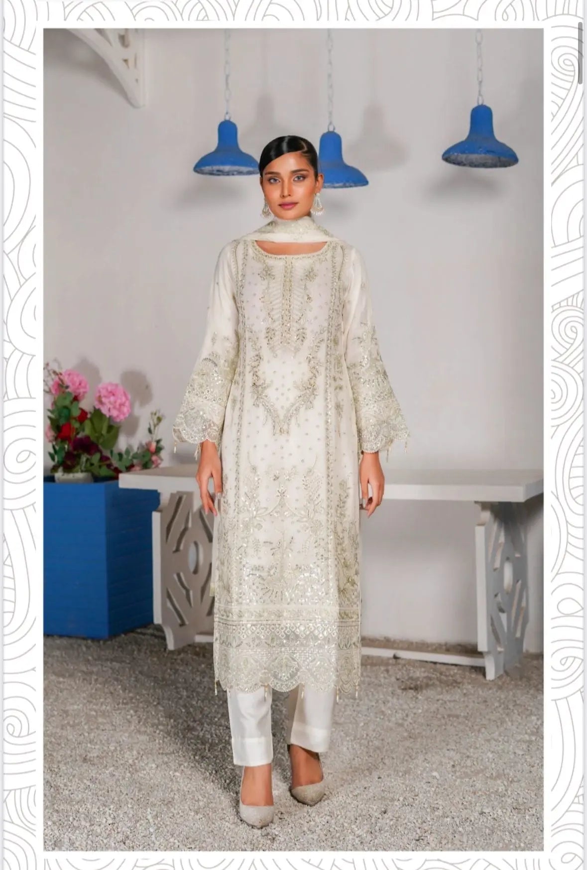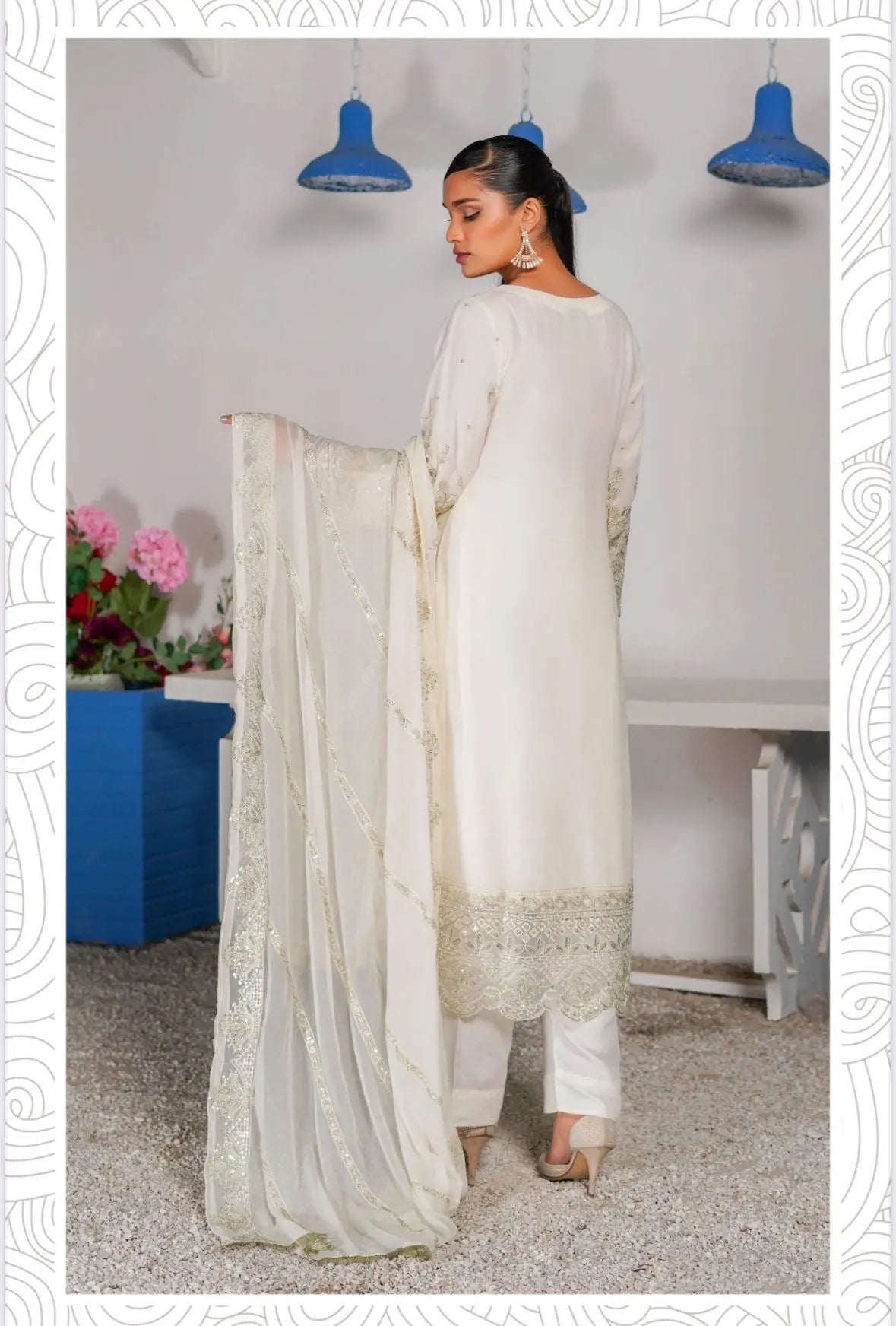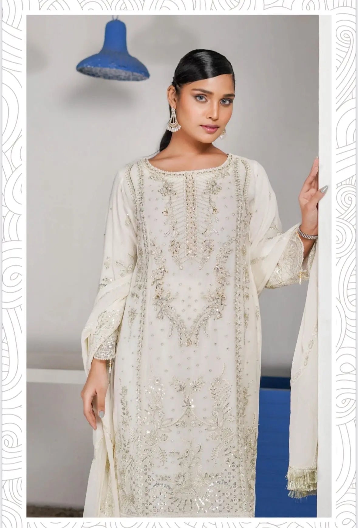 Elevate your festive look with this stunning embroidered chiffon partywear ensemble. Crafted from premium chiffon, this outfit features intricate embroidery that adds a touch of elegance and sophistication. The lightweight fabric ensures effortless drape and comfort, making it perfect for special occasions.