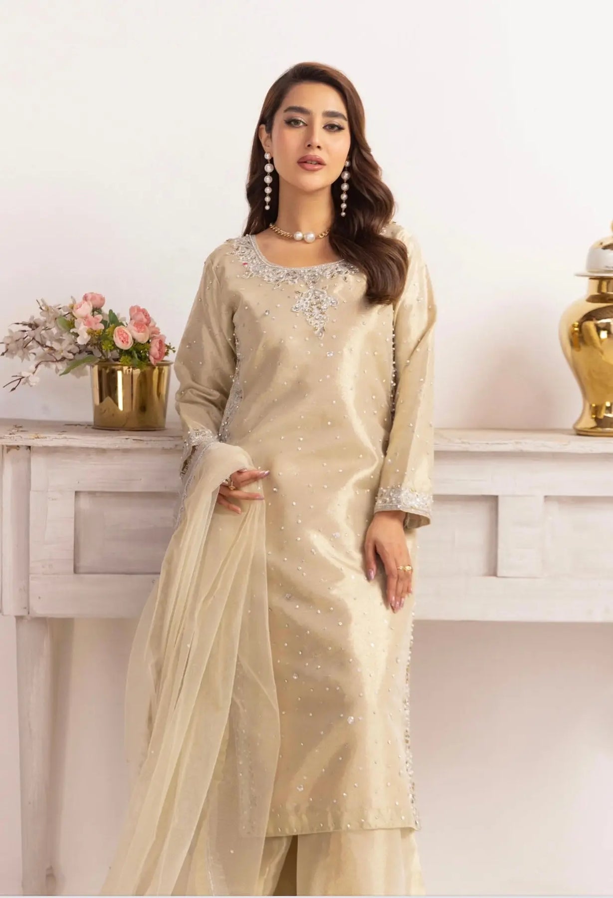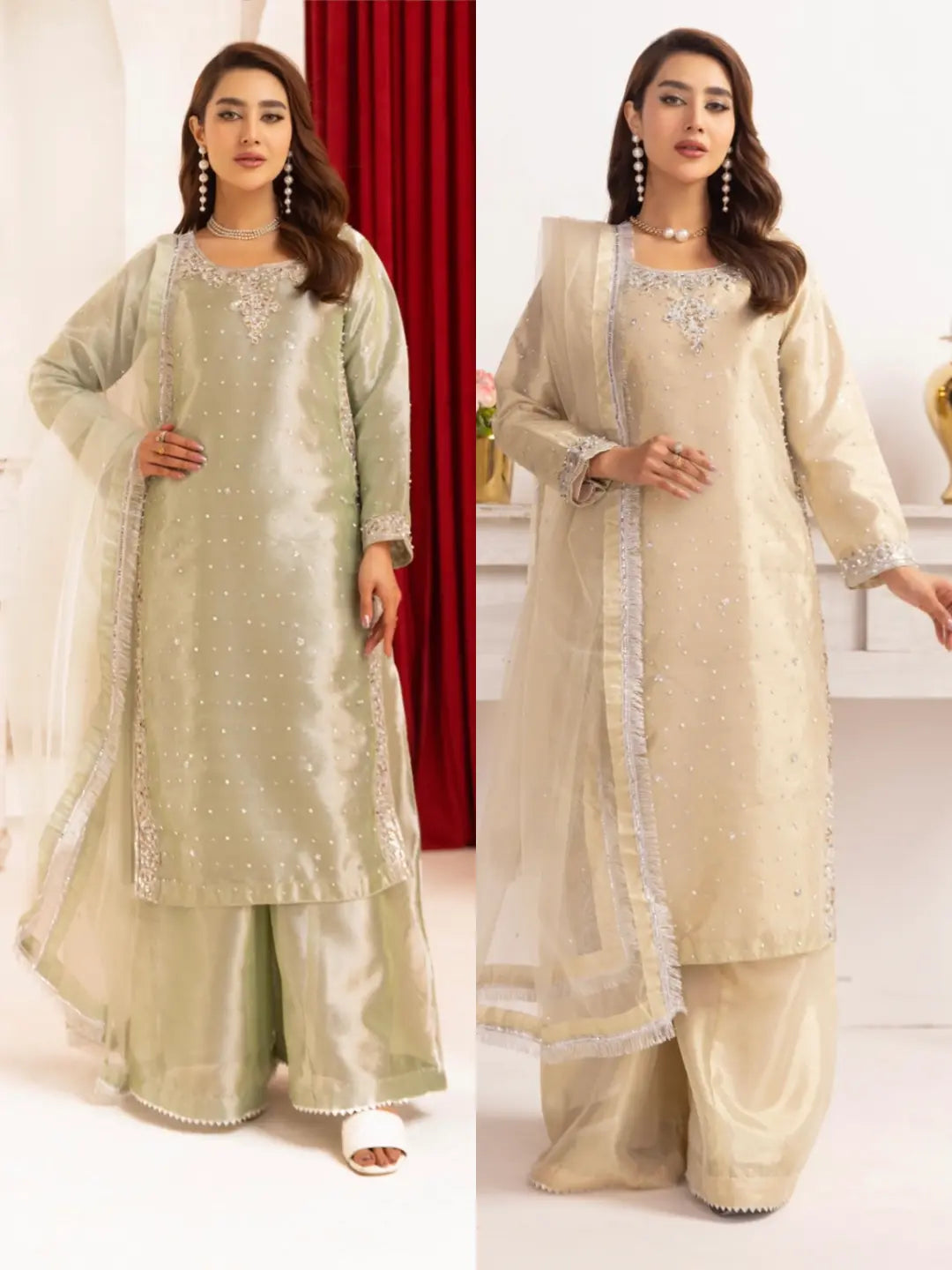 SIMRANS ‘Hussain Rehar’ | Embroidered Handwork Raw Silk Pakistani Readymade | SM909 (2 Colours) Simrans