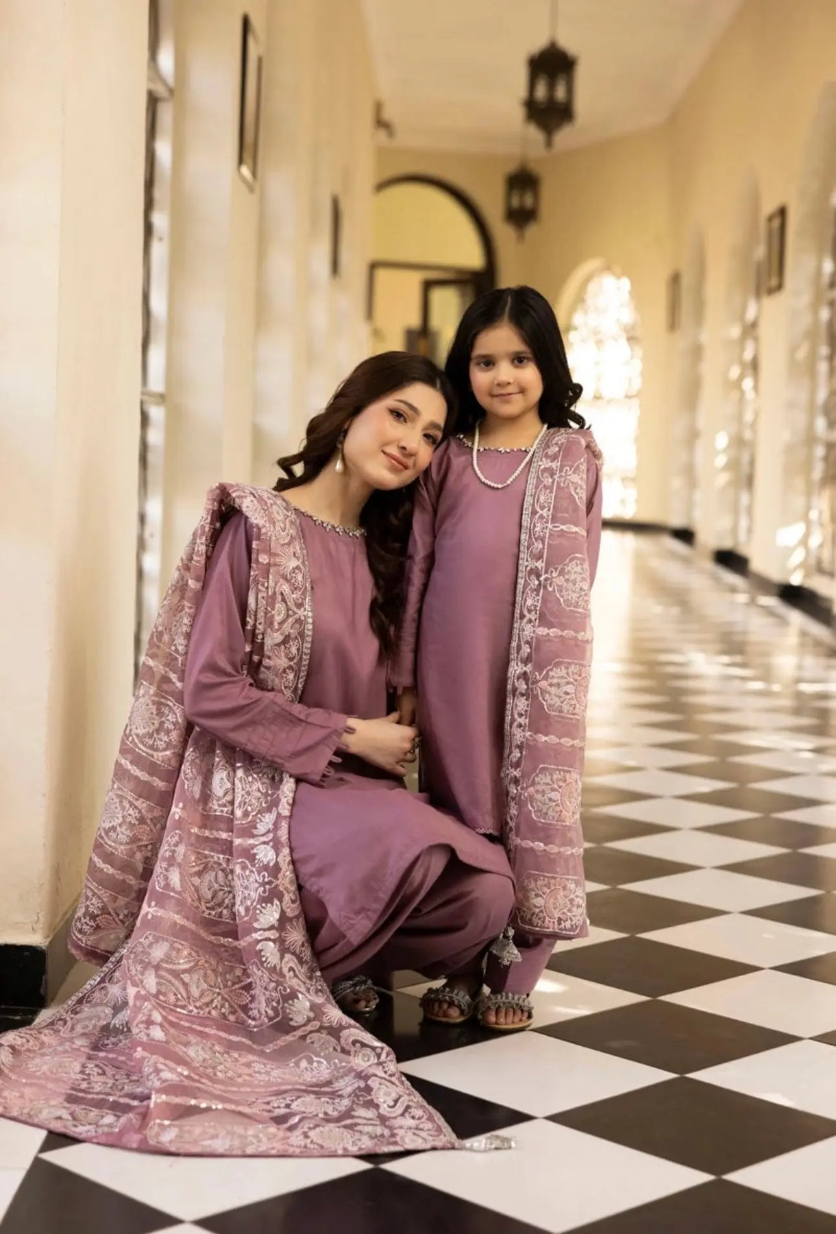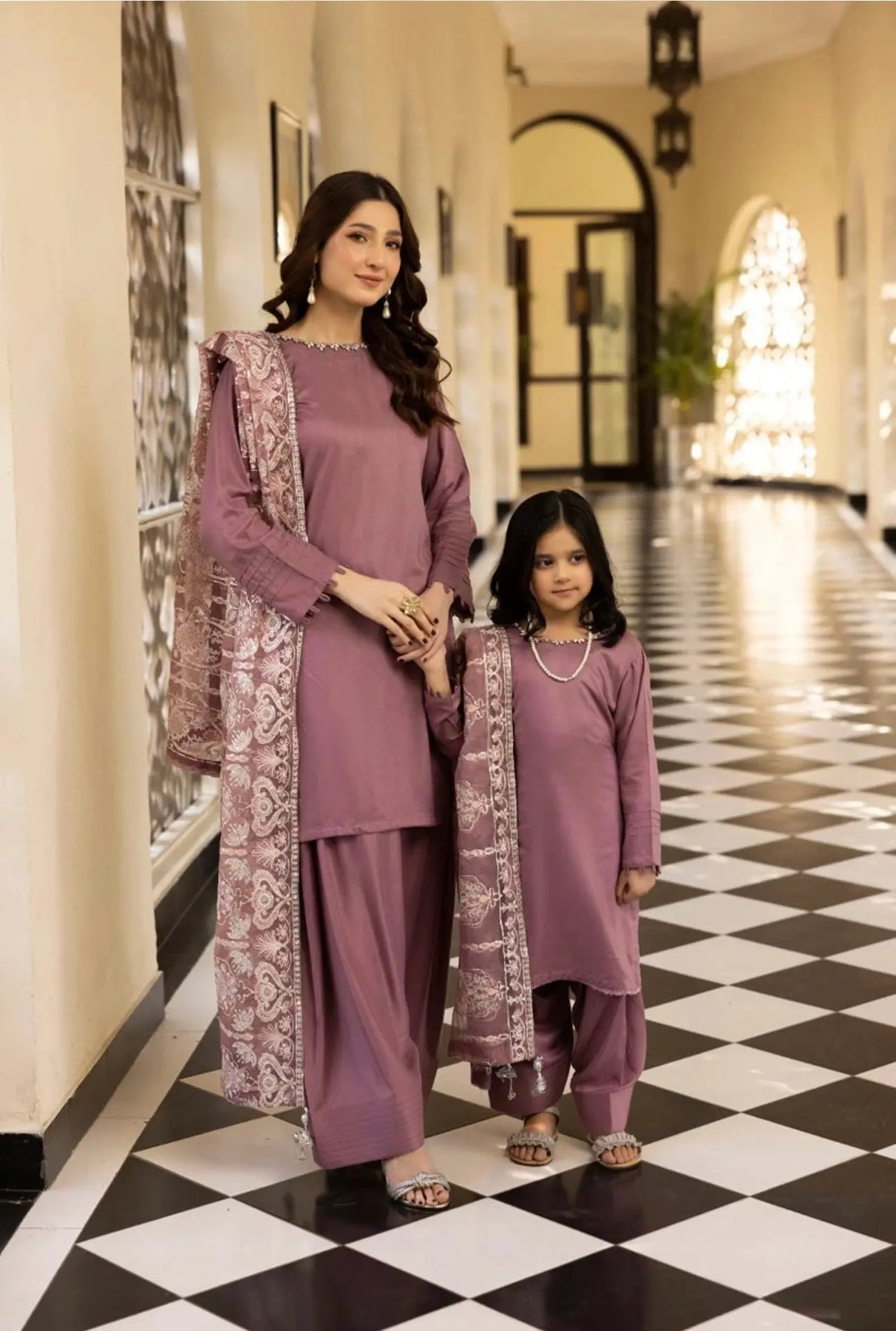 Celebrate the joy of Eid in style with our Mother & Daughter embroidered linen Collection, designed for elegance and comfort. Made from premium linen, this outfit ensures a breathable and soft feel, perfect for festive gatherings.