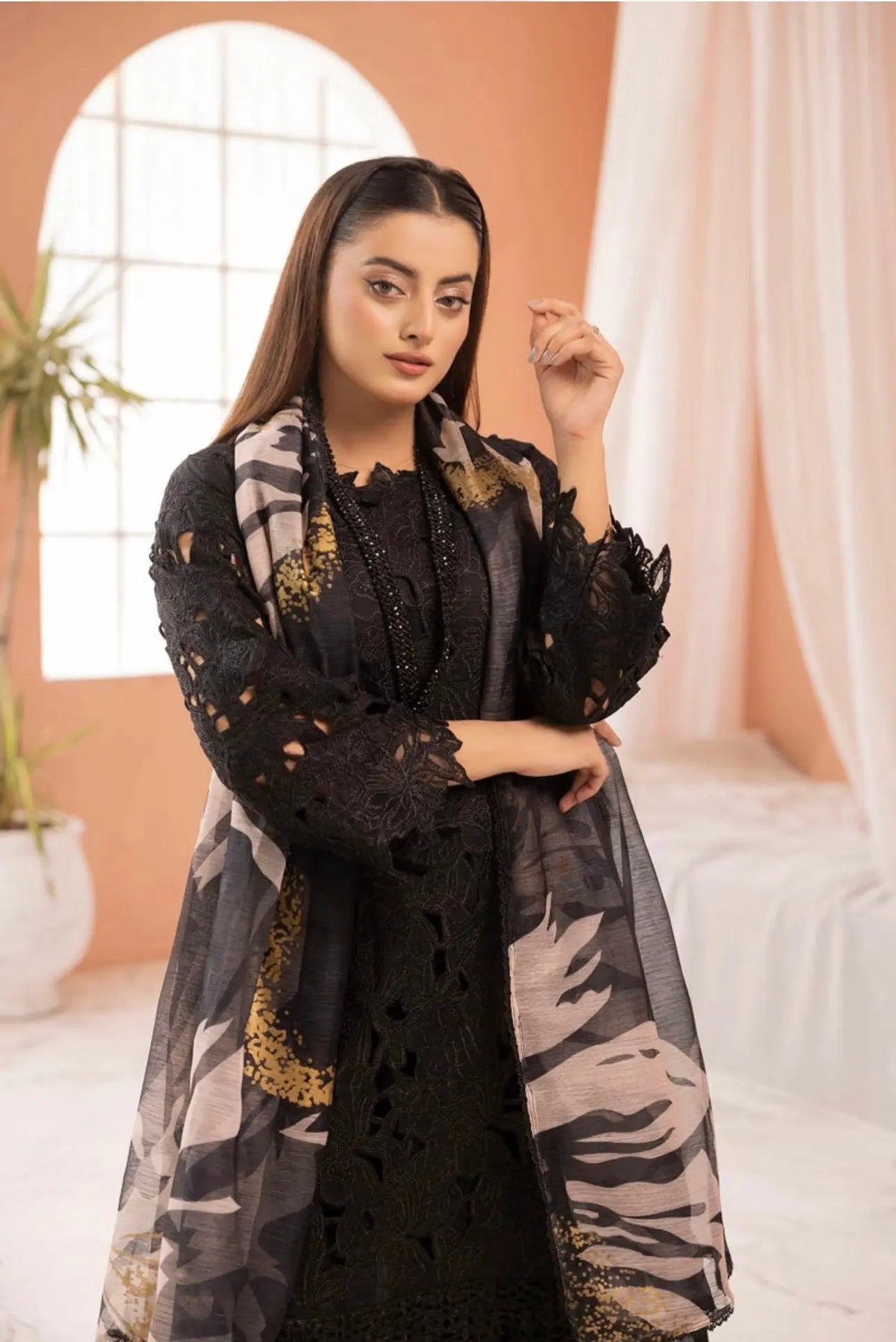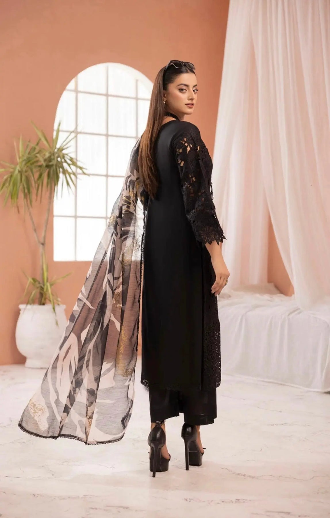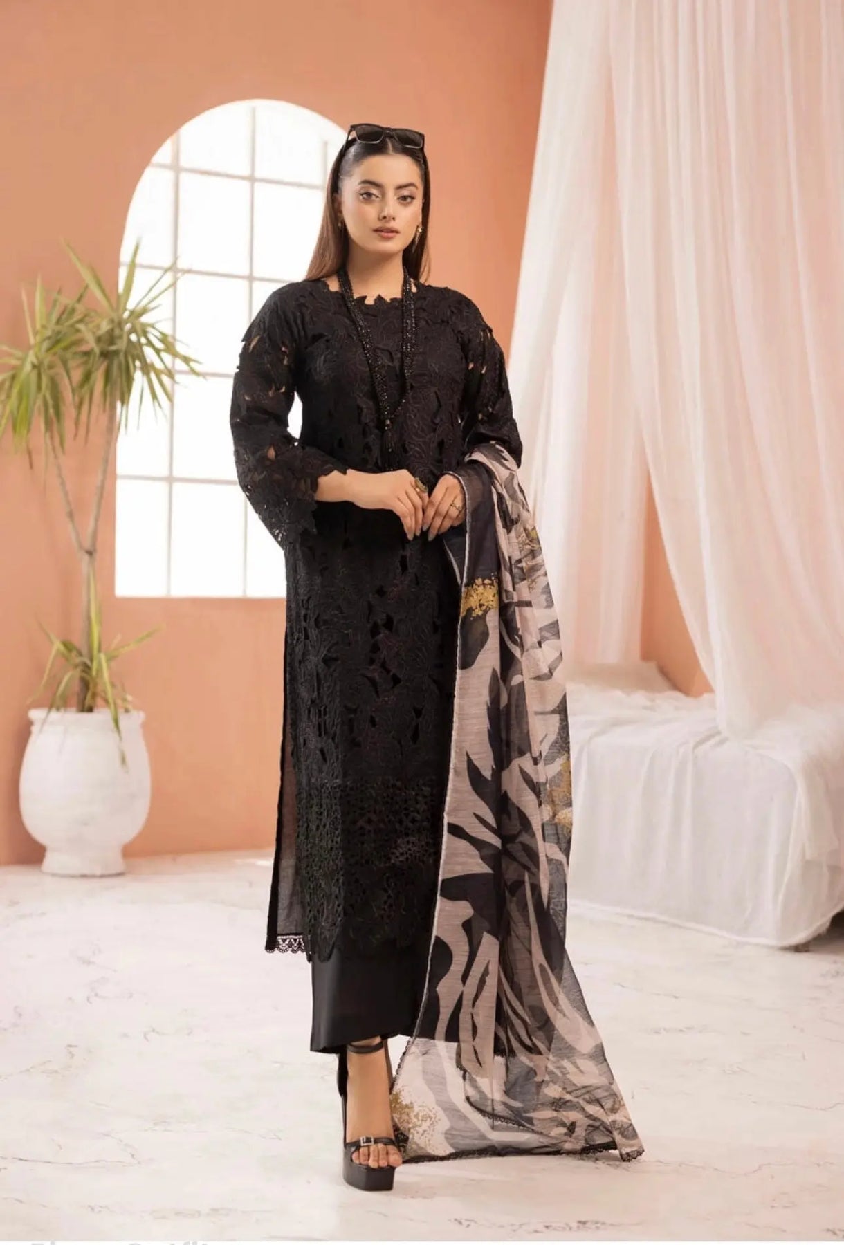 • Dupatta: A beautifully crafted chiffon dupatta with, embroidery, and statement accessories to complete the ensemble.
