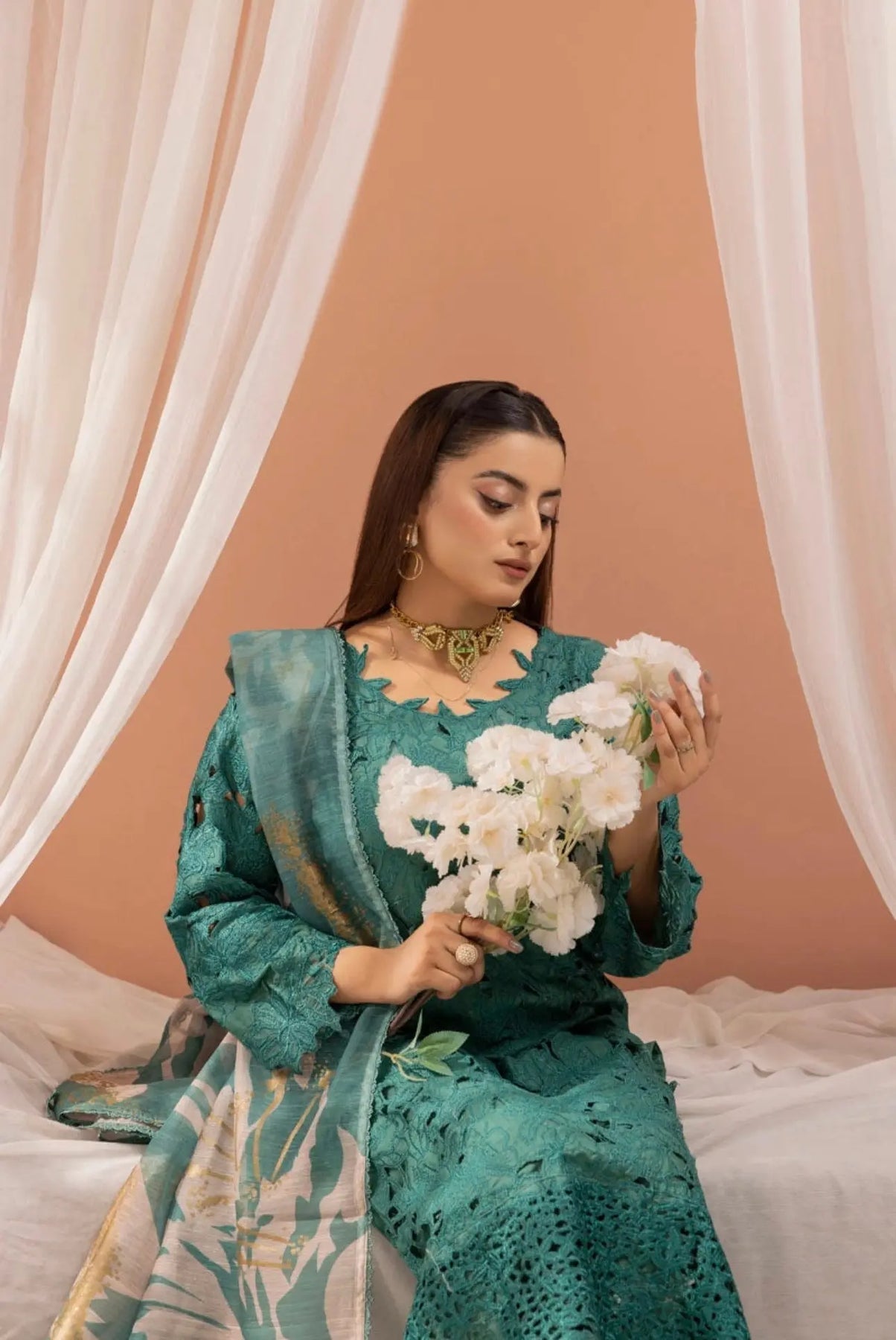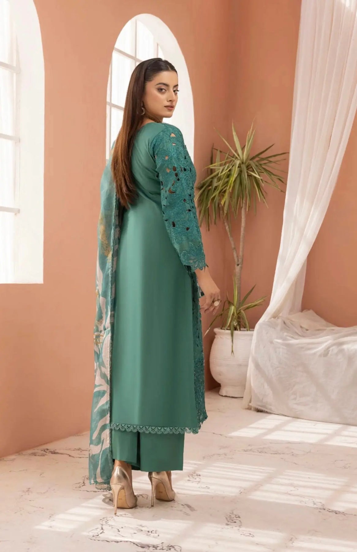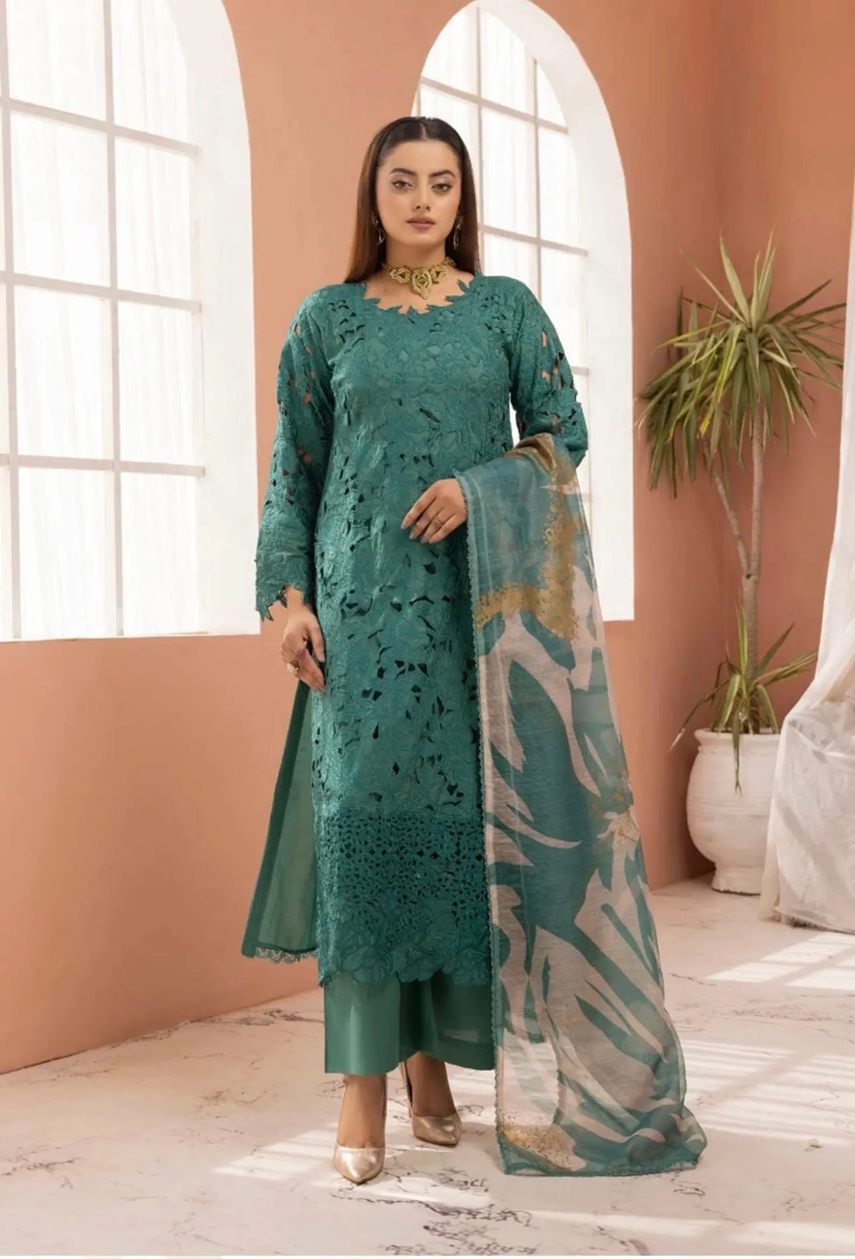 - Dupatta: A beautifully crafted chiffon dupatta with, embroidery, and statement accessories to complete the ensemble.