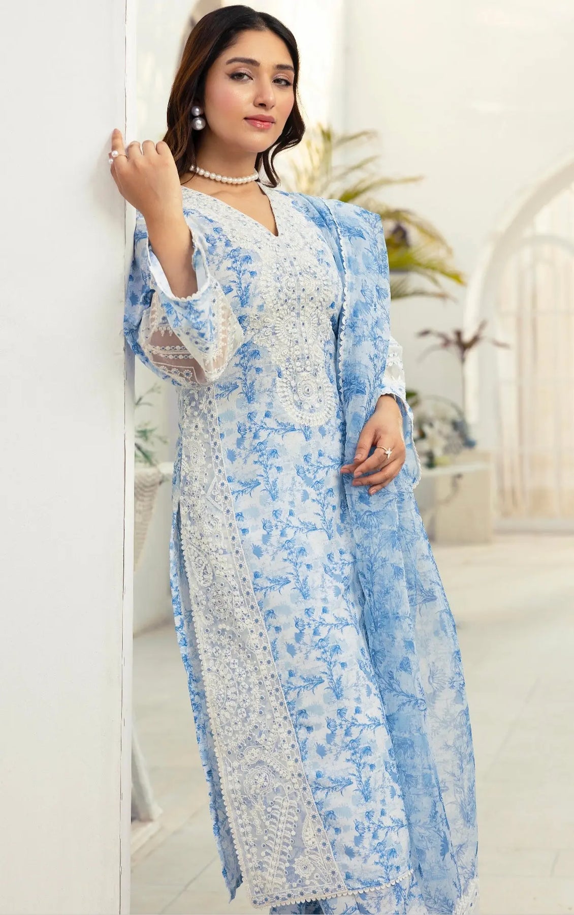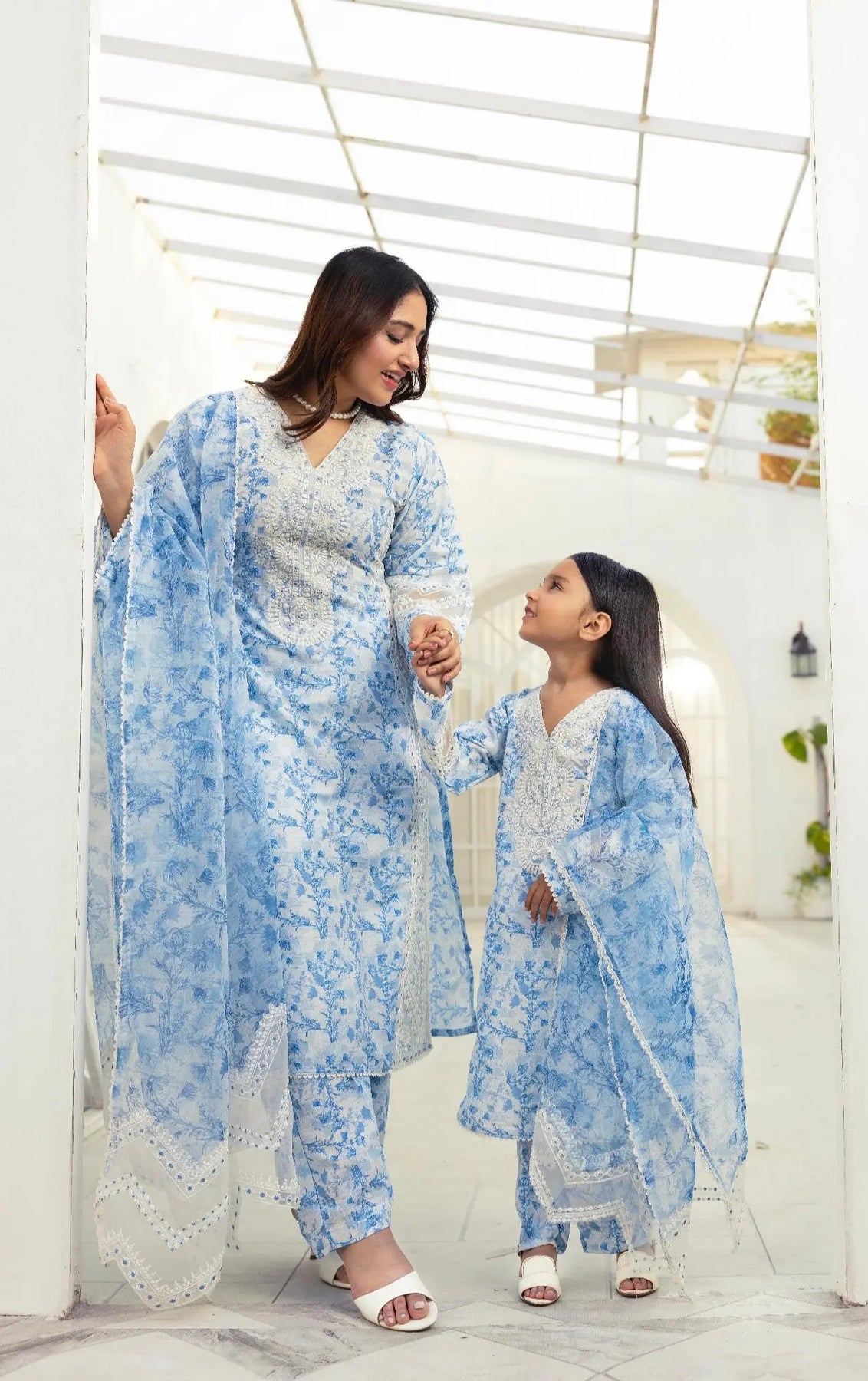 SIMRANS ‘Sawera’ | Embroidered Cotton Mother & Daughter Readymade | SM789 (Light Blue)