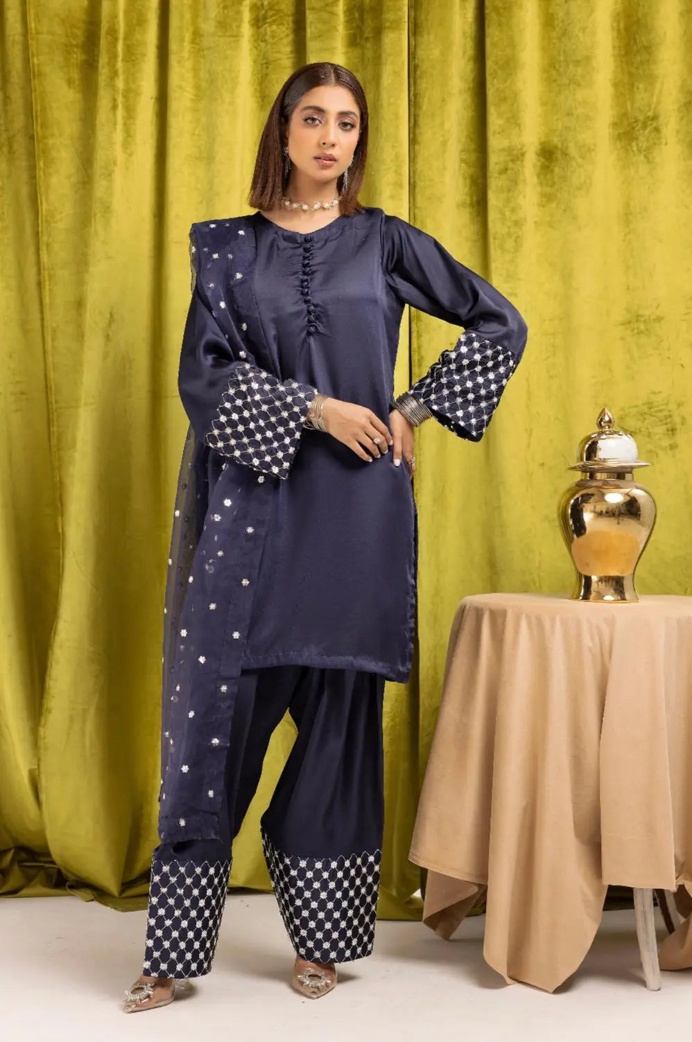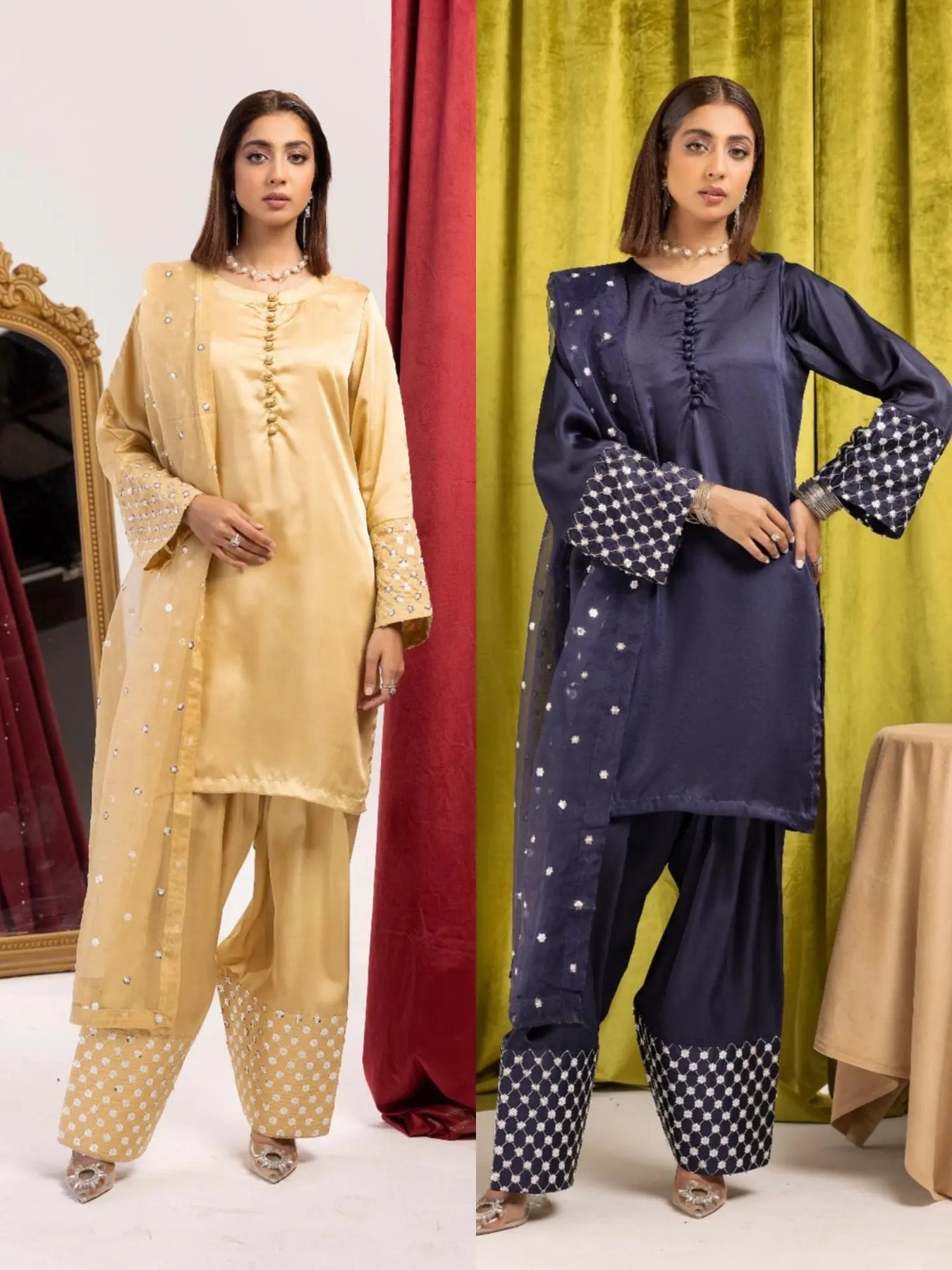 SIMRANS ‘Shamooz’ | Embroidered Silk Readymade Viral Trending Farshi Shalwar| SM842 (2 Colours)