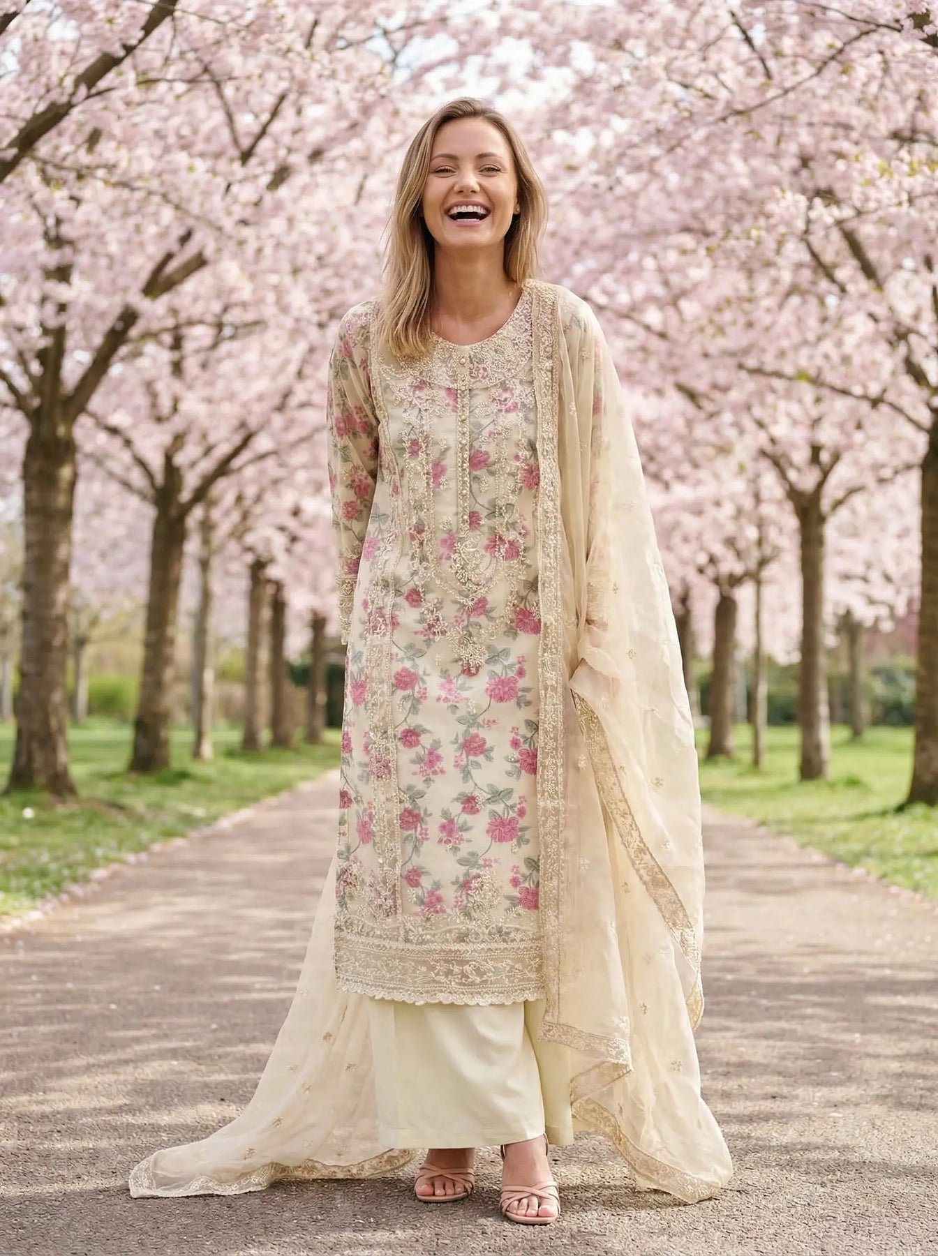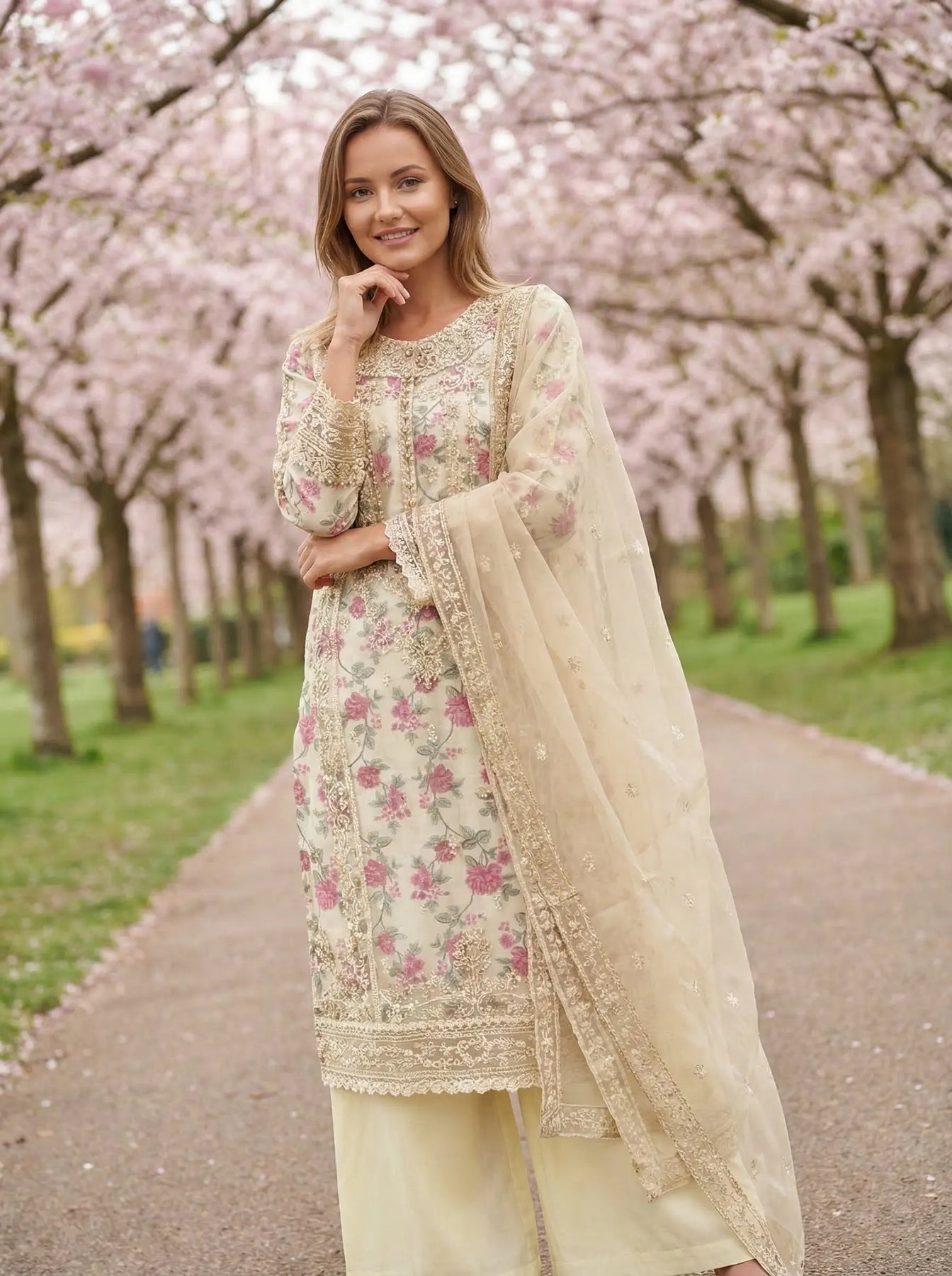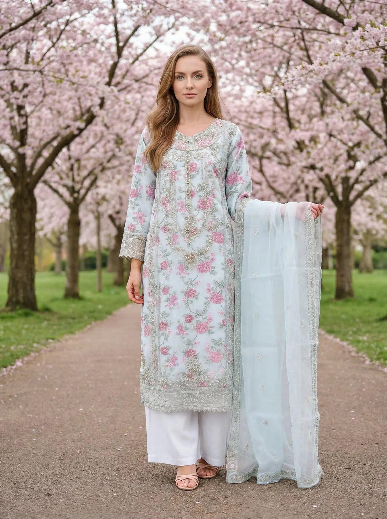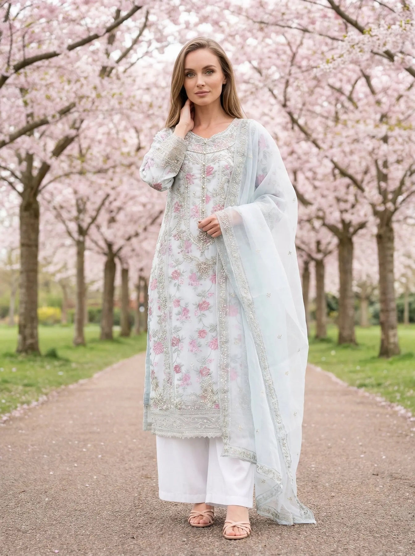 From time to time beading/ sequences may get displaced and this is not thought of as a fault but is due to the nature of the work. These articles of clothing should be worn with care.