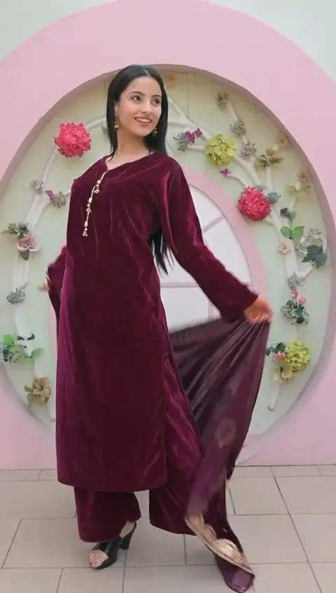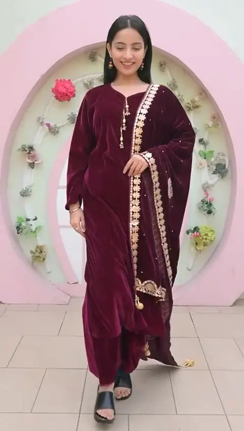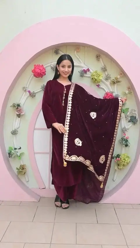 New Embroidered Velvet 3pc Suits with an embroidered velvet dupatta. Perfect for winter
