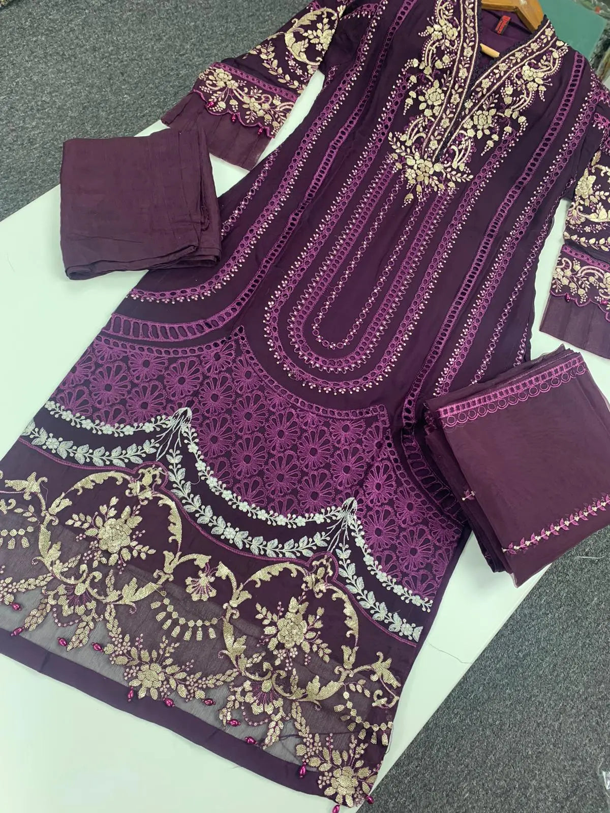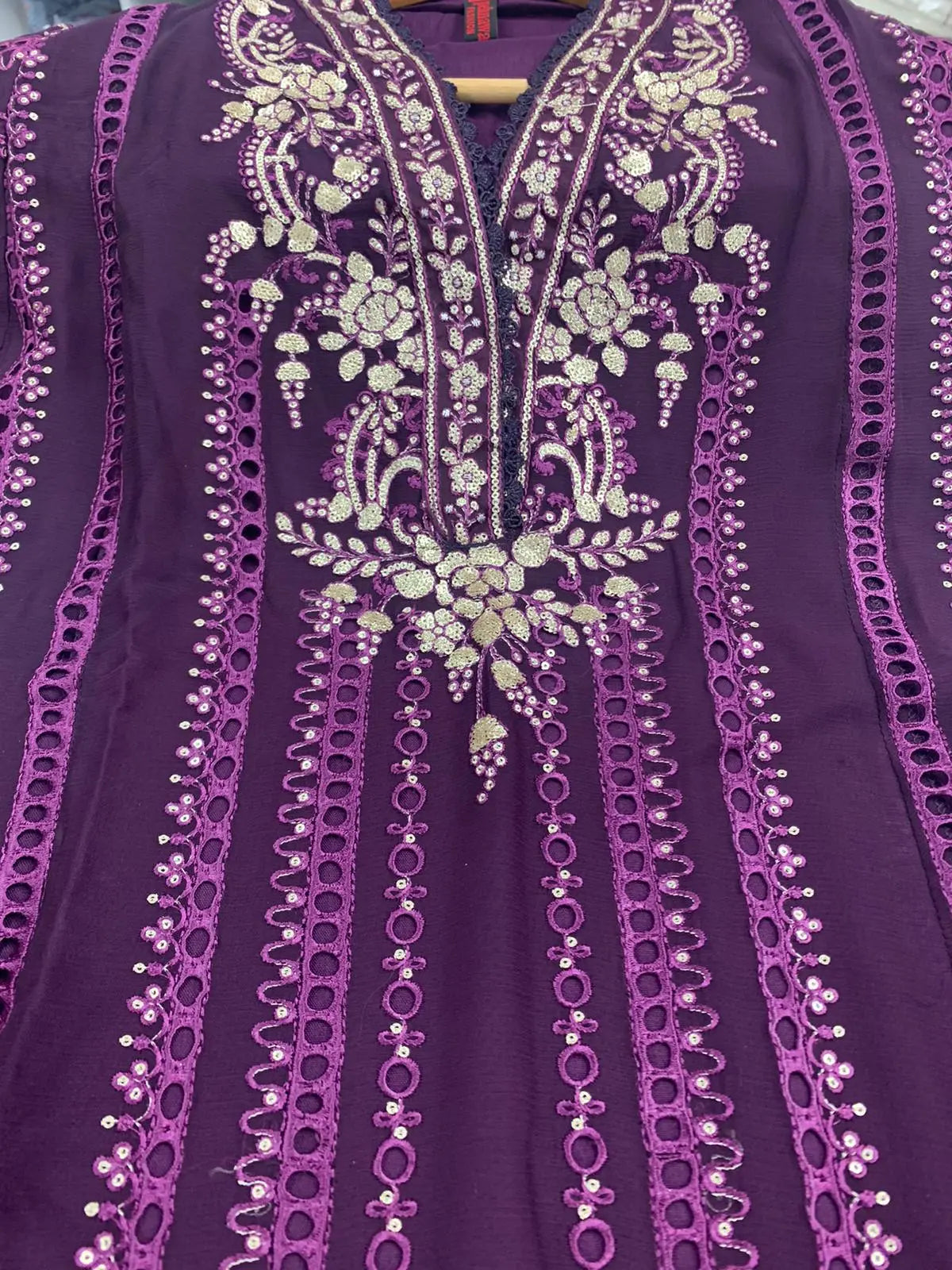 Hand Embroidered items are delicate in nature and can break of beading can become displaced. There is also a possibility in embroidery designs and prints which is unavoidable. By placing an order on our website you agree and accept the possibility of variation in comparison to the advertised images displayed on the website. We make every effort to minimise variations.