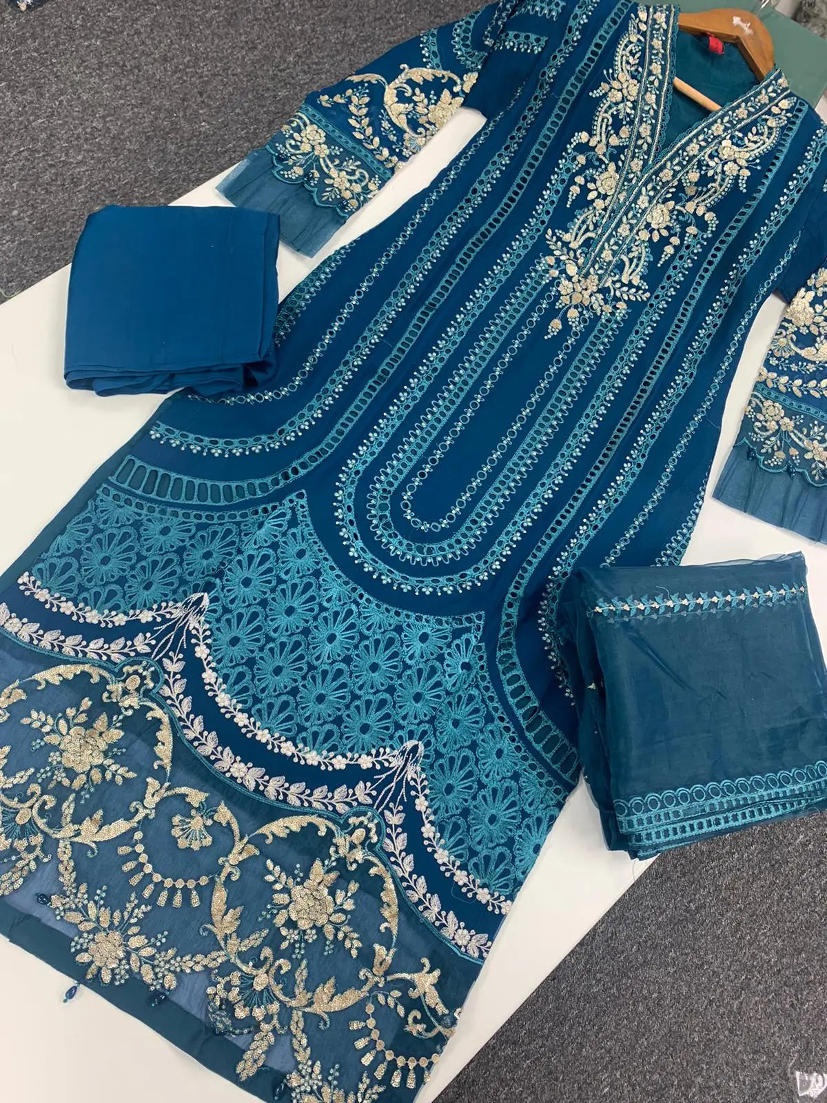 Stunning Embroidered Chiffon Kameez with Fancy Dupatta. This is a hit design that comes in three different colourways.