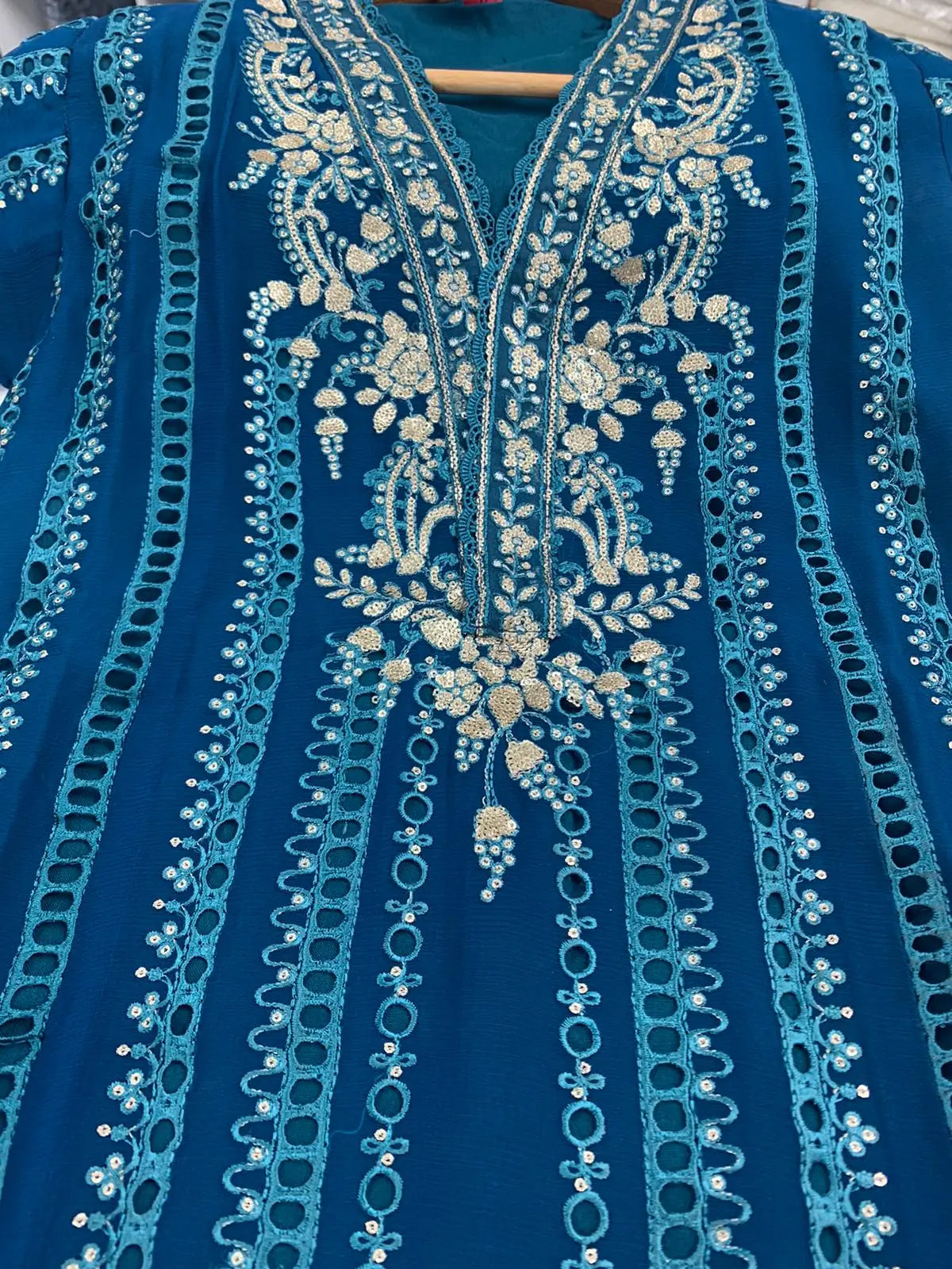 Pehnawa | Embroidered Chiffon Readymade | PNW08 (Blue)