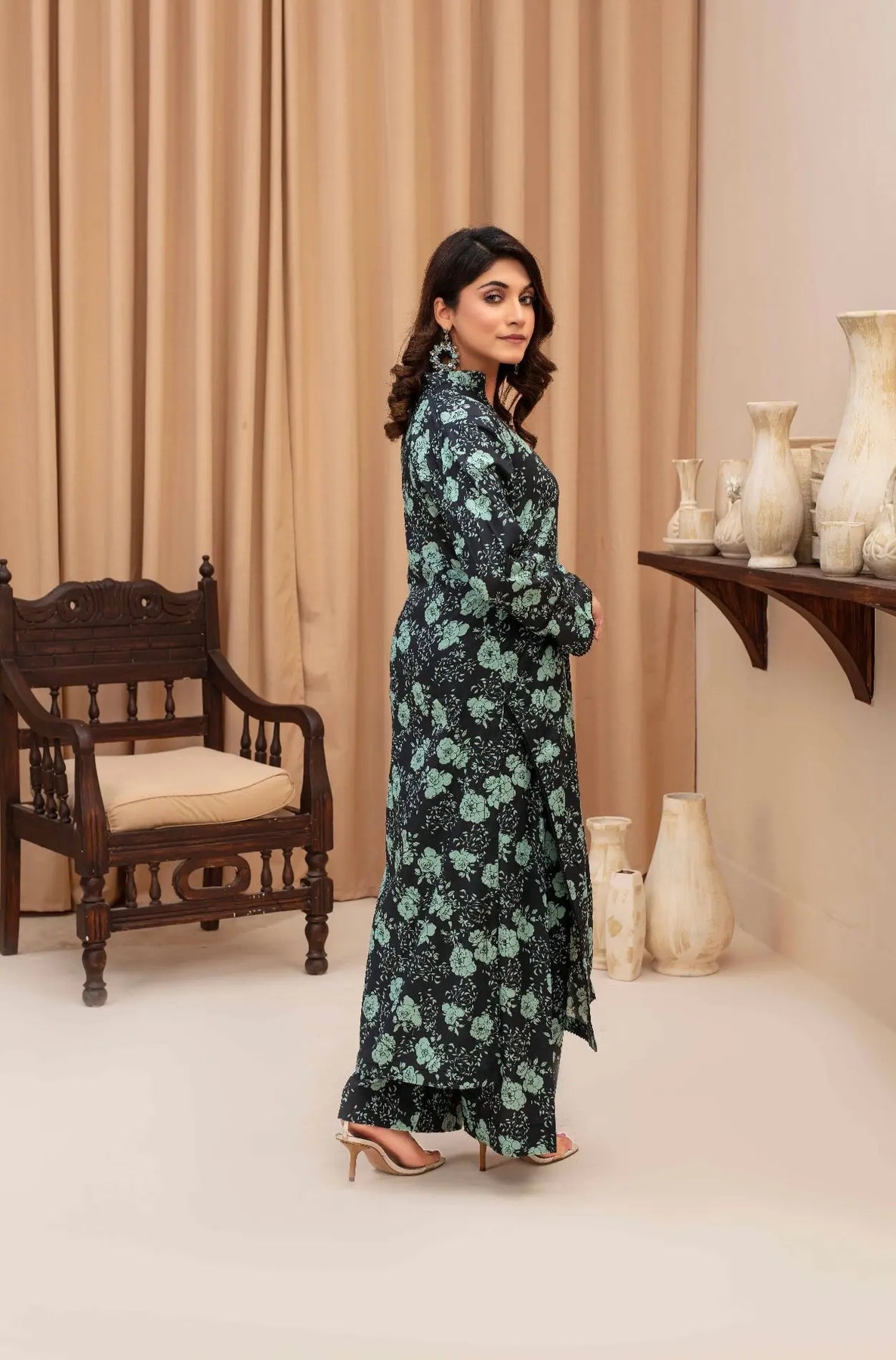 From time to time beading/ sequences may get displaced and this is not thought of as a fault but is due to the nature of the work. These articles of clothing should be worn with care.