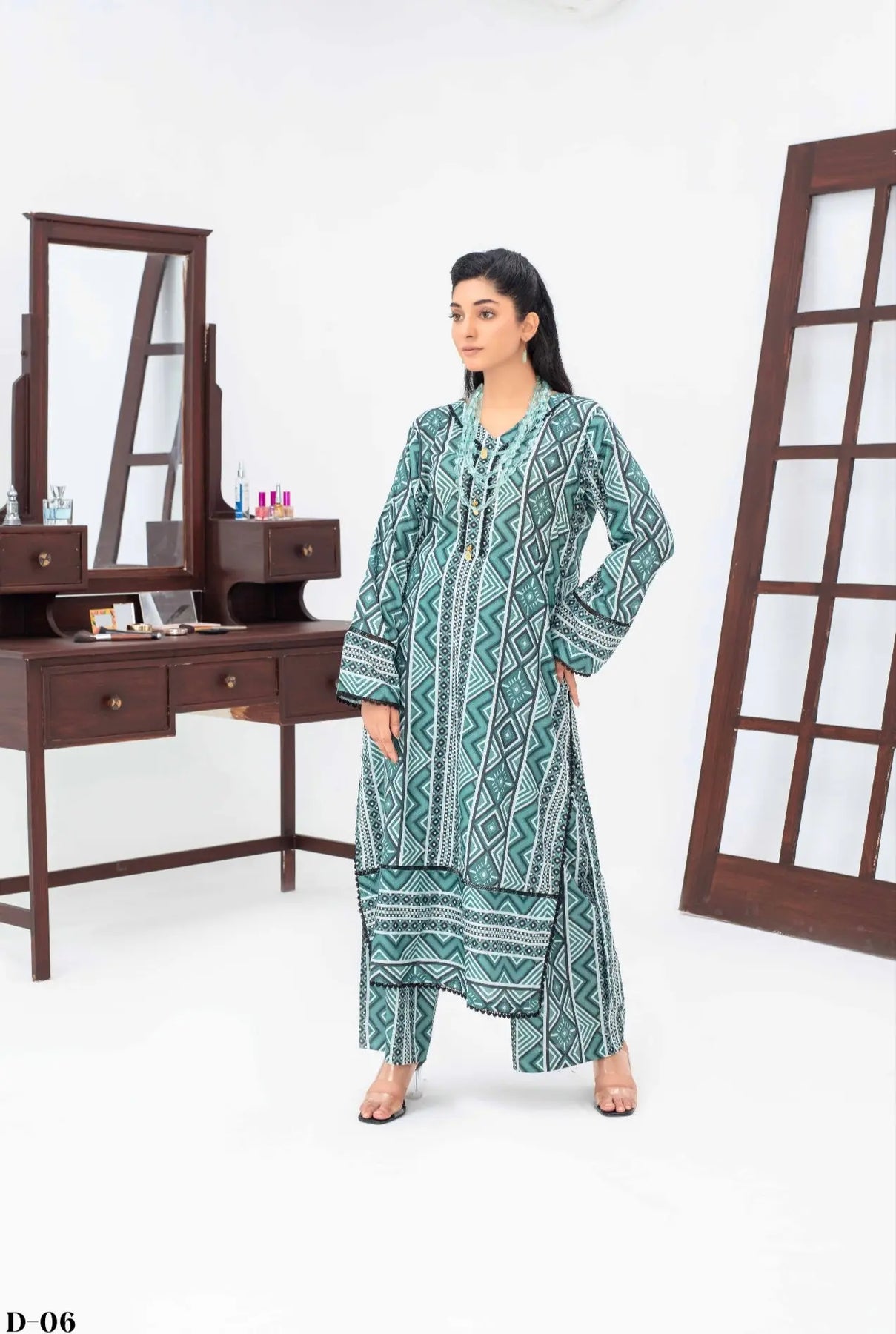 Printed lawn 2pc with neck line embroidery. Stunning trendy prints inspired by western designs.