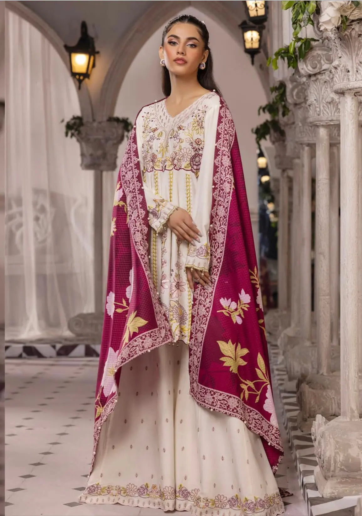 3-Linen embroidered panel shararah. Experience the epitome of elegance and sophistication with these stunning pieces.