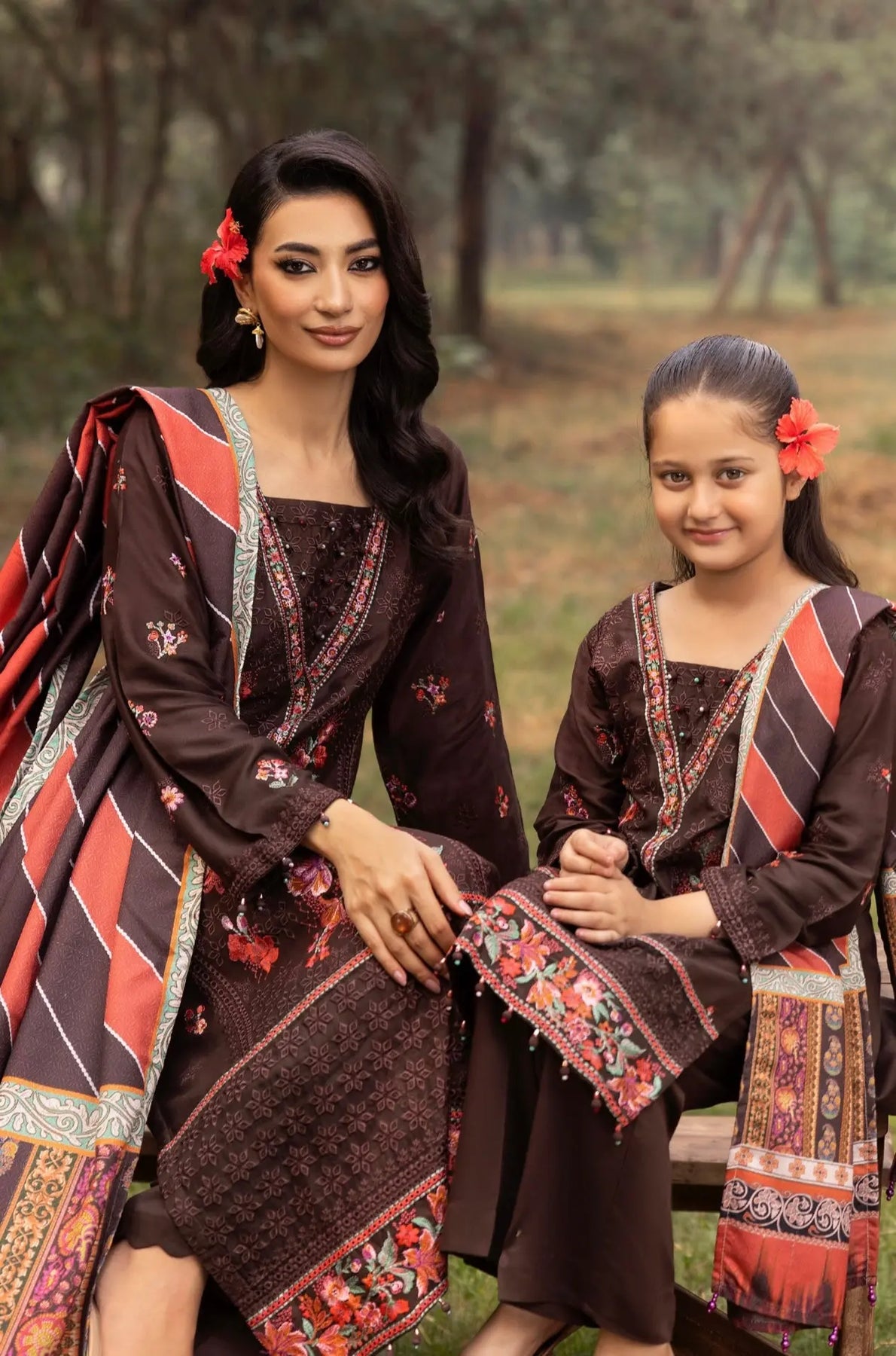 Embroidered stylish kutail collection with fancy shawls. This comes in matching sets for mother & daughter.