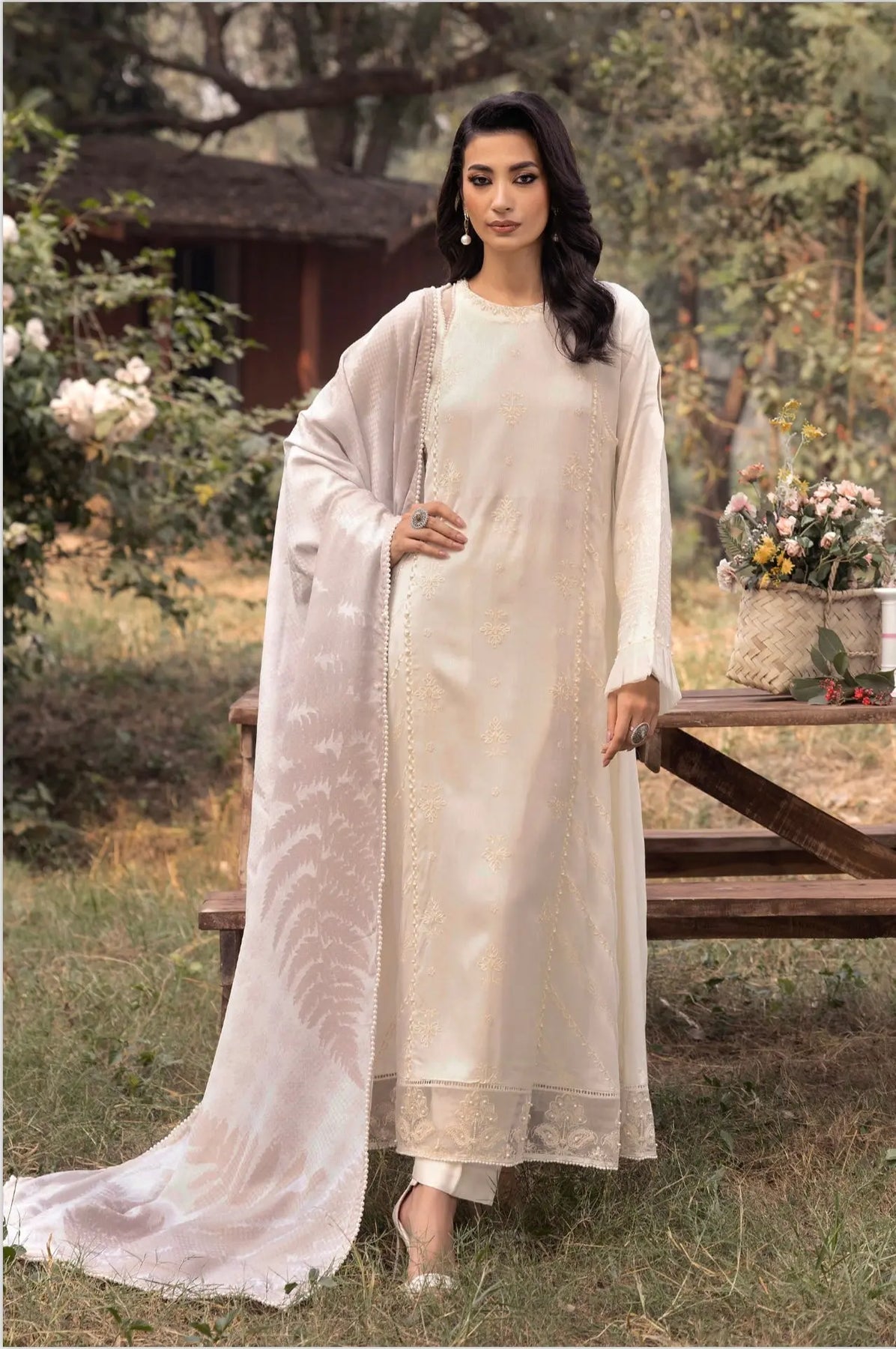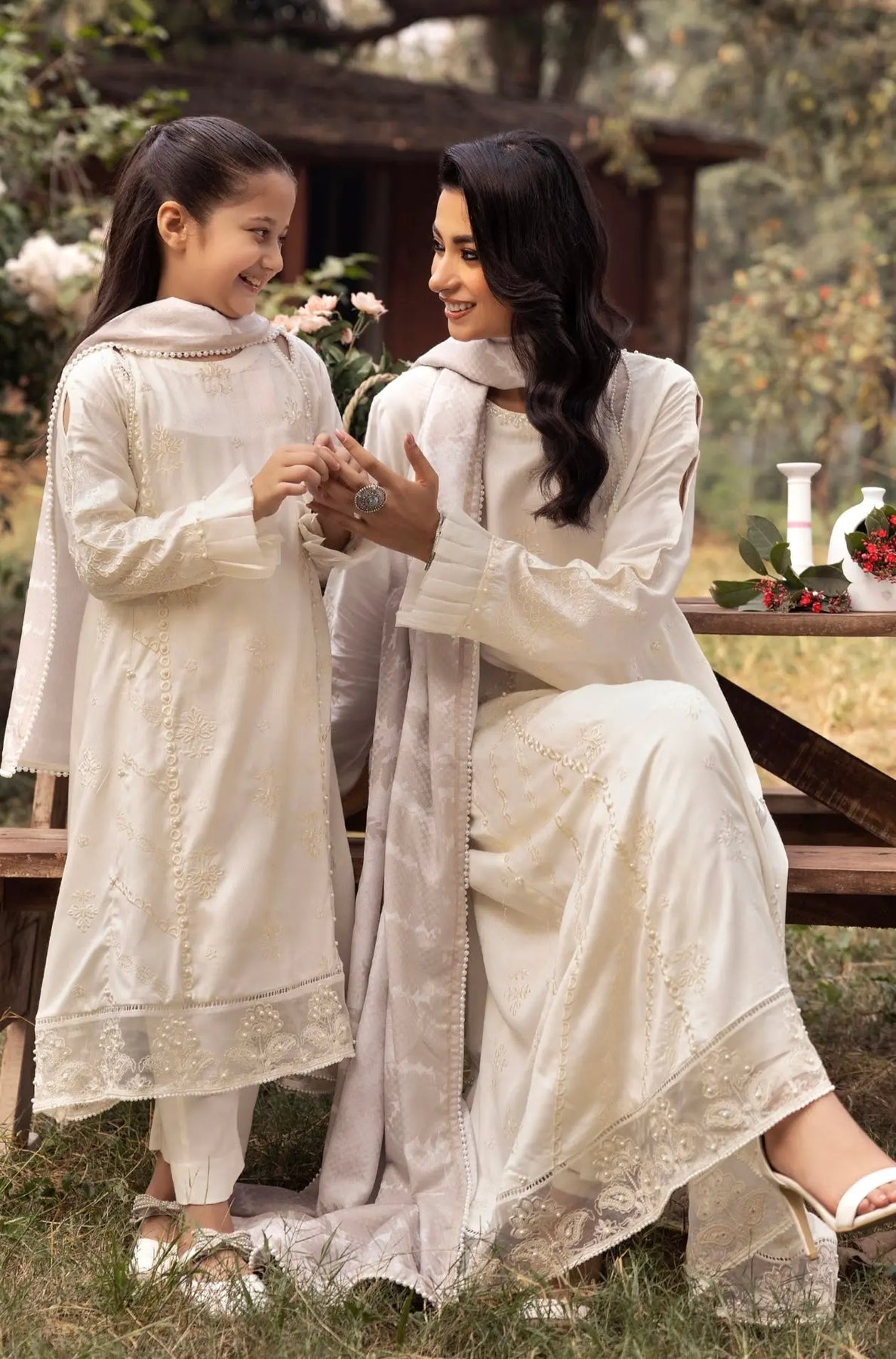 Embroidered stylish kutail collection with fancy shawls. This comes in matching sets for mother & daughter.