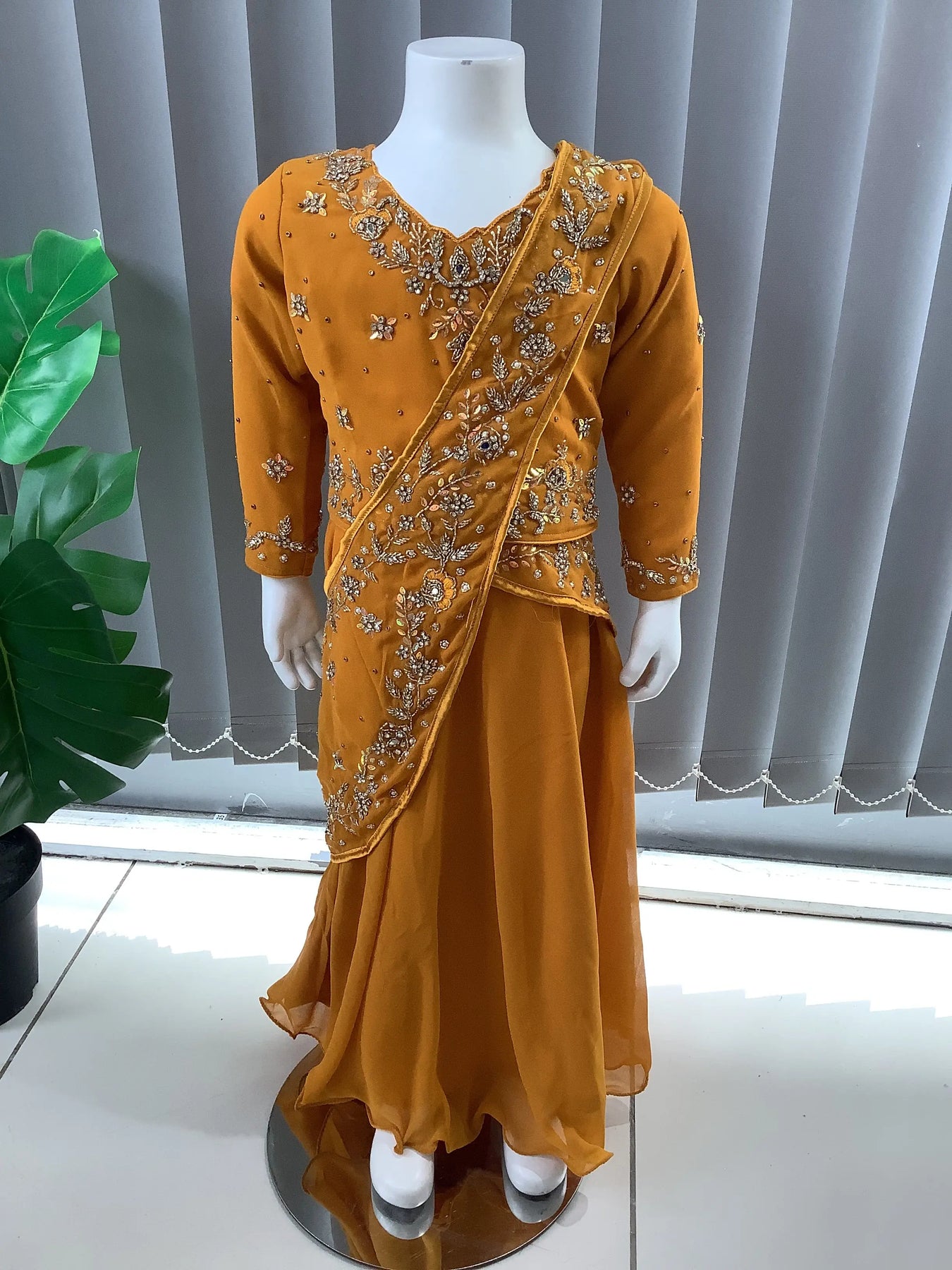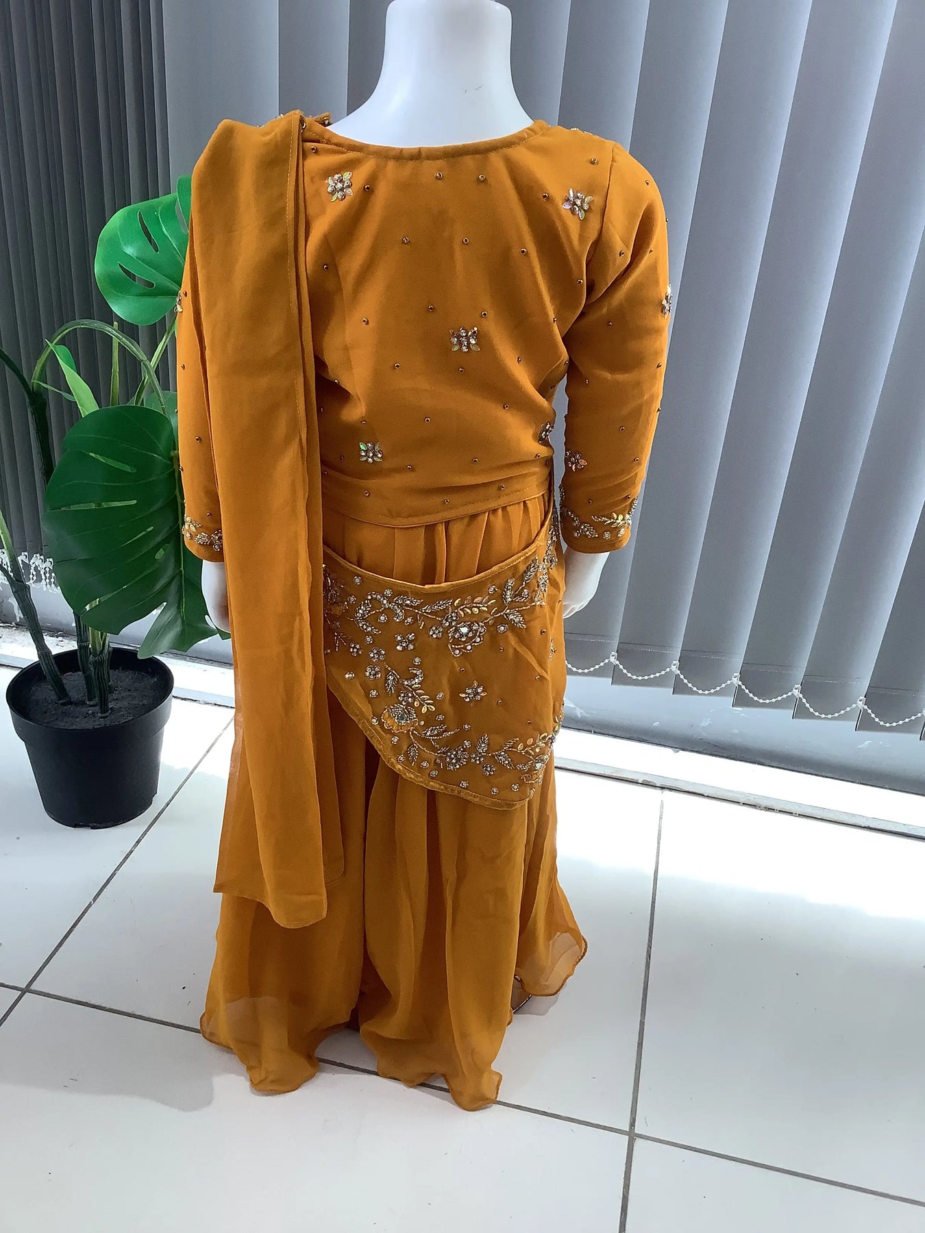 ASHA | Embroidered Chiffon Saree Mother & Daughter Readymade Mustard | AS55