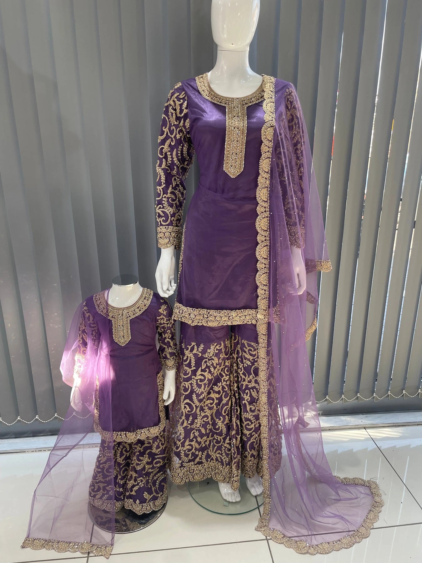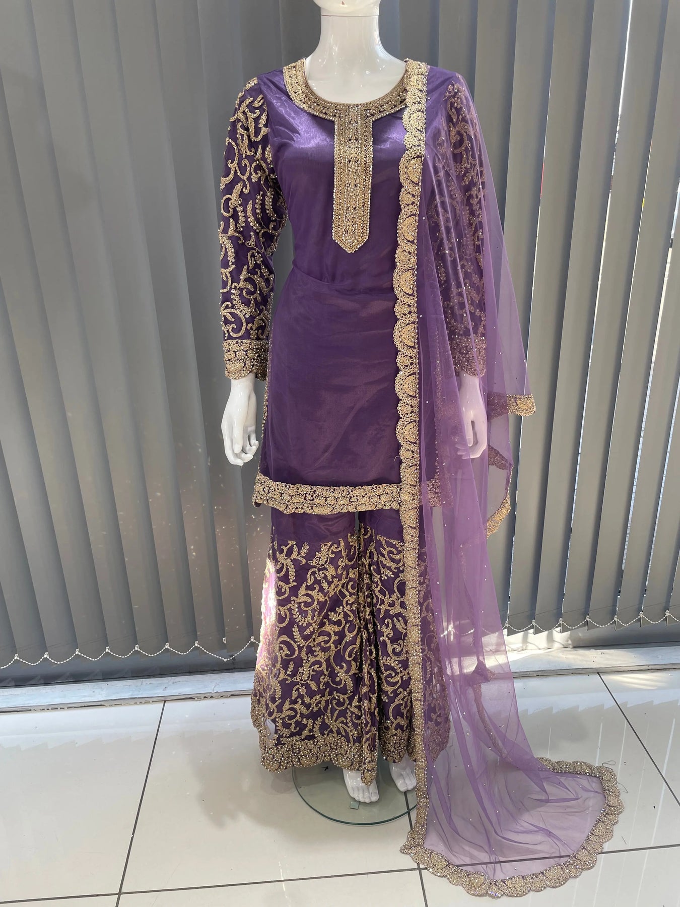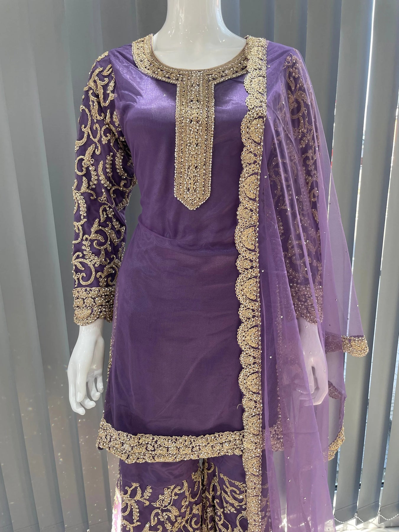 Hand Embroidered Chiffon Kameez with an embroidered Chiffon Dupatta.