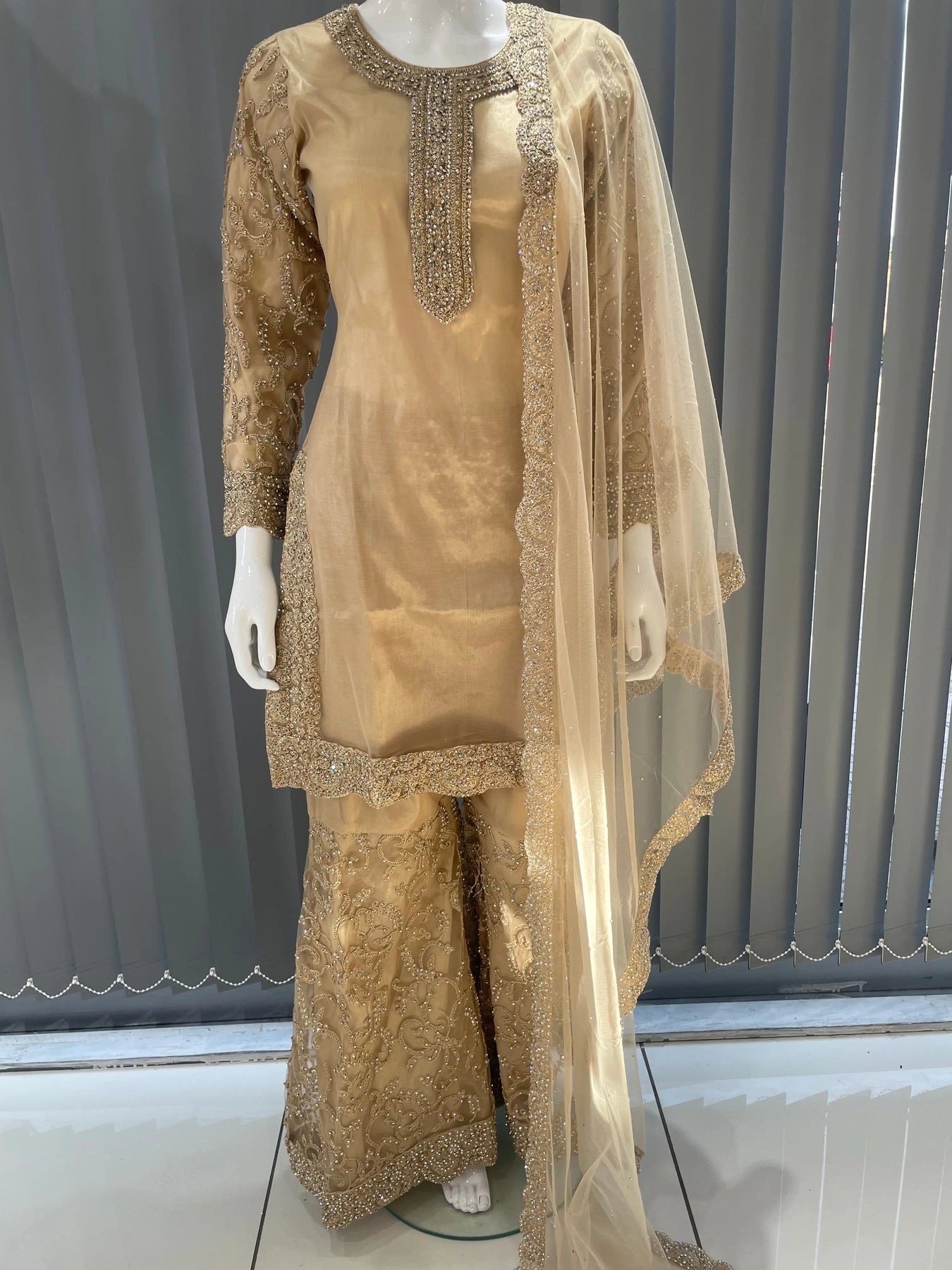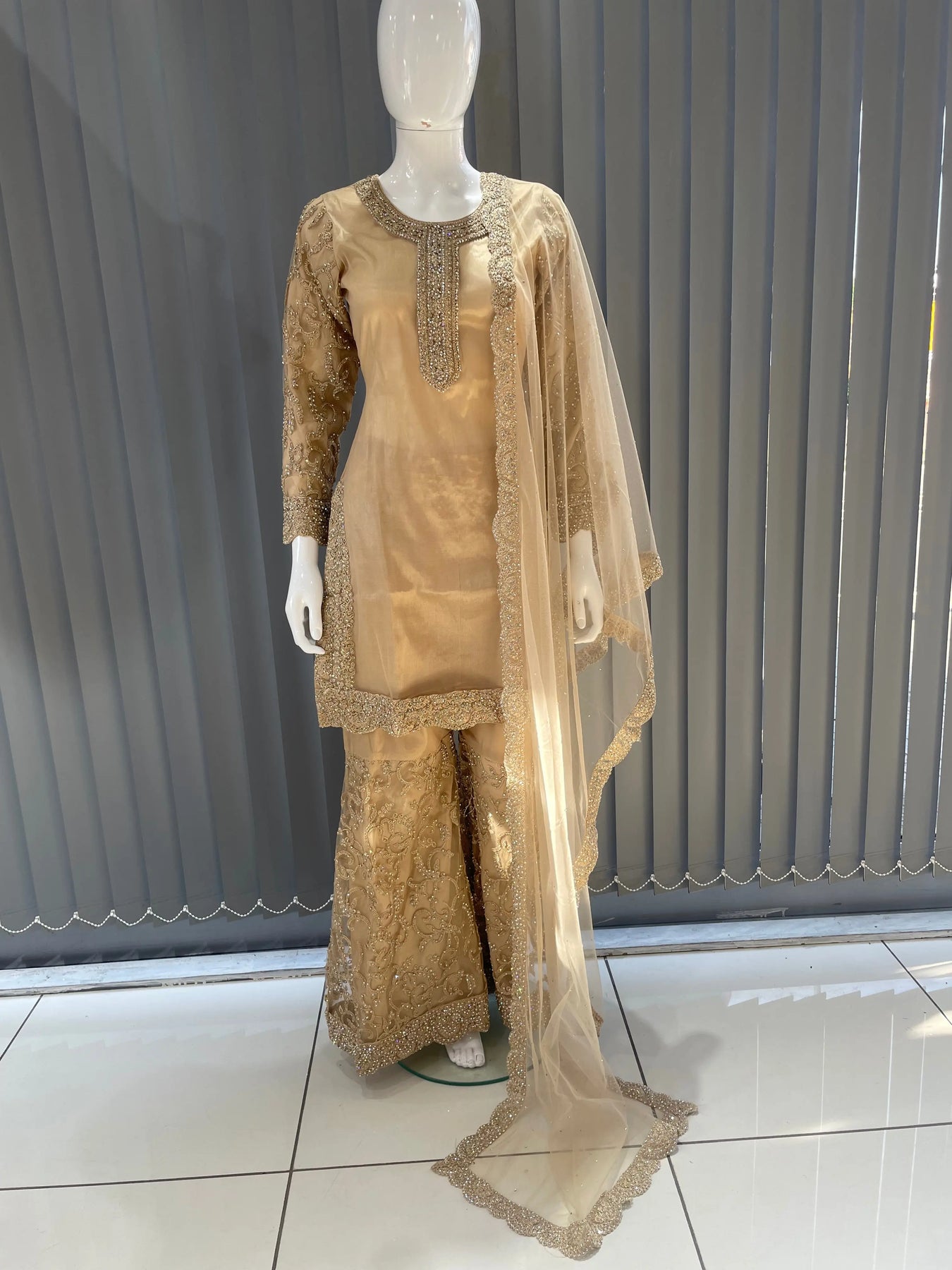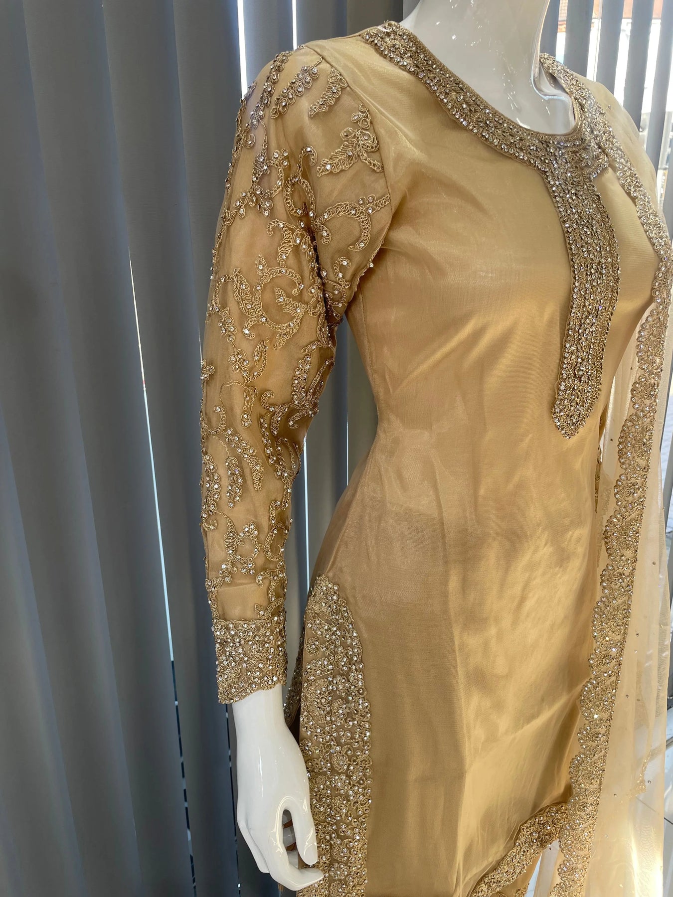 ASHA | Embroidered Dori Work Ready To Wear Gold | AS71