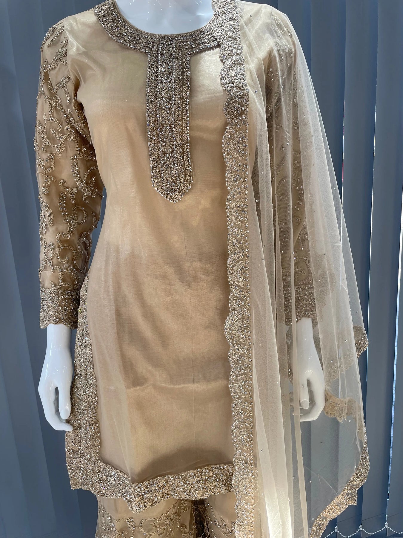 Hand Embroidered Chiffon Kameez with an embroidered Chiffon Dupatta.