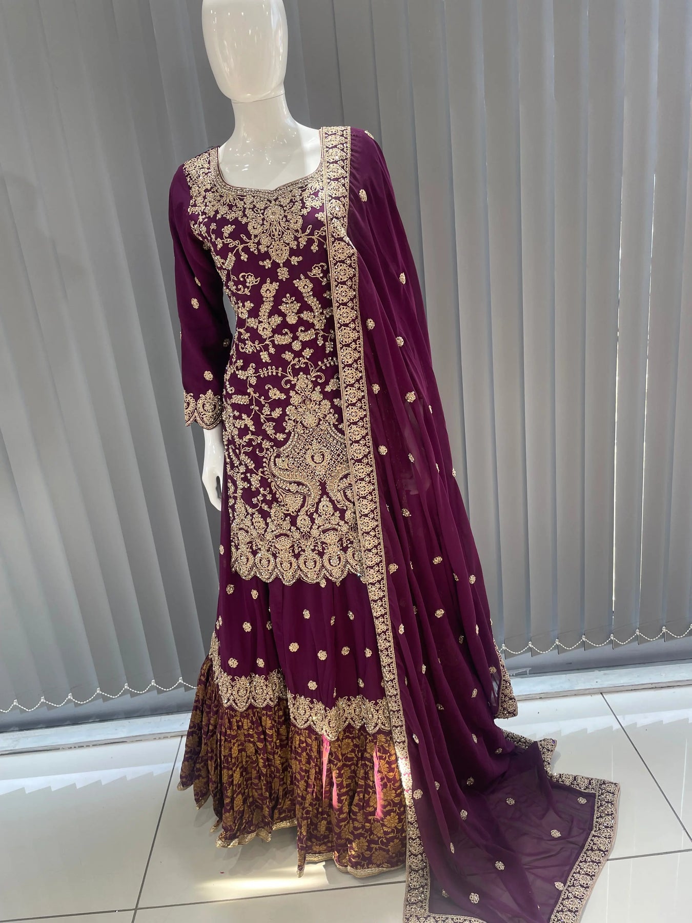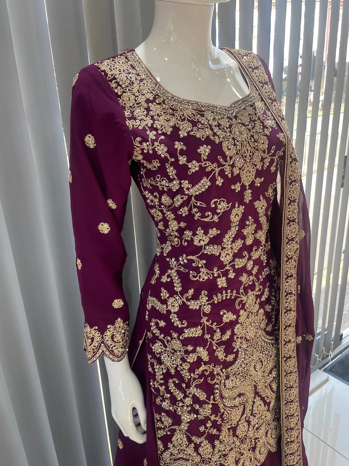 From time to time beading/ sequences may get displaced and this is not thought of as a fault but is due to the nature of the work. These articles of clothing should be worn with care.