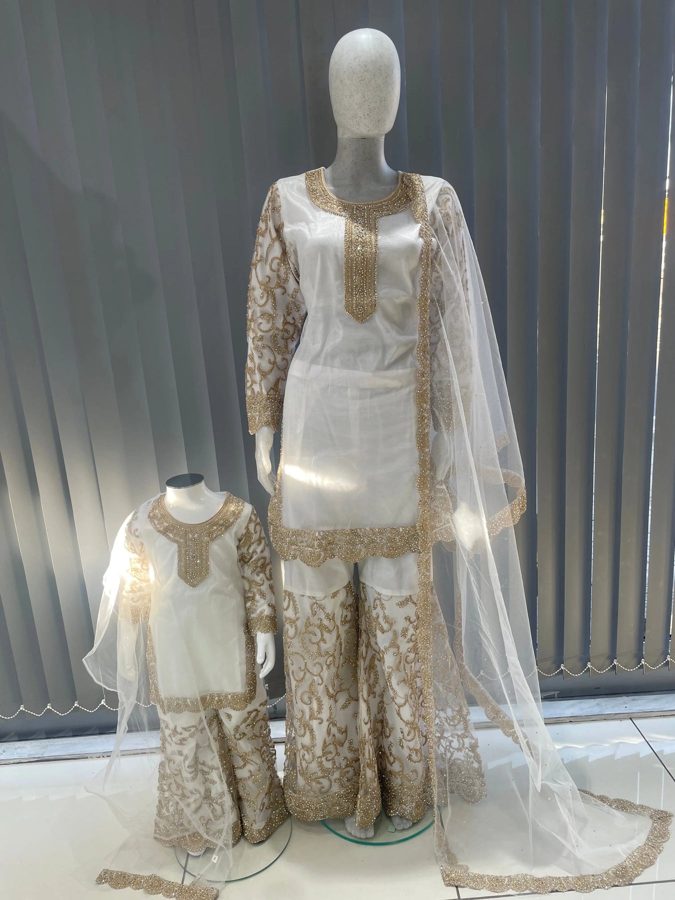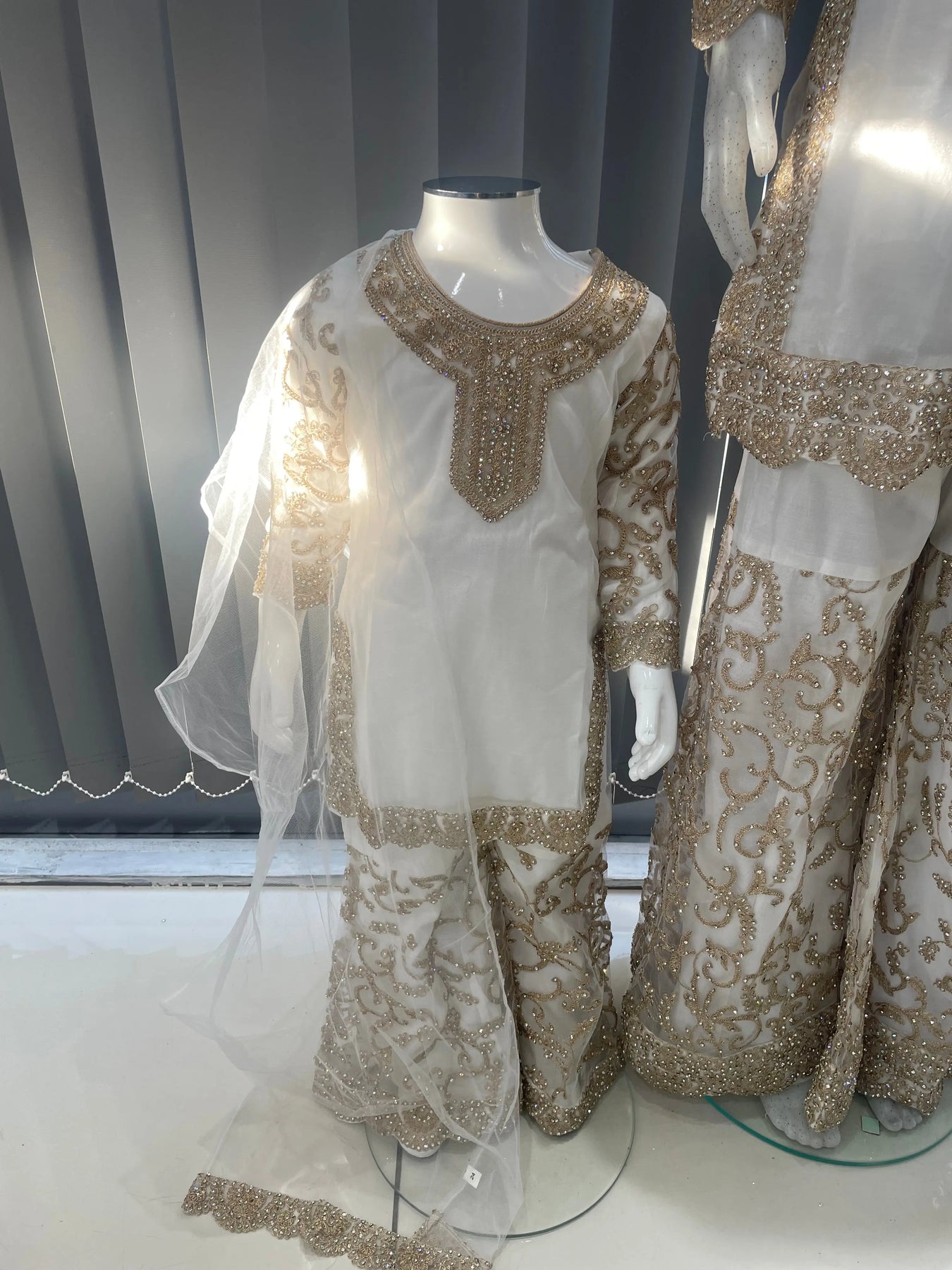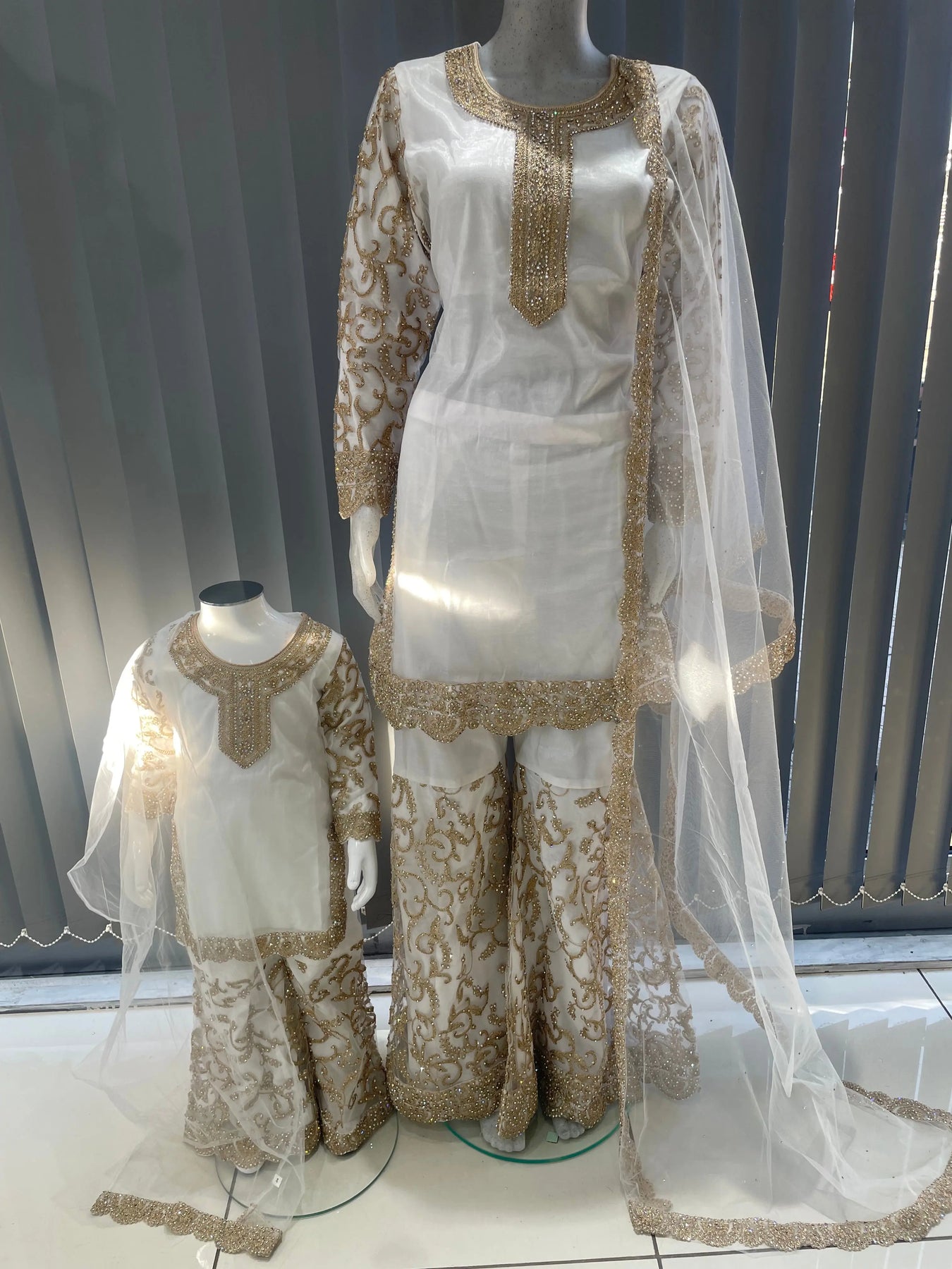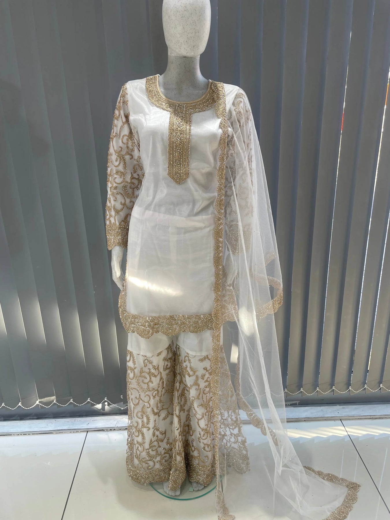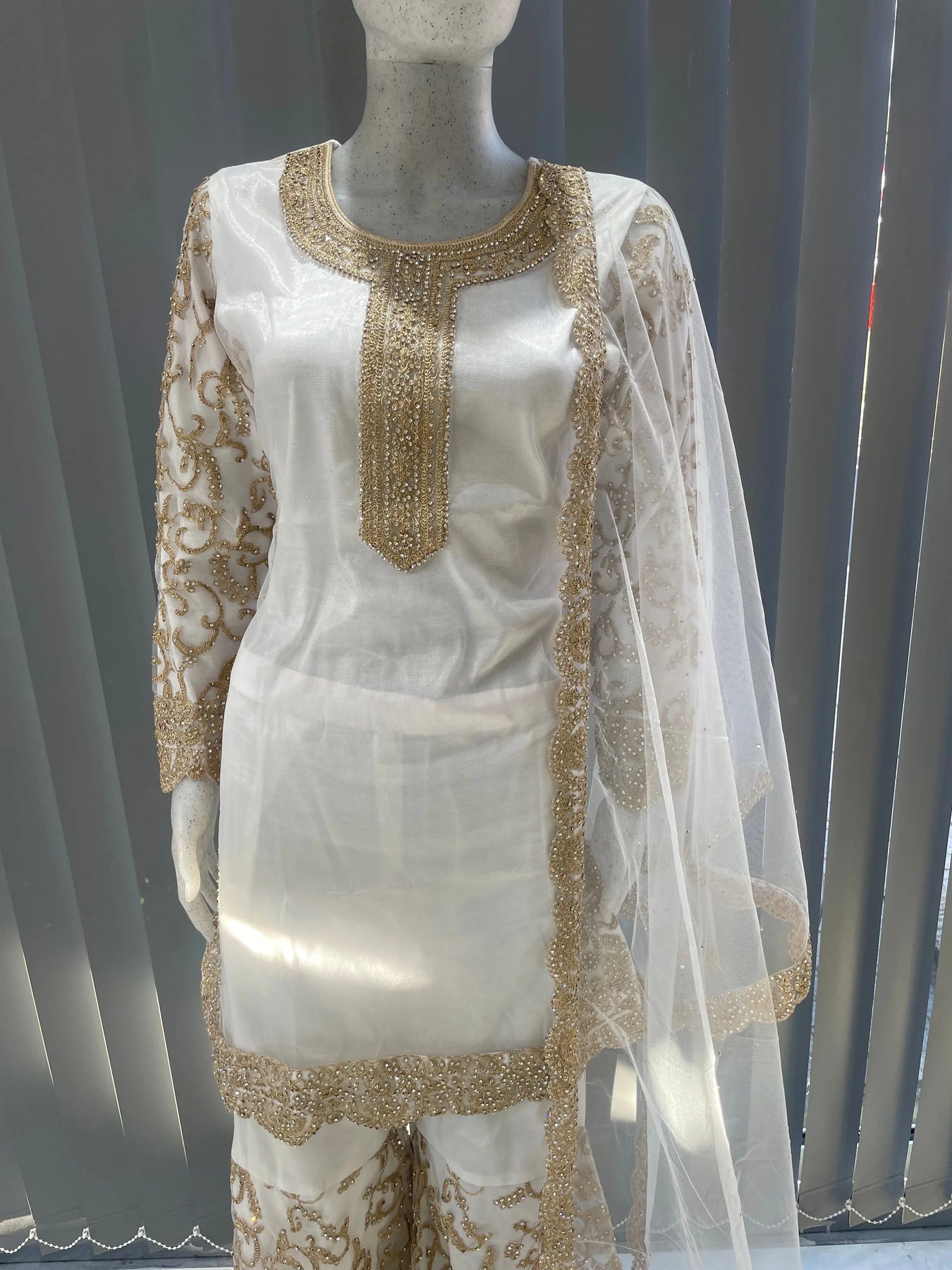 Hand Embroidered Chiffon Kameez with an embroidered Chiffon Dupatta.