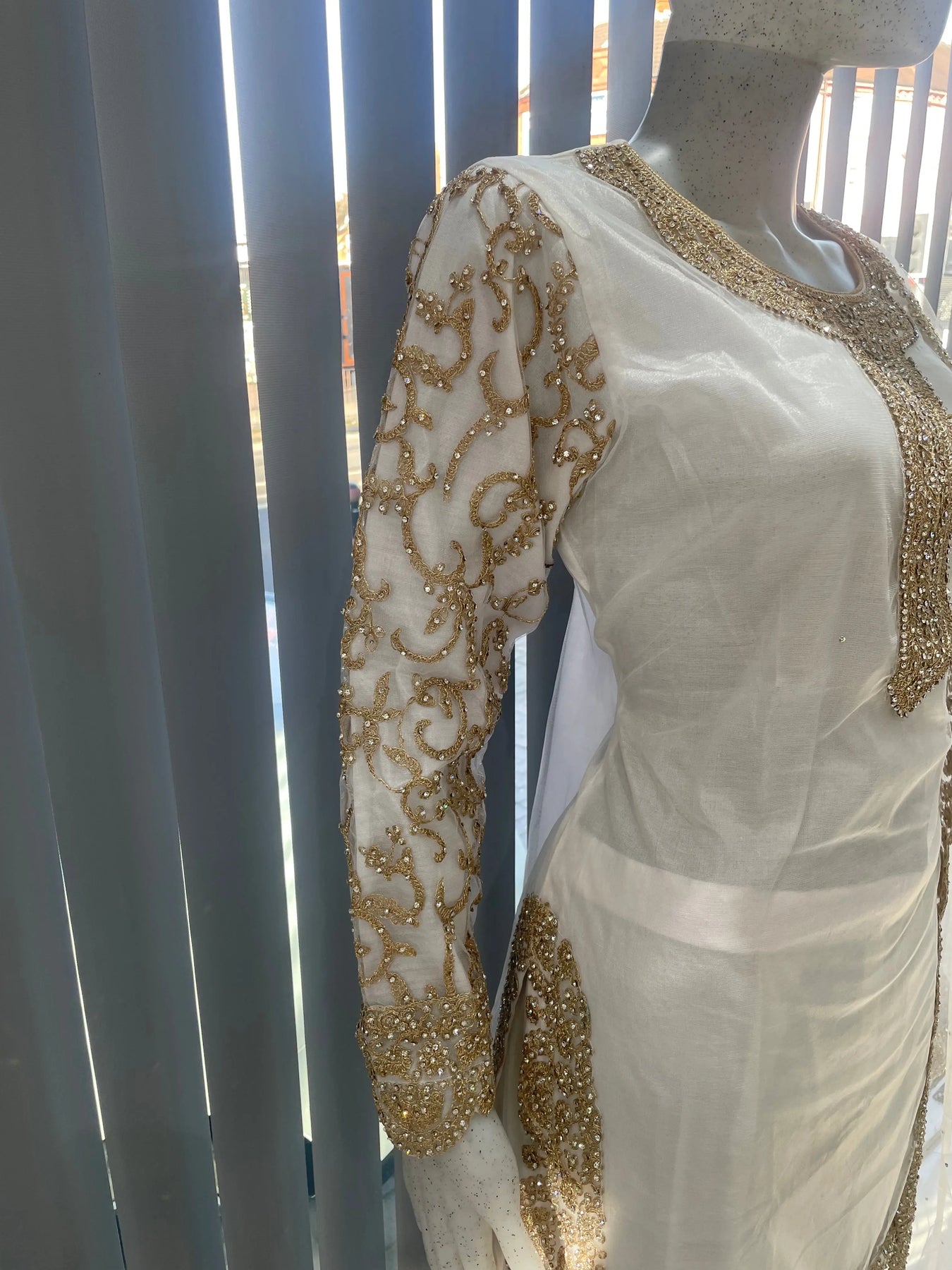From time to time beading/ sequences may get displaced and this is not thought of as a fault but is due to the nature of the work. These articles of clothing should be worn with care.