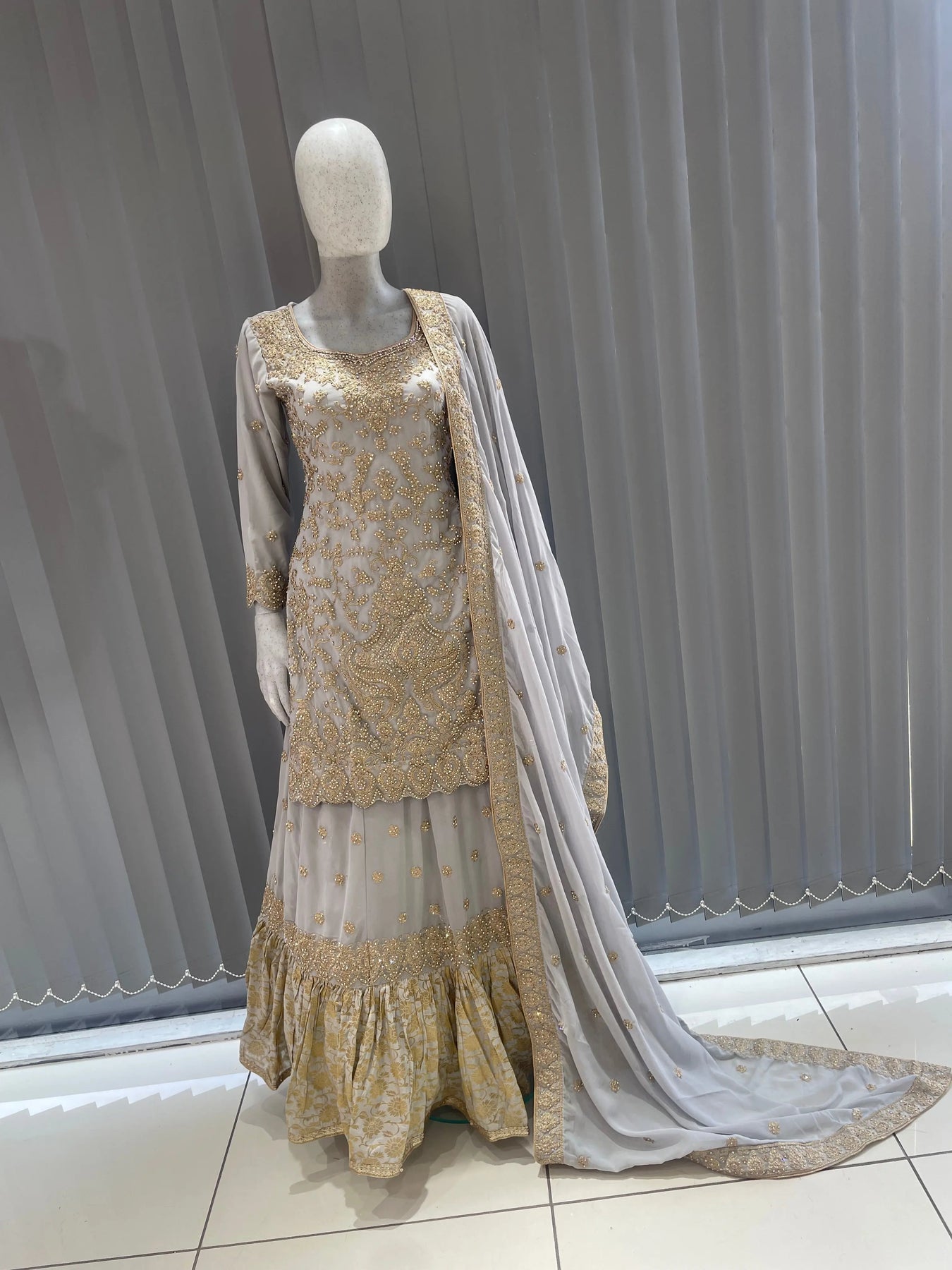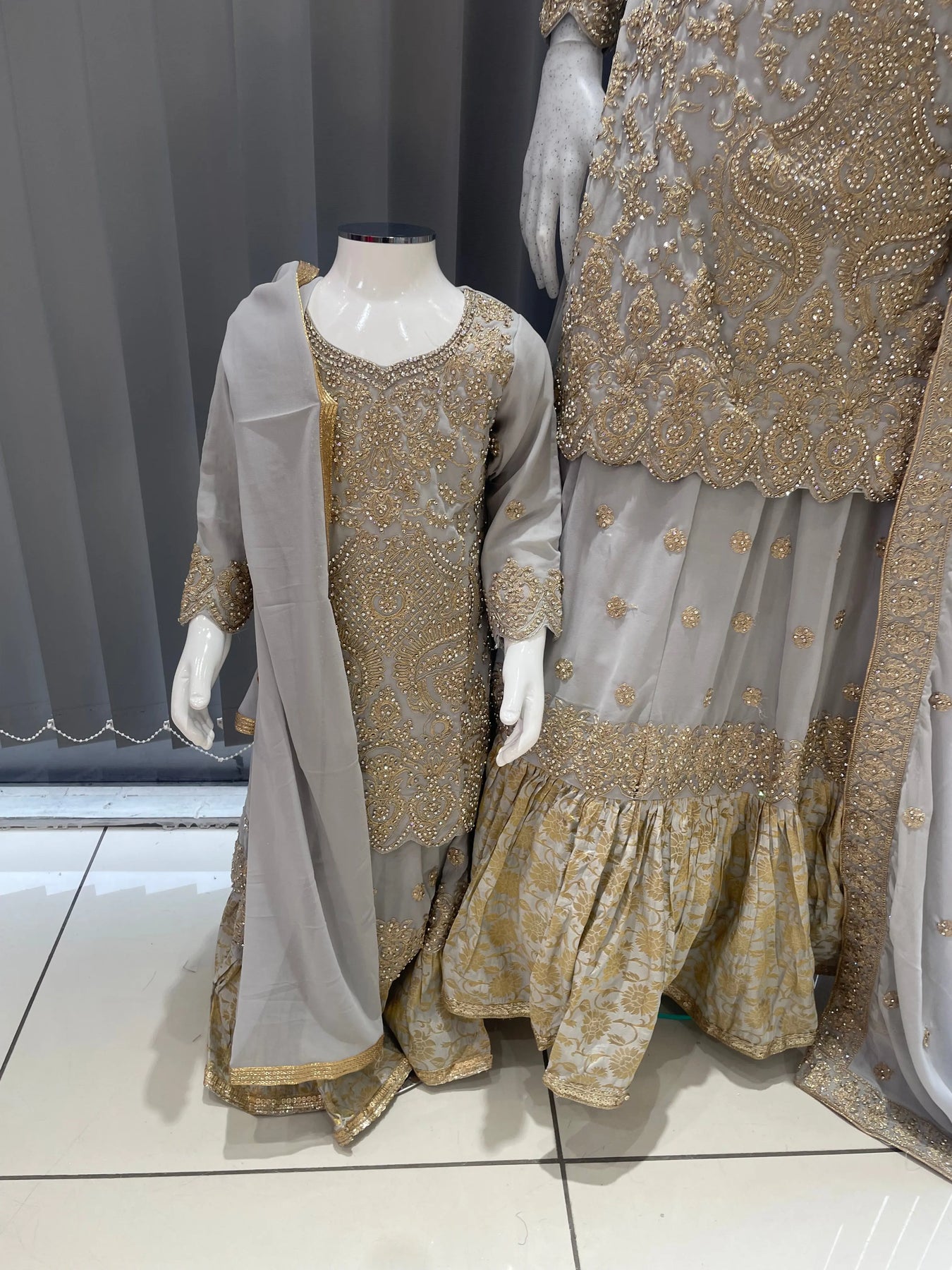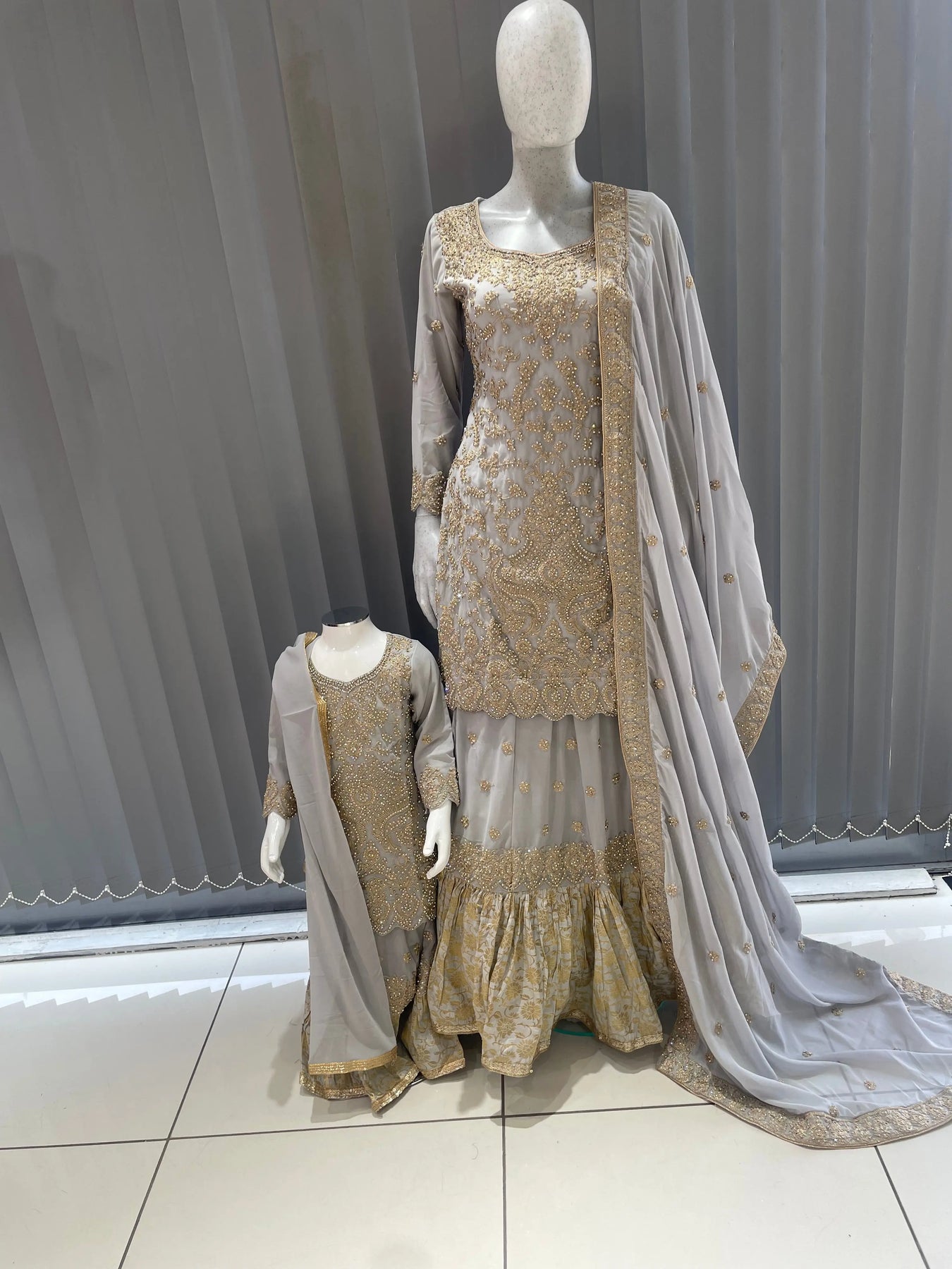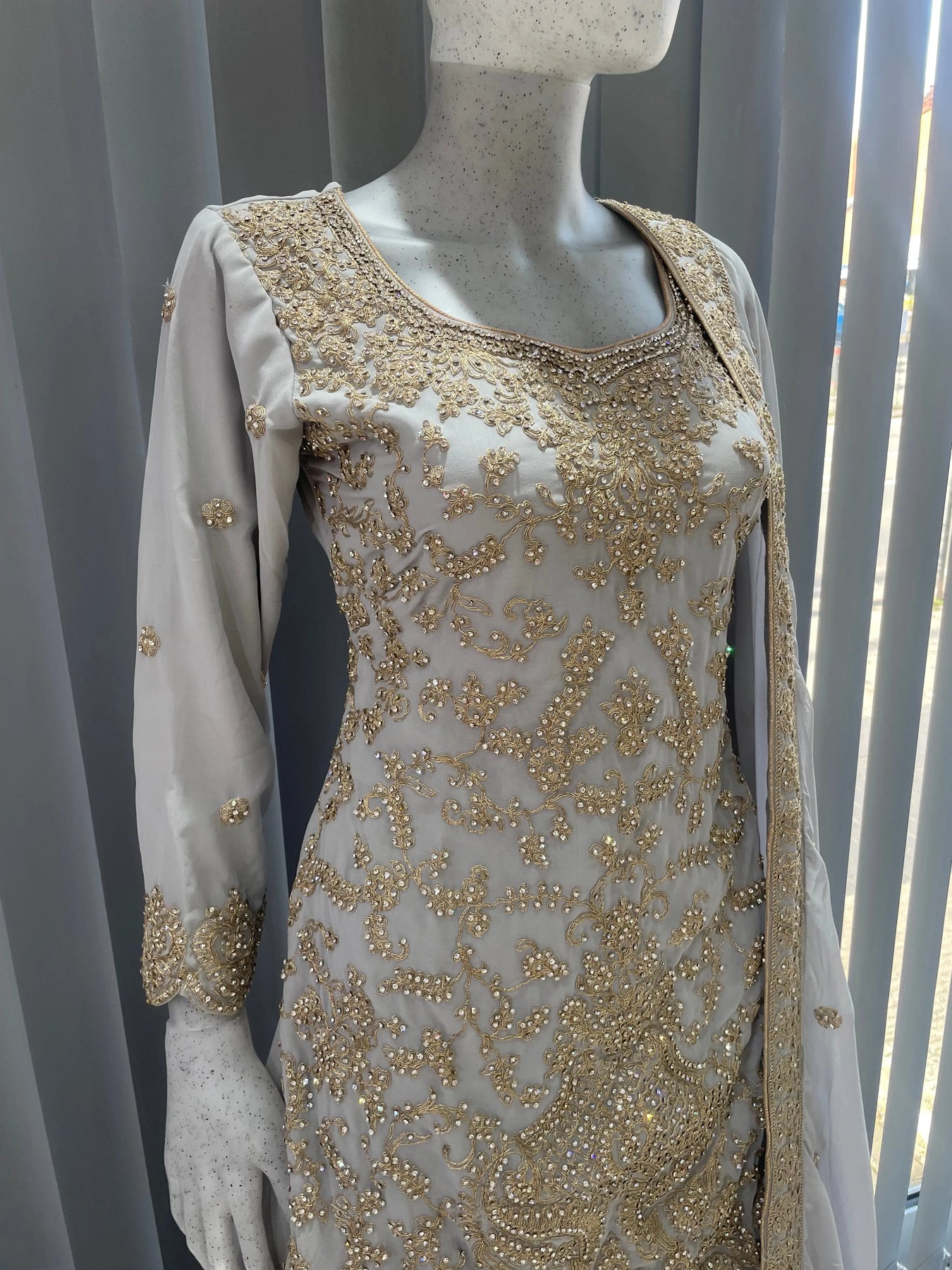 From time to time beading/ sequences may get displaced and this is not thought of as a fault but is due to the nature of the work. These articles of clothing should be worn with care.
