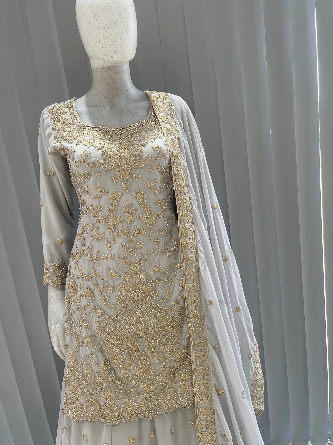 ASHA | Embroidered Dori Work Ready To Wear light Grey | AS76