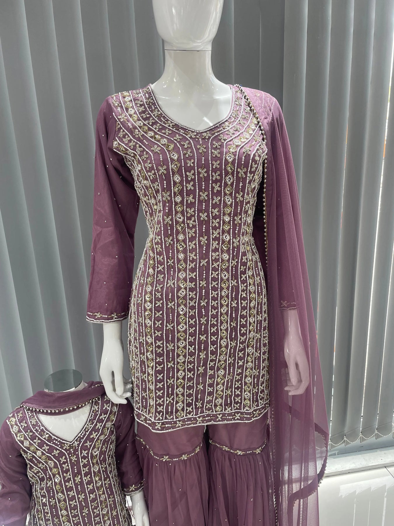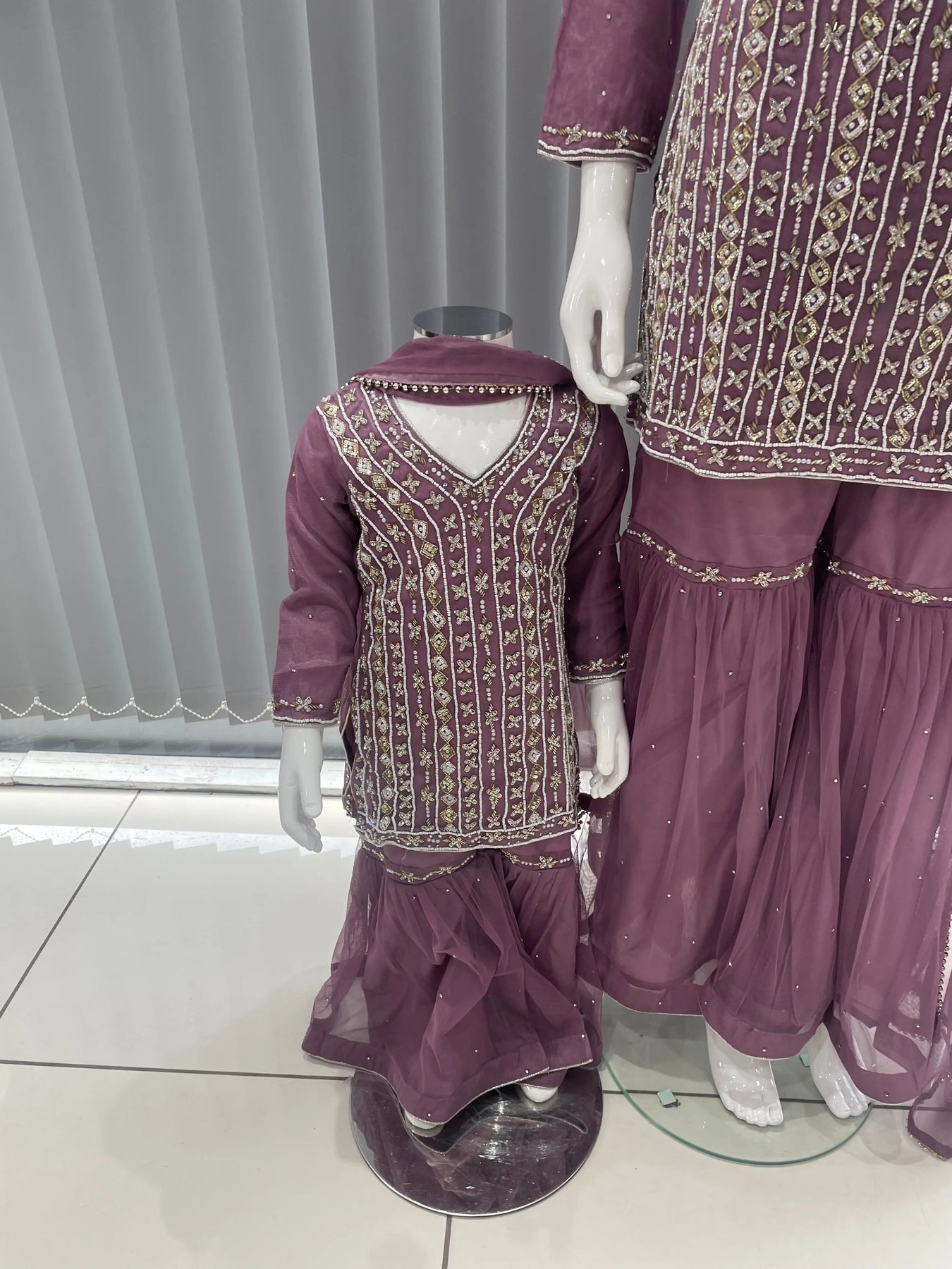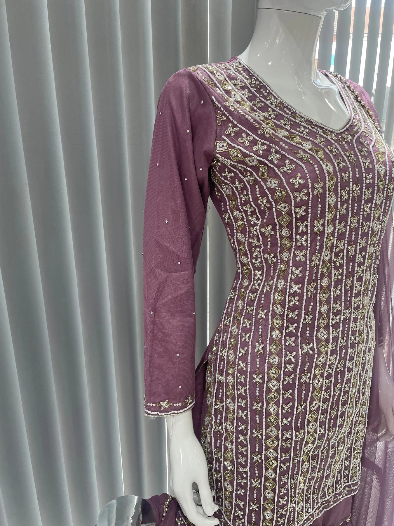 From time to time beading/ sequences may get displaced and this is not thought of as a fault but is due to the nature of the work. These articles of clothing should be worn with care.