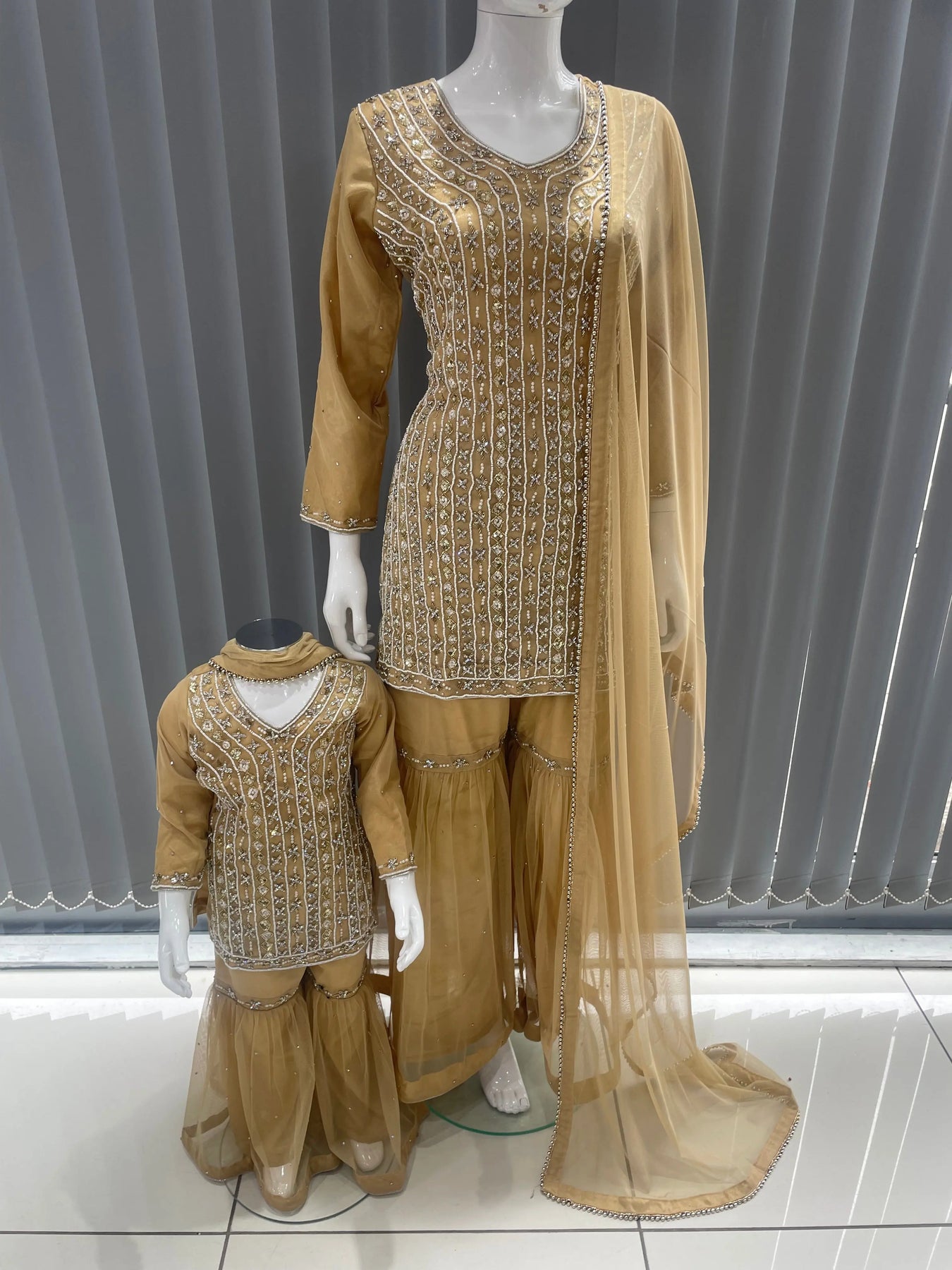From time to time beading/ sequences may get displaced and this is not thought of as a fault but is due to the nature of the work. These articles of clothing should be worn with care.